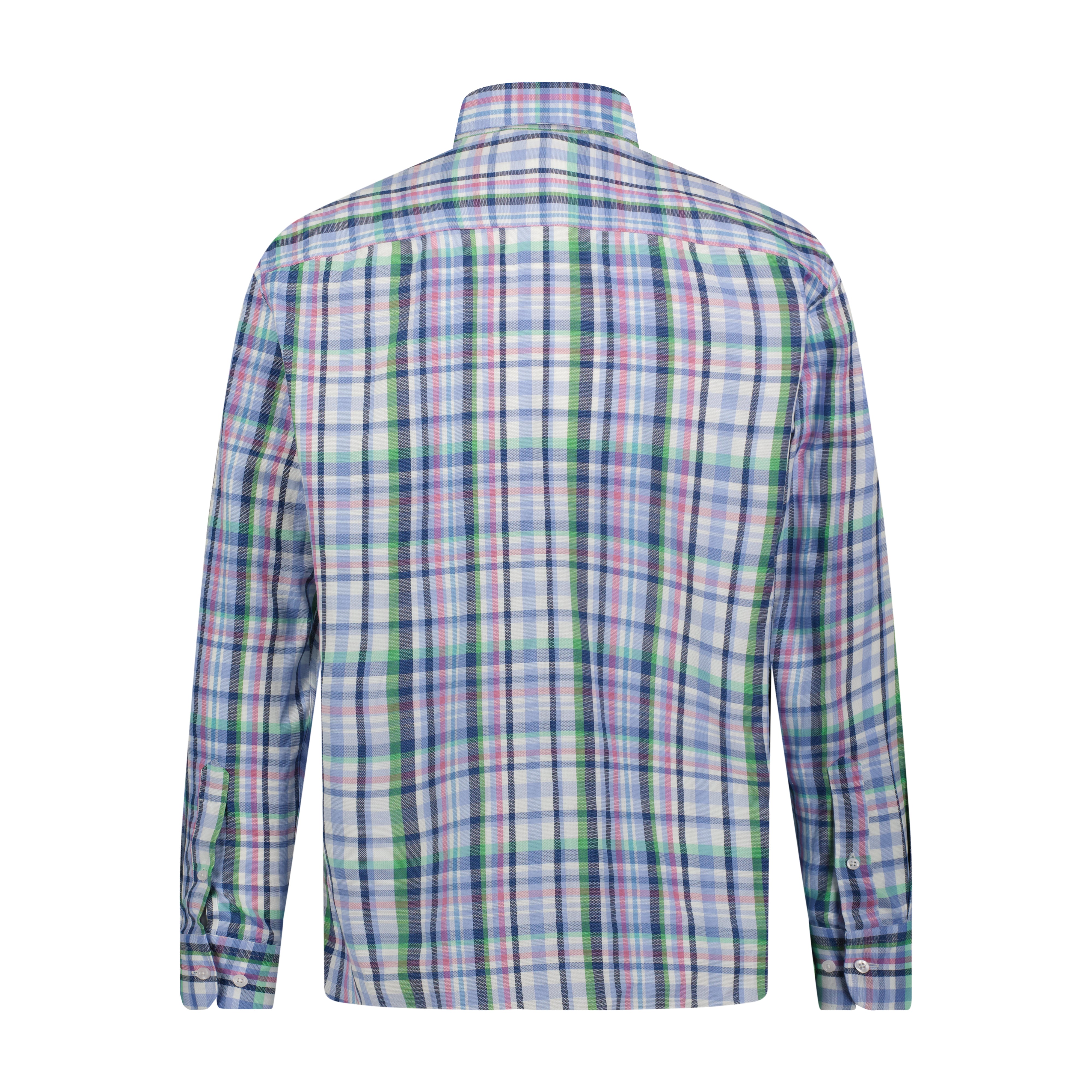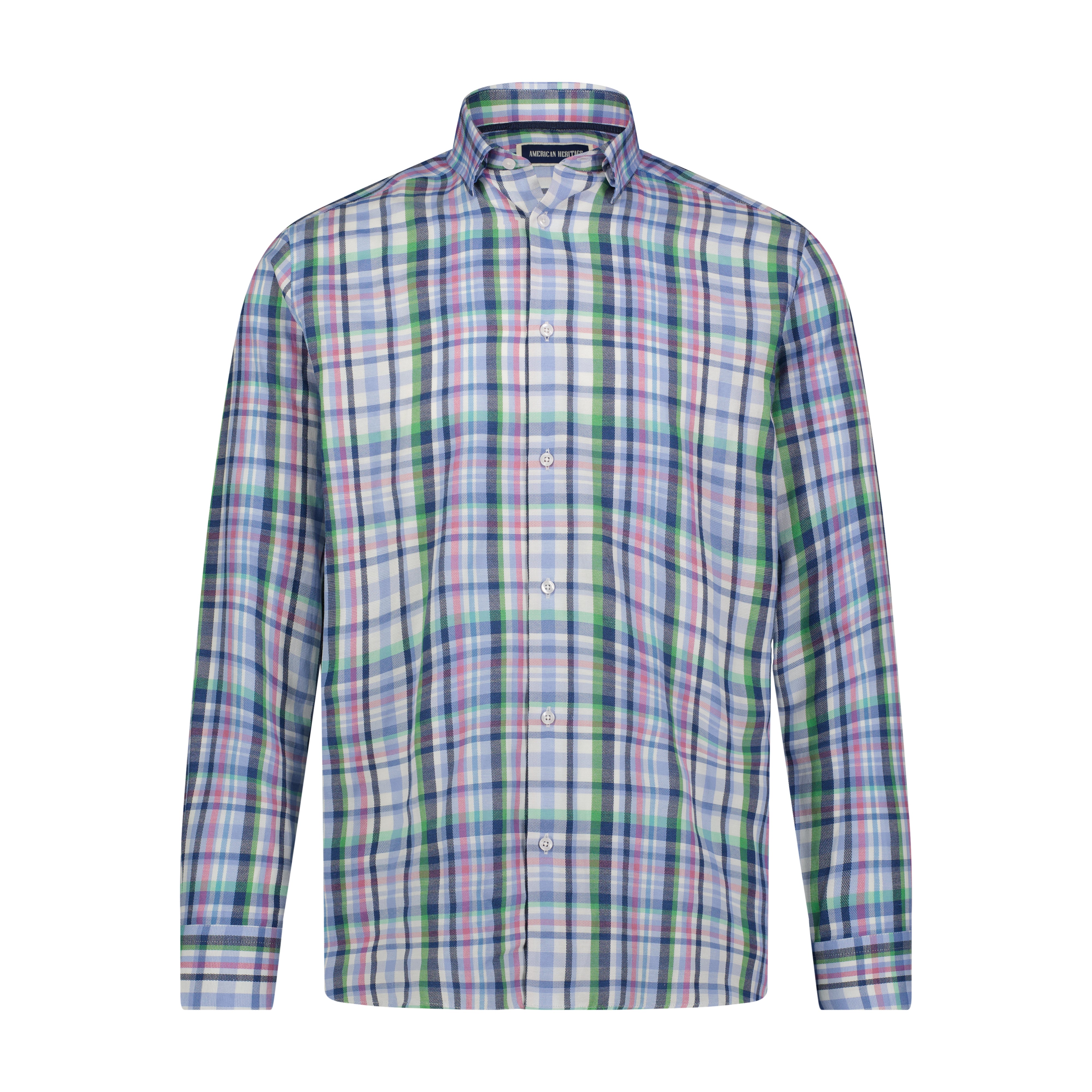 Purple Navy White and Green Plaid Oxford Long Sleeve Shirt