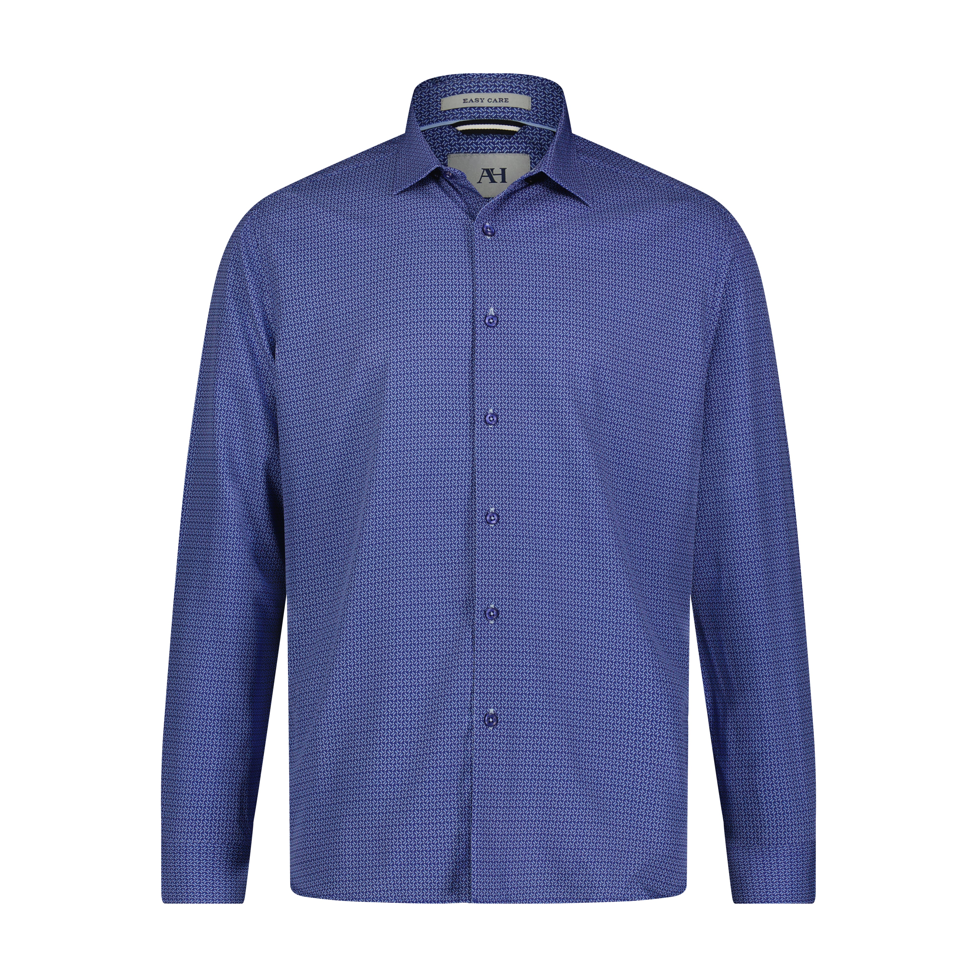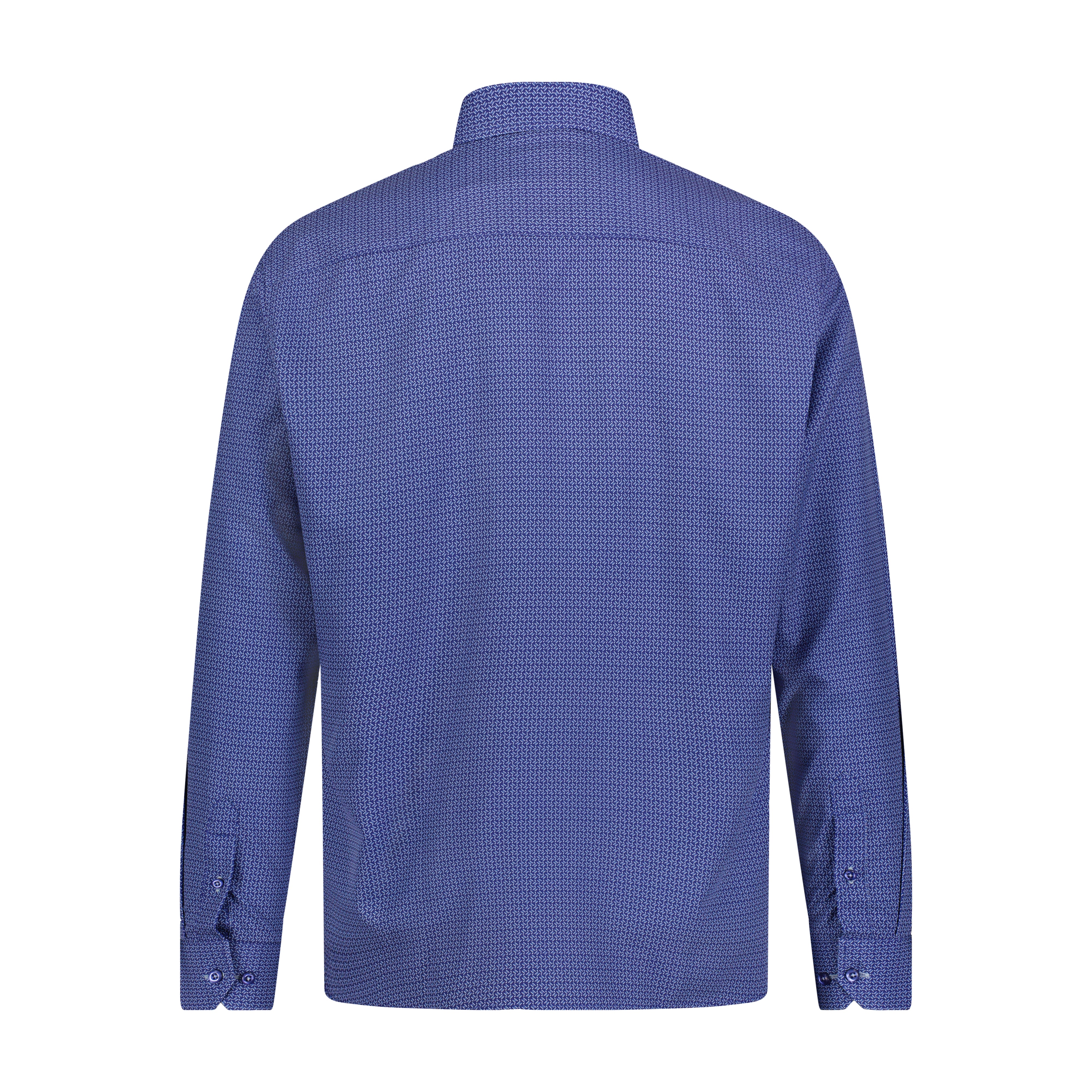 White Navy Blue Geo Print Hidden Button Down Long Sleeve Shirt