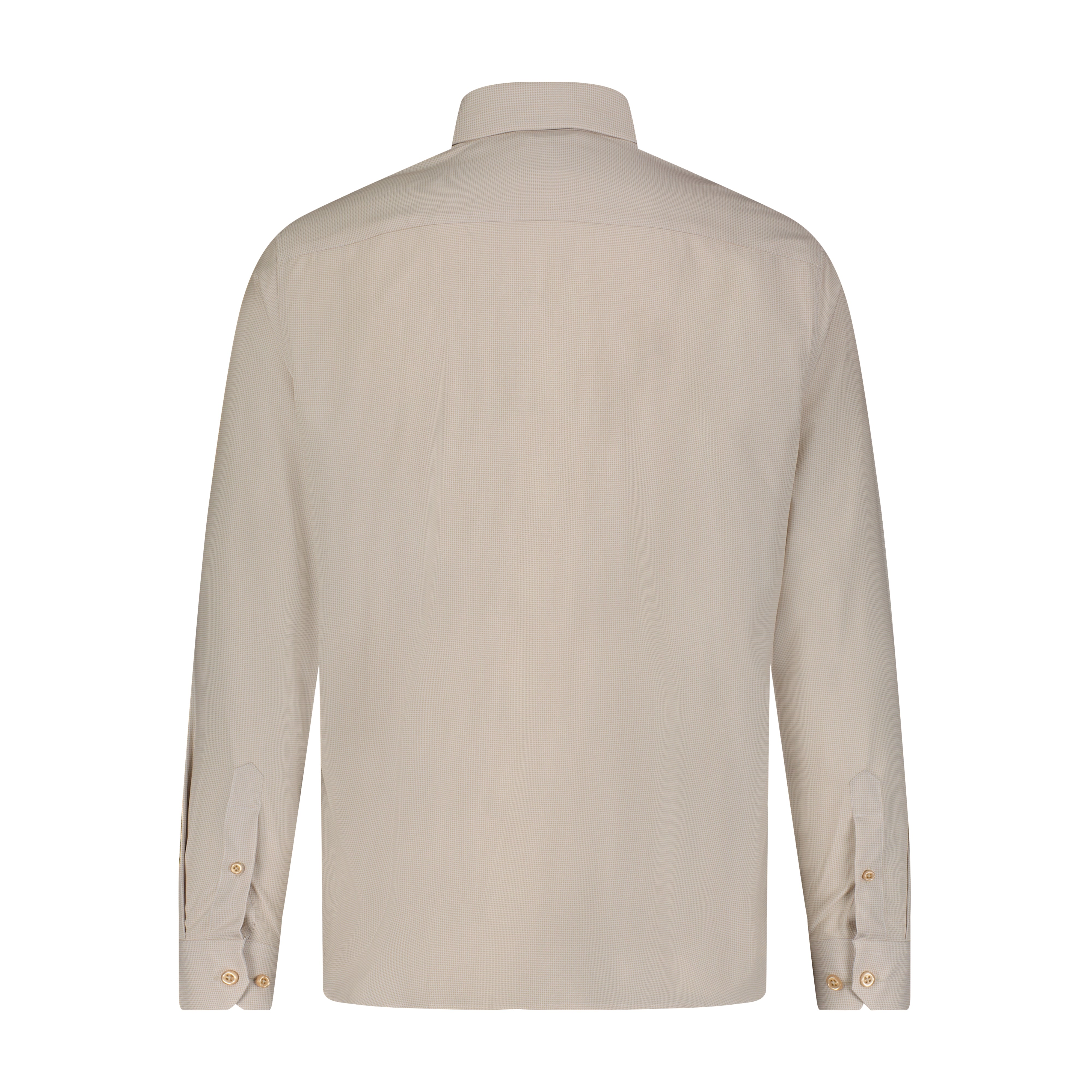 Beige Khaki Check Hidden Button Down Long Sleeve Shirt