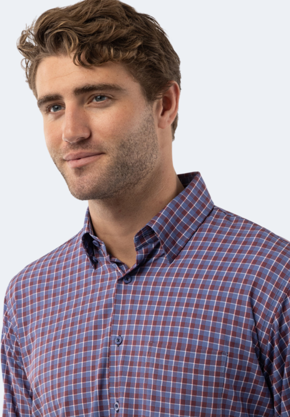 This Blue Mini Check and Plaid Shirt by American Heritage is designed for ultimate comfort and performance. Featuring chest pocket, performance stretch, and anti-odor, antimicrobial technology, this shirt helps keep you fresh and dry while you explore the great outdoors. Moisture-wicking capabilities keep you cool and comfortable.