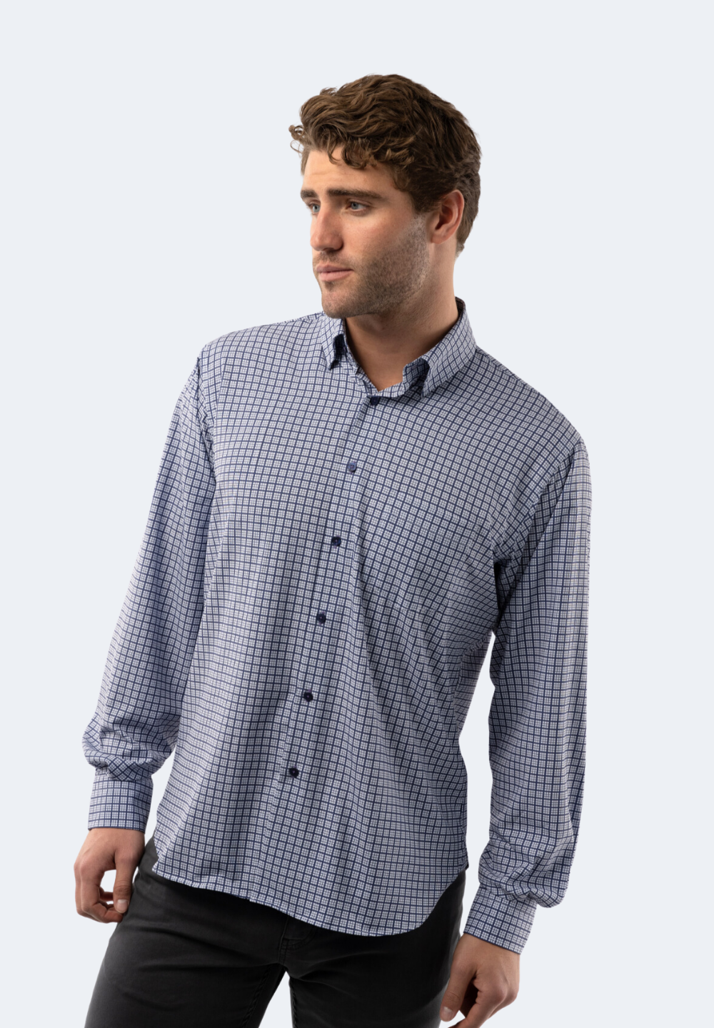 Look sharp in the White and Navy Plaid Check Shirt. Combining American Heritage style with modern performance features like chest pocket, stretch-fit fabric, and anti-odor and antimicrobial technology, this shirt is perfect for both work and occasions. The moisture-wicking fabric ensures you stay comfortable all day.