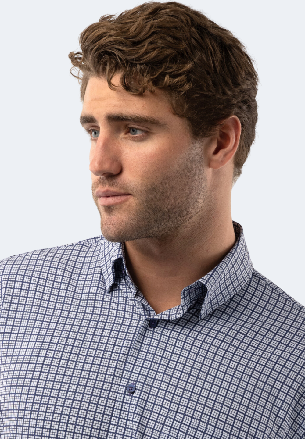 White and Navy Plaid Check Shirt