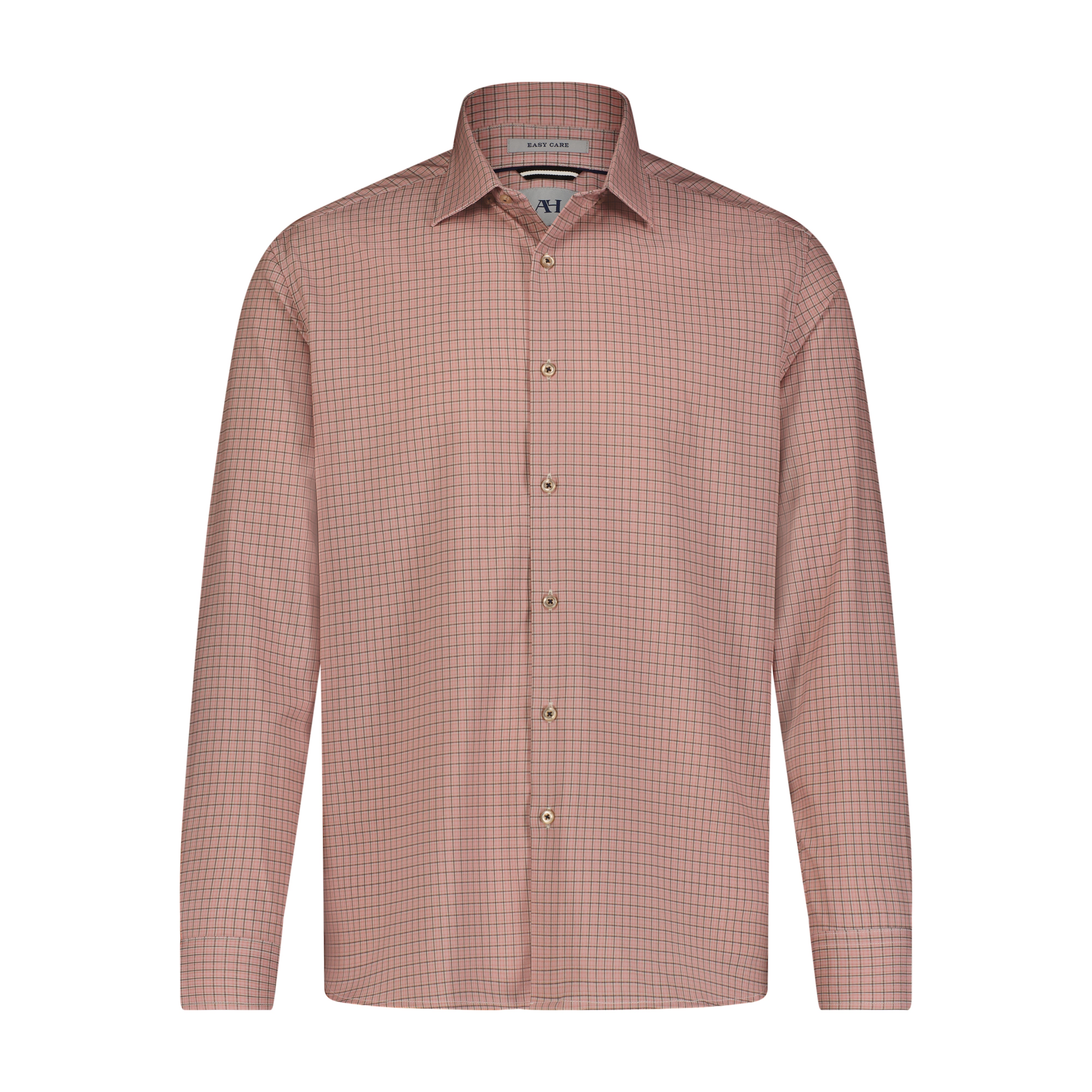 Beige Khaki Check Hidden Button Down Long Sleeve Shirt