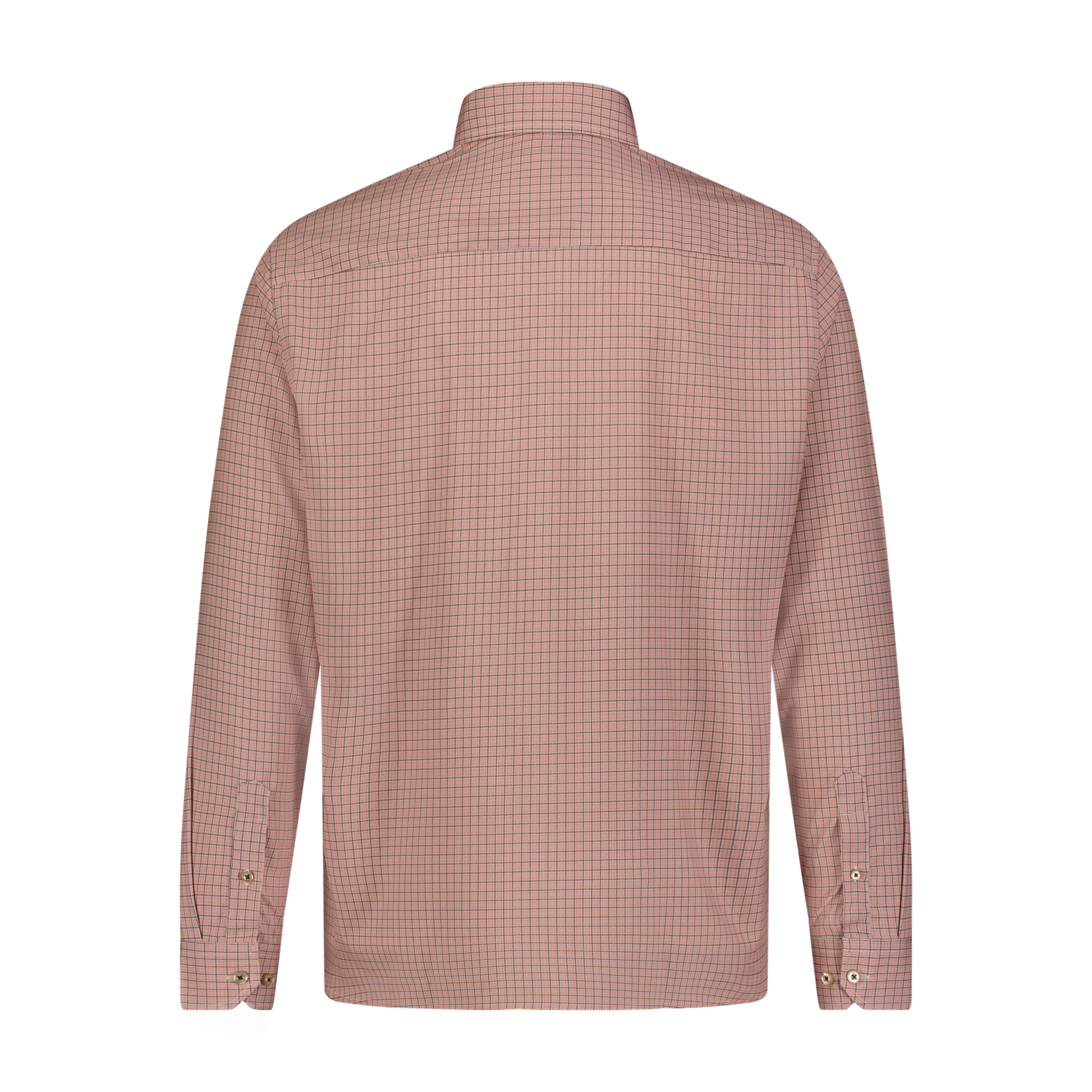 Introducing Beige Khaki Check Hidden Button Down Long Sleeve Shirt, made with American Heritage fabric for a comfortable fit. With moisture-wicking, anti-microbial, and 4-way stretch properties, as well as an SPF 50 sun protection rating, this shirt is easy to care for and perfect for any outdoor activities.