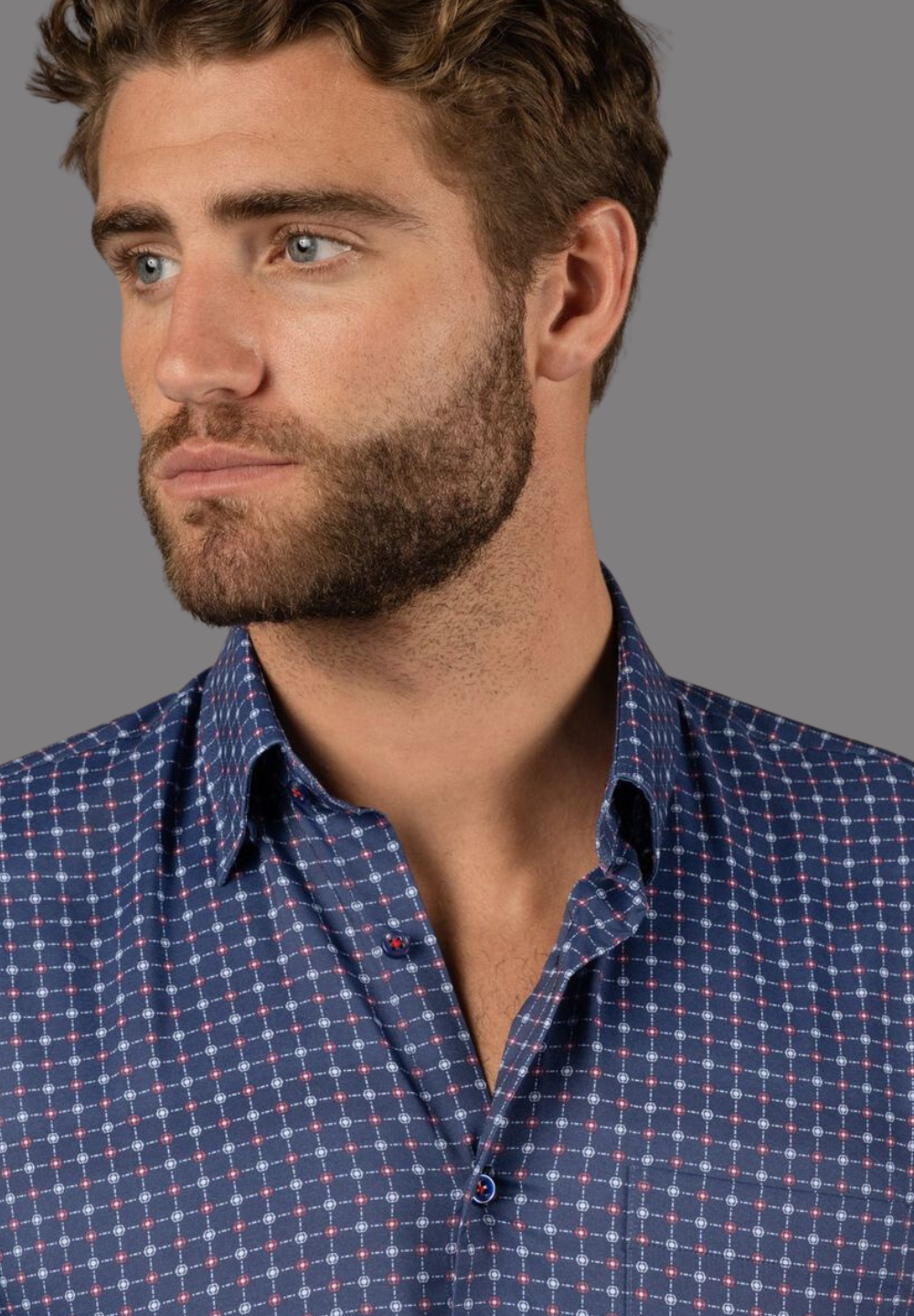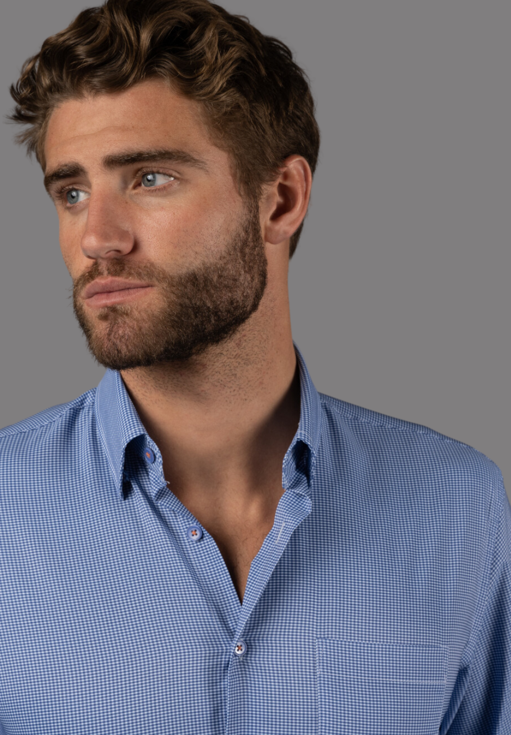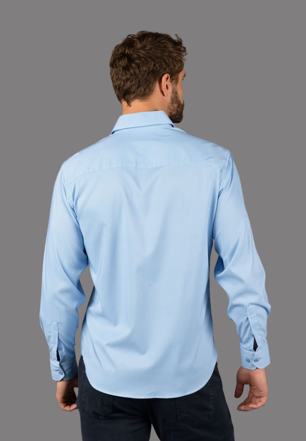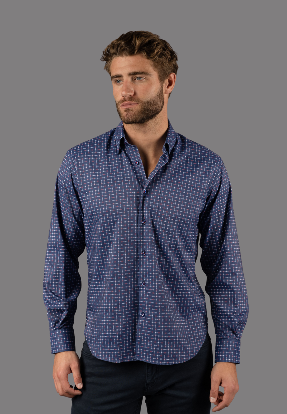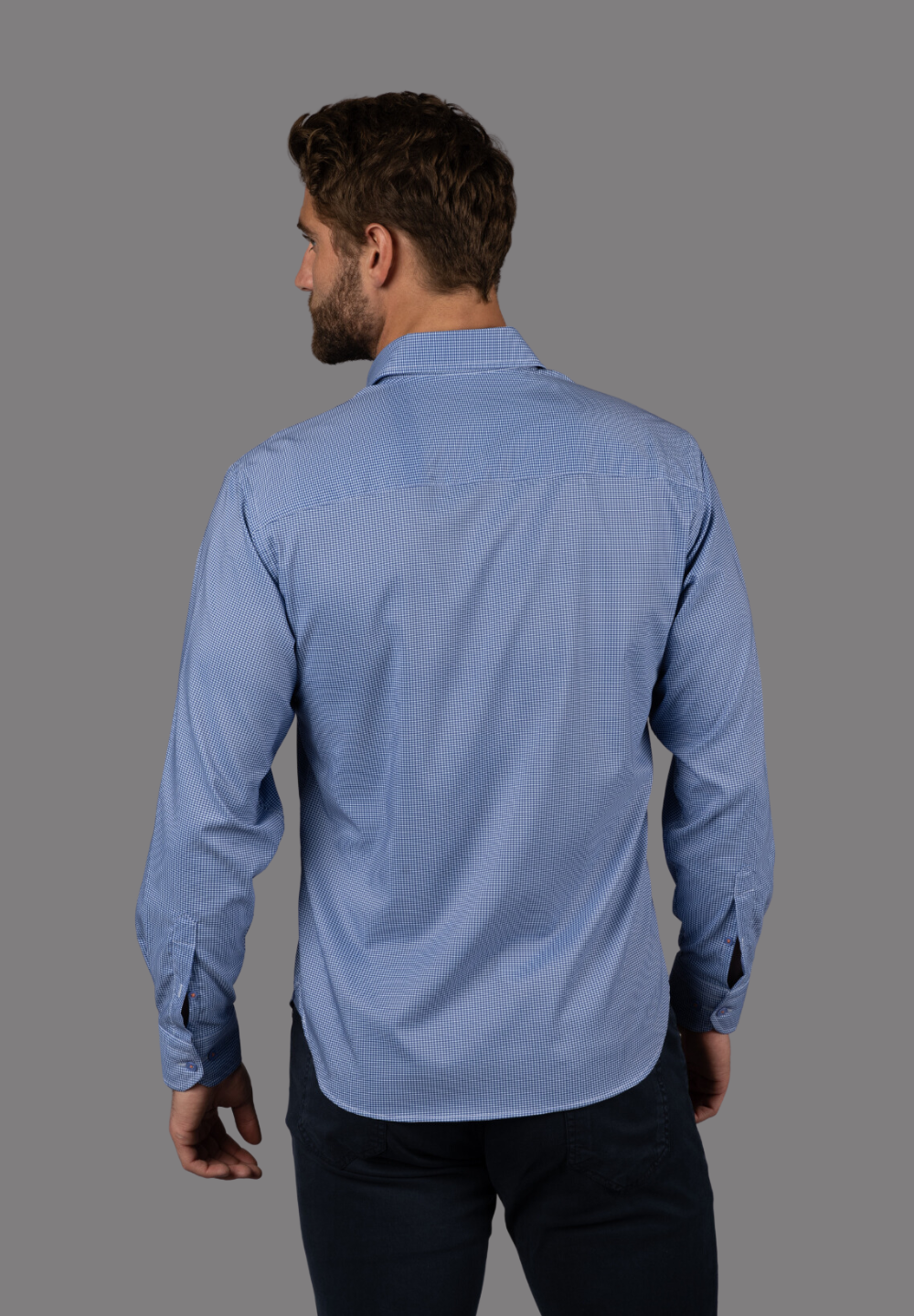 Steel Blue with Purple Check Shirt