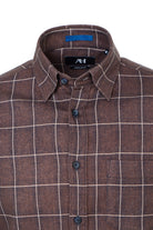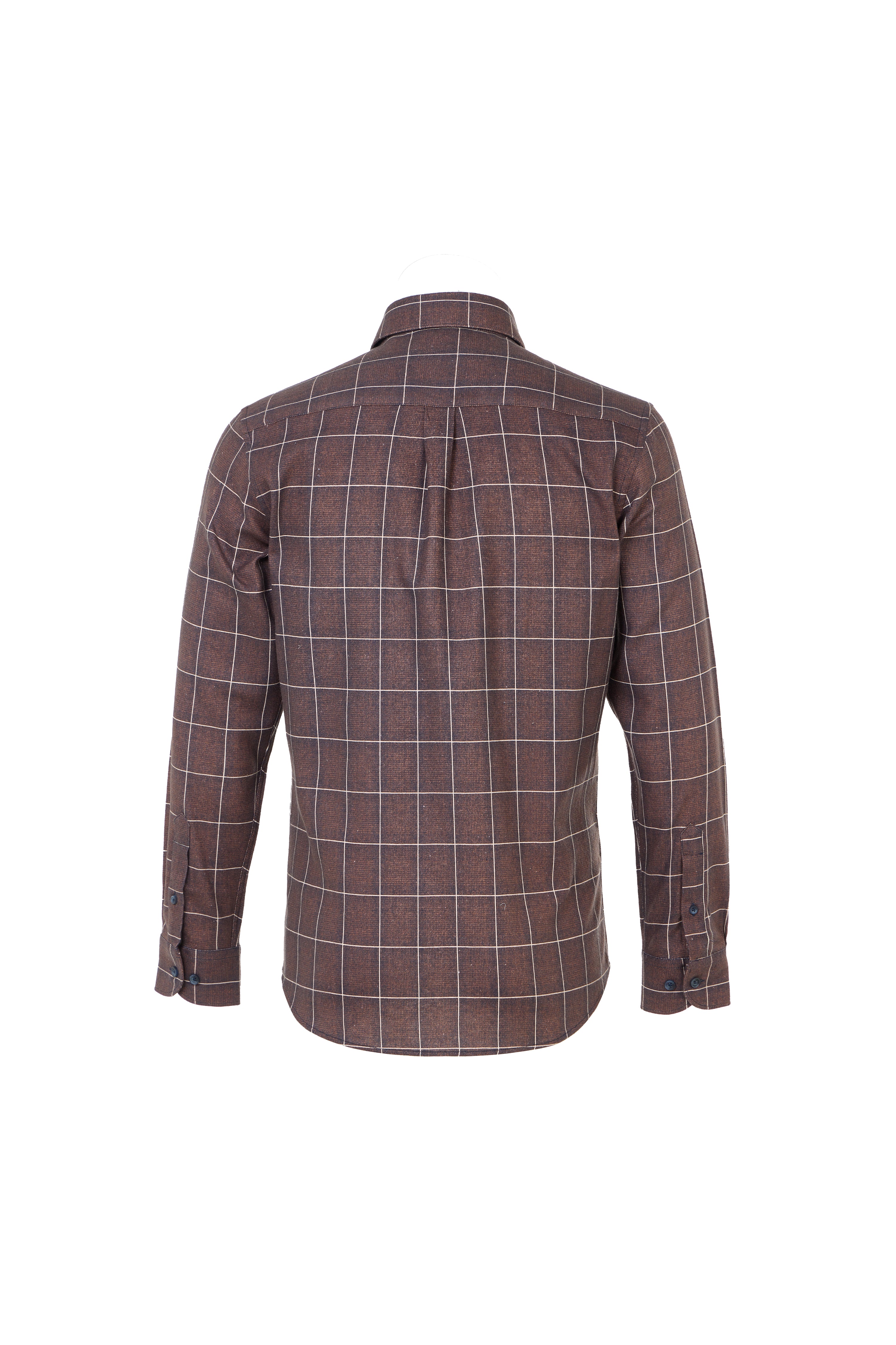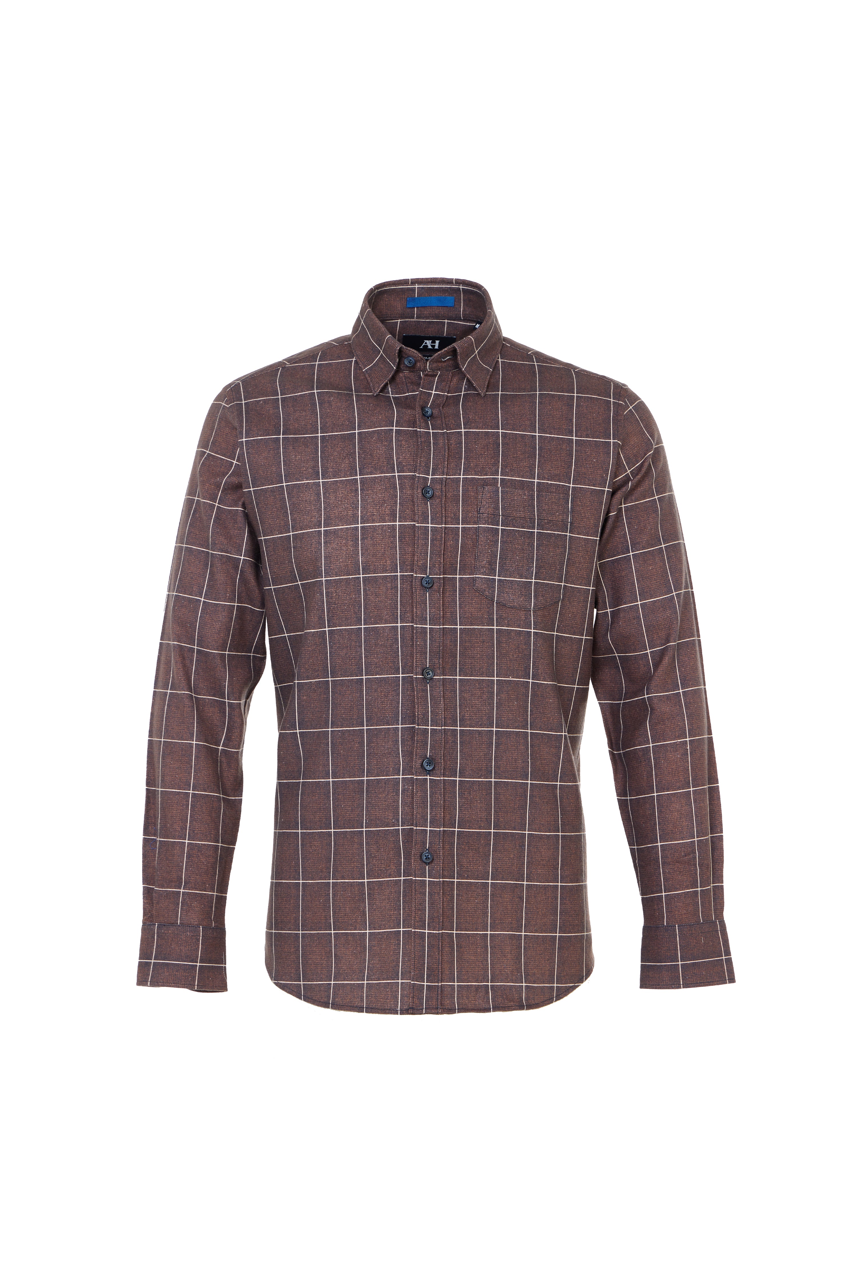 Bring warmth and rugged character to your wardrobe with this Coffee Plaid Brushed Flannel Shirt. Woven from a sustainable blend of 50% organic cotton and 50% recycled polyester, it features a mélange yarn construction with subtle overstitching for extra durability. The ceramic-inspired rust tone with a soft brushed finish delivers that perfect Americana flannel look—ideal for crisp fall mornings, layered under a jacket, or worn on its own. Comfortable, timeless, and eco-friendly, this shirt is a true fall essential.