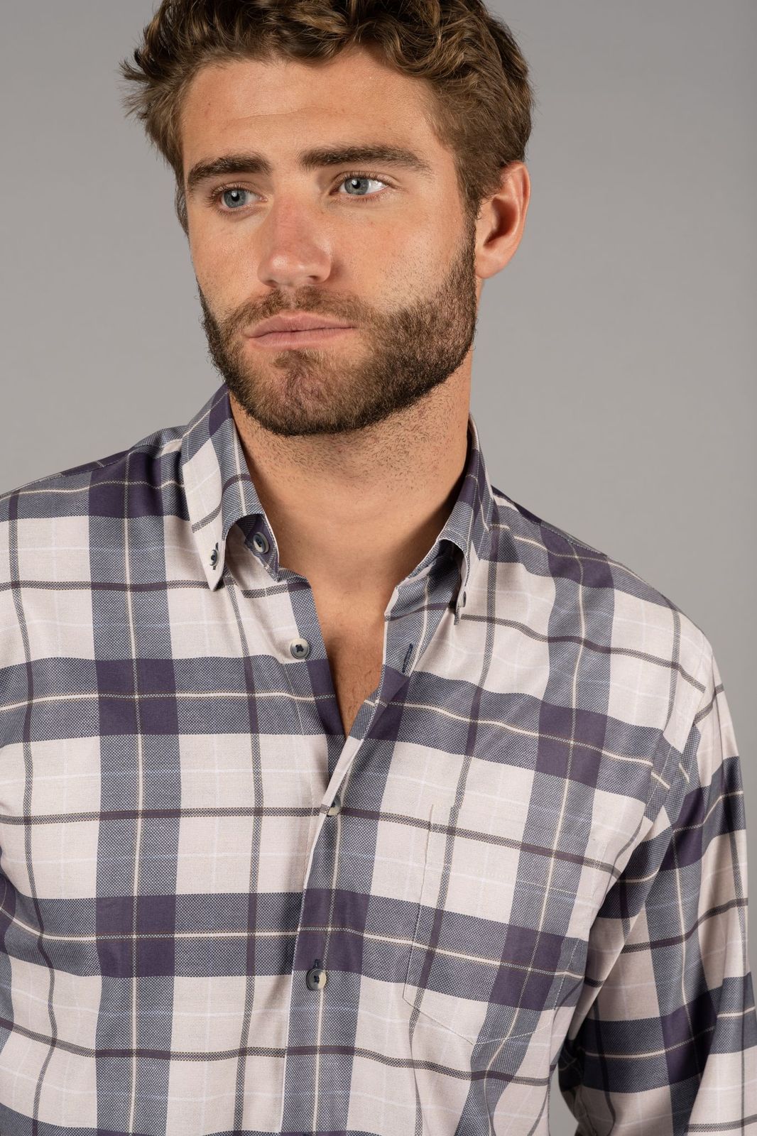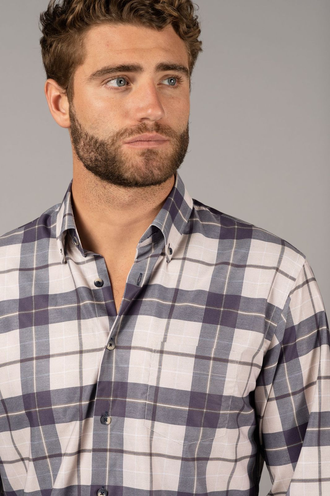 Beige and Navy Plaid Shirt