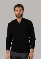 A standard wardrobe staple with a classic design, this quarter zip sweater is fashionable and perfect for layering over pieces.