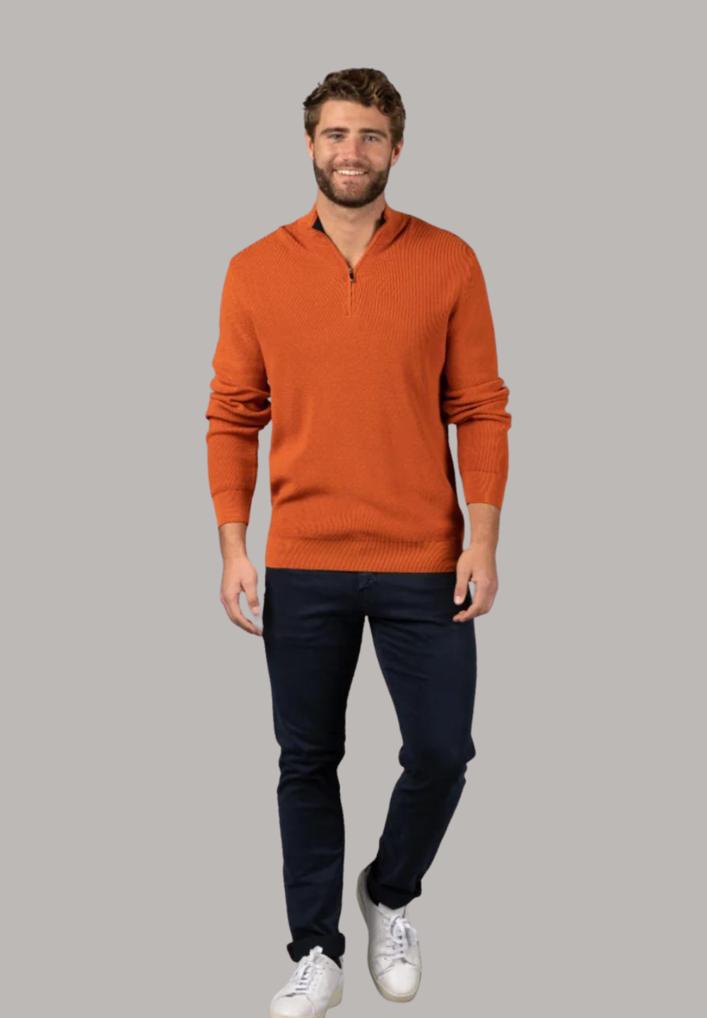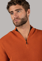 American Heritage 3/4 Zip sweater in melange tile/orange.
