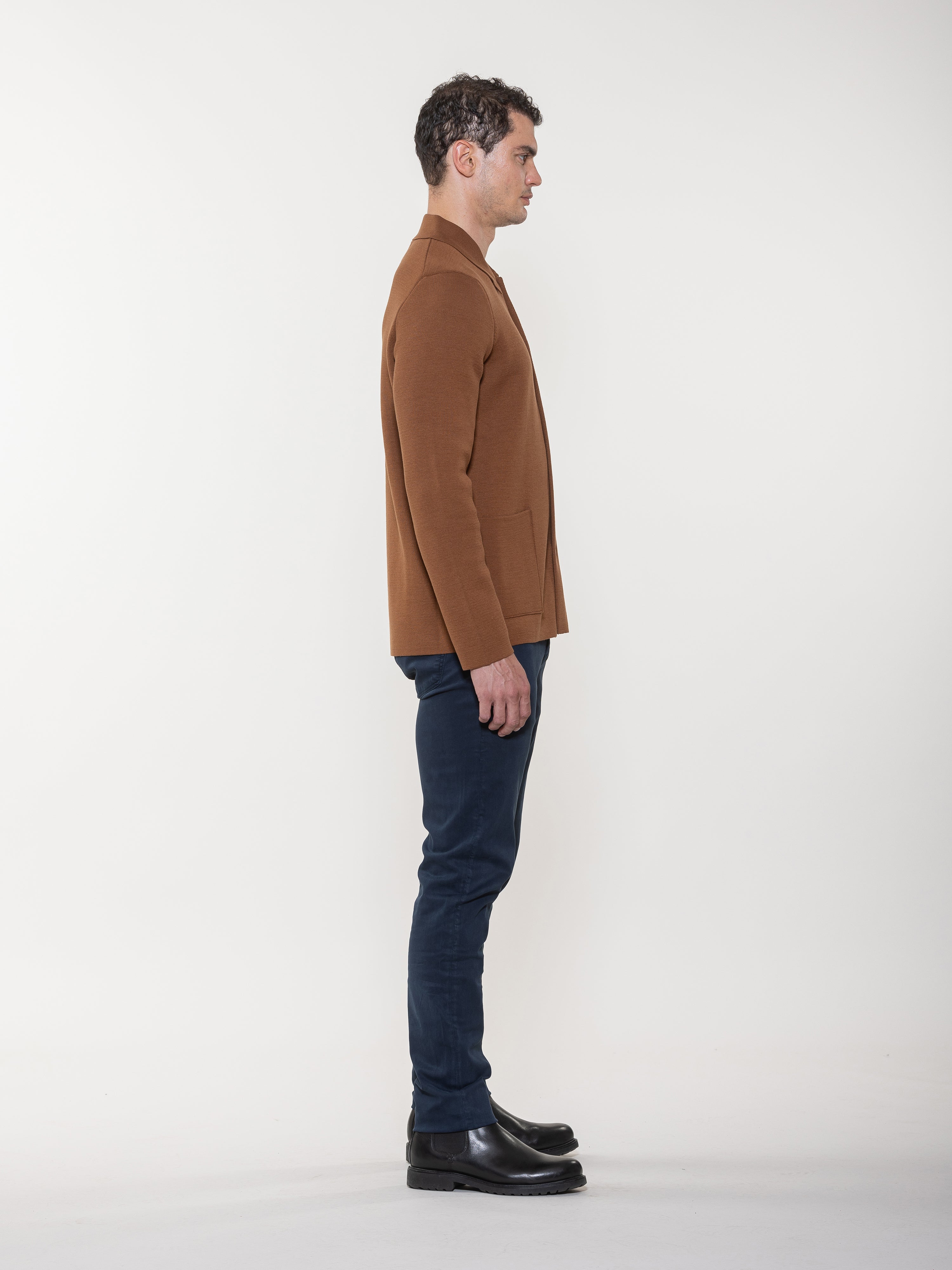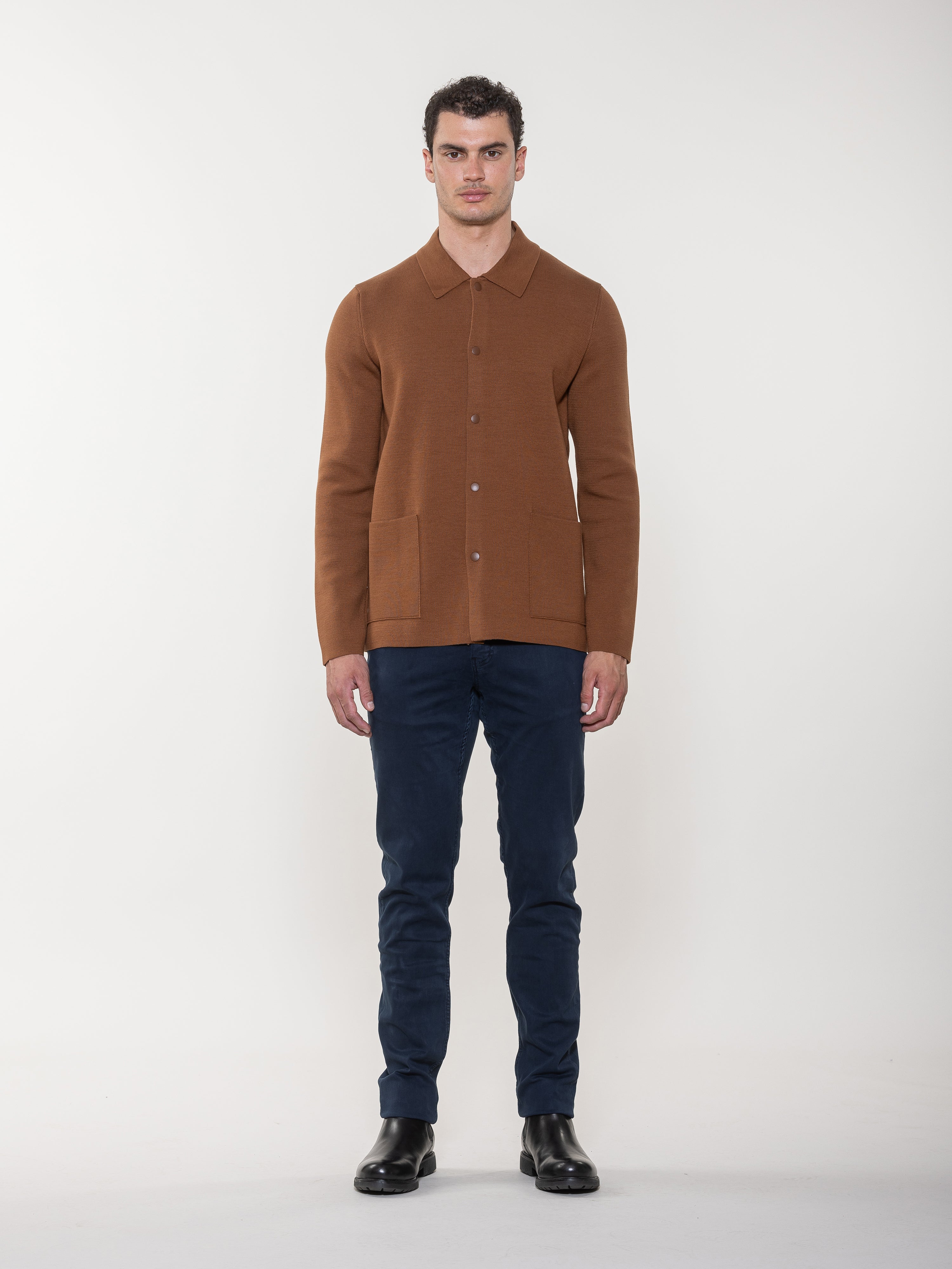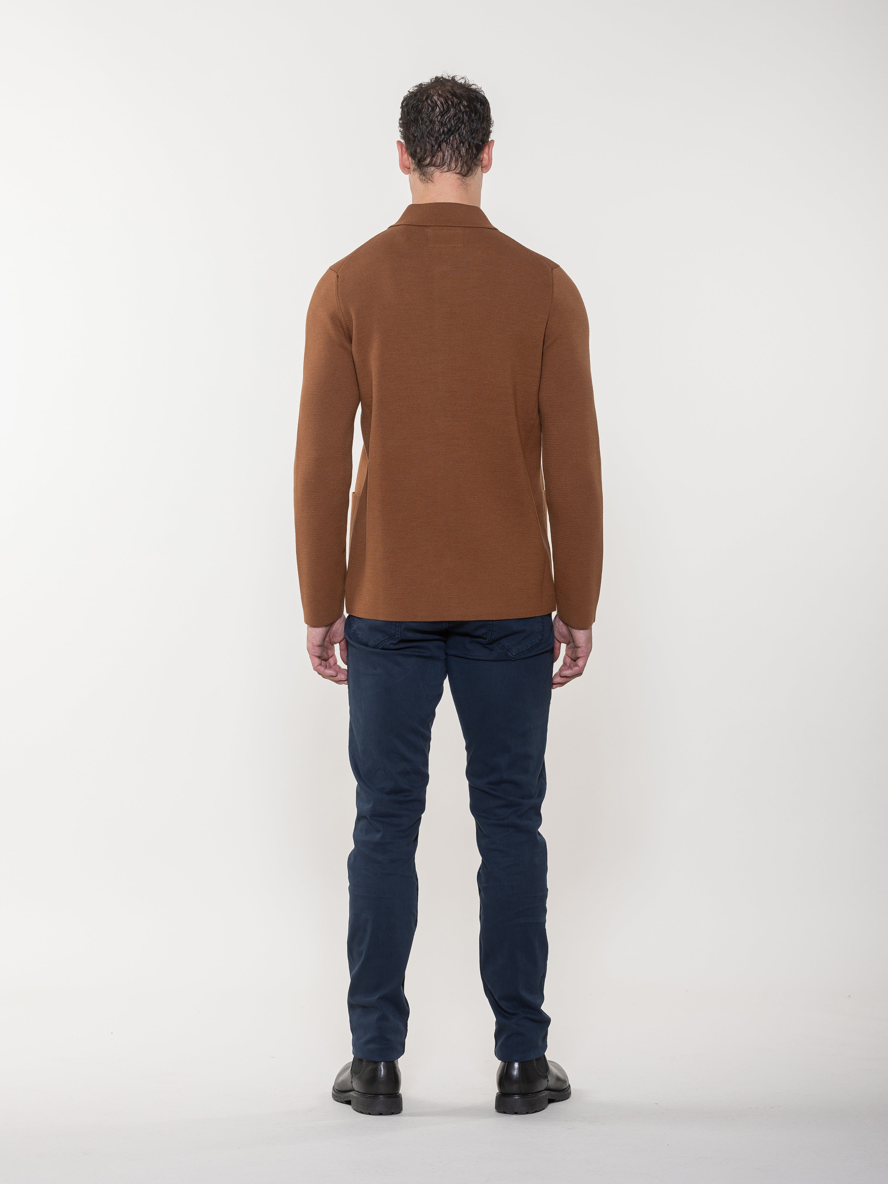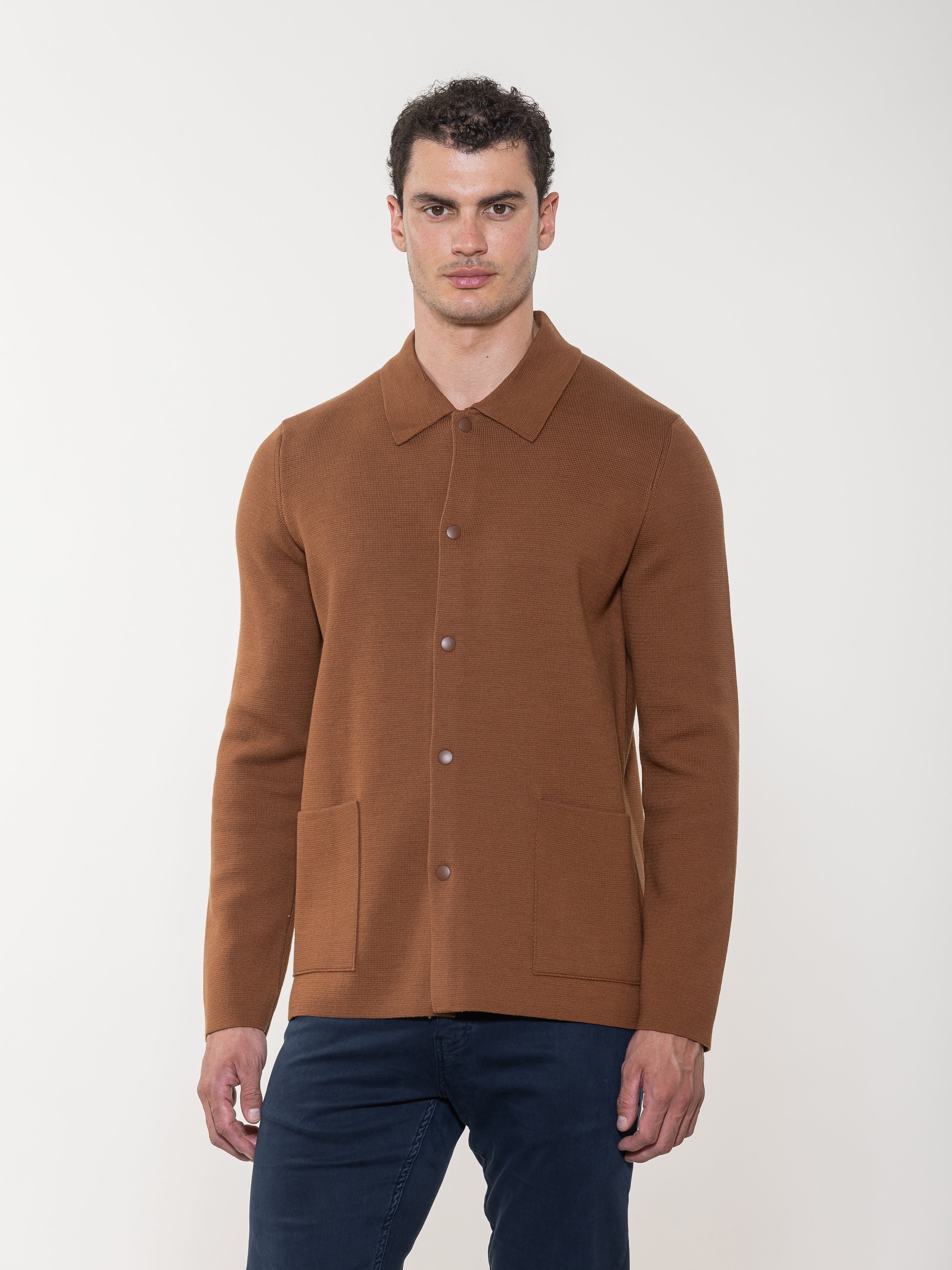 BIRDSEYE BUTTON UP KNIT SWEATER WITH TWO POCKETS