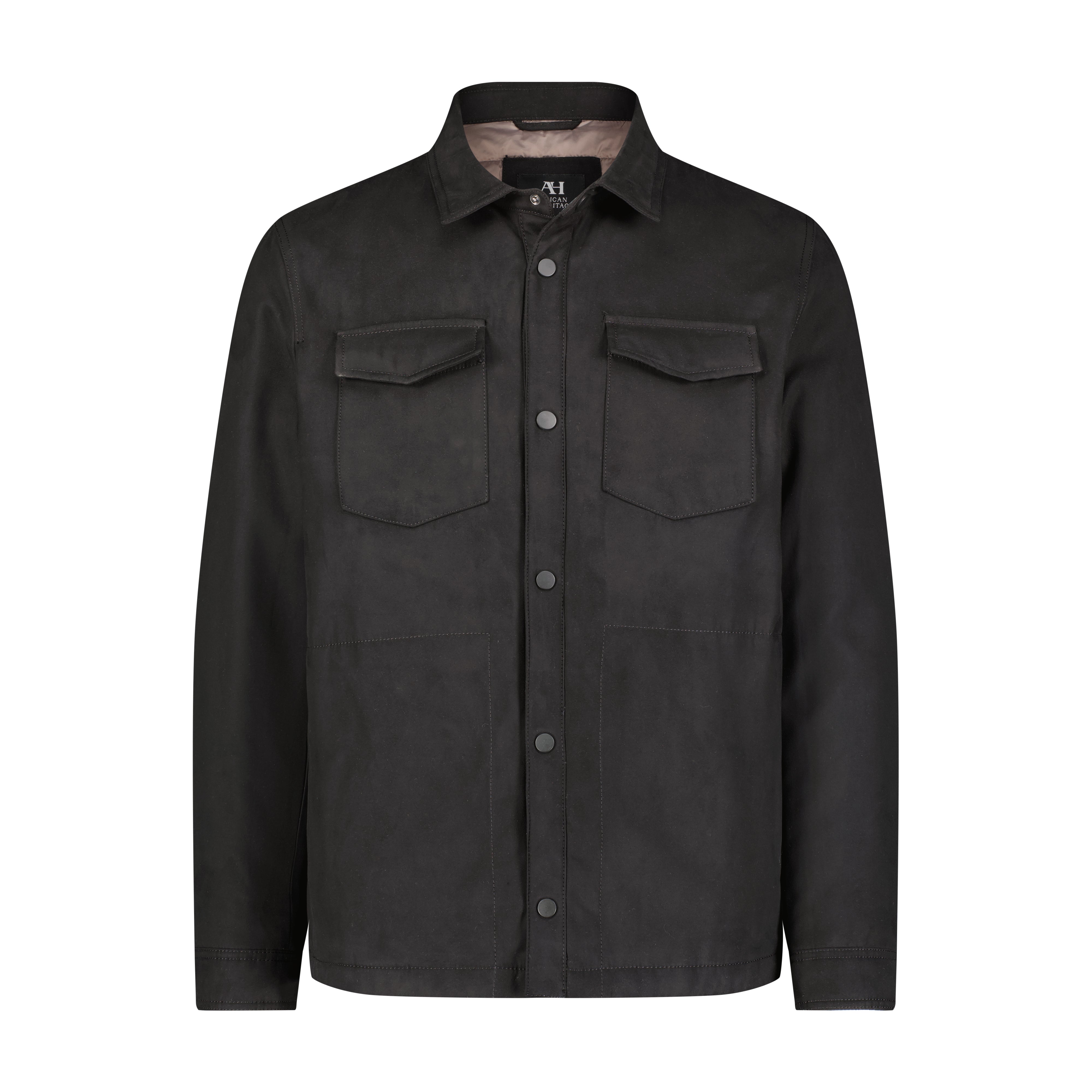 Crespo Faux Suede Four Pocket Car Coat with snap buttons in black.