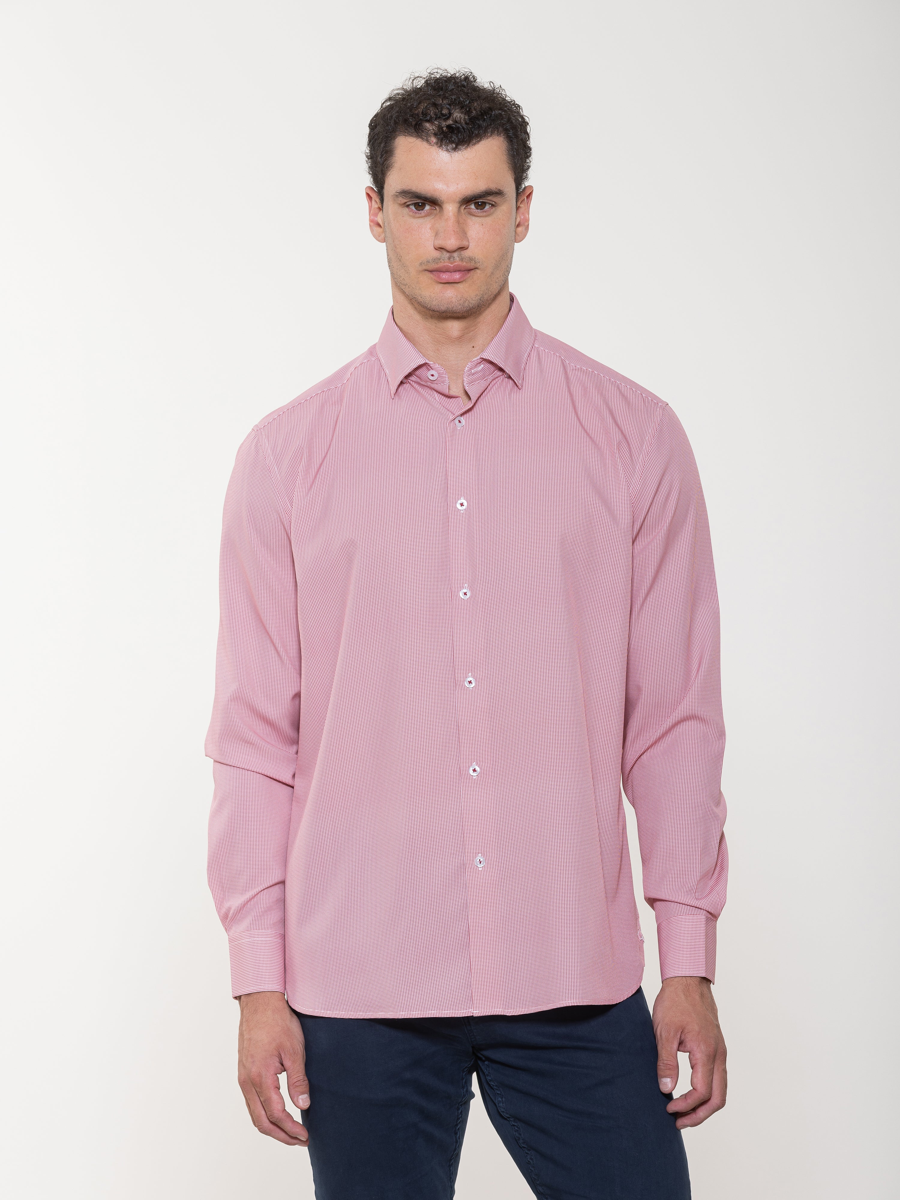 MINI GEO DOT LONG SLEEVE SHIRT NON IRON, MOISTURE WICKING, EASY CARE ANTI MICROBIAL SPF 50 WITH 4 WAY STRETCH