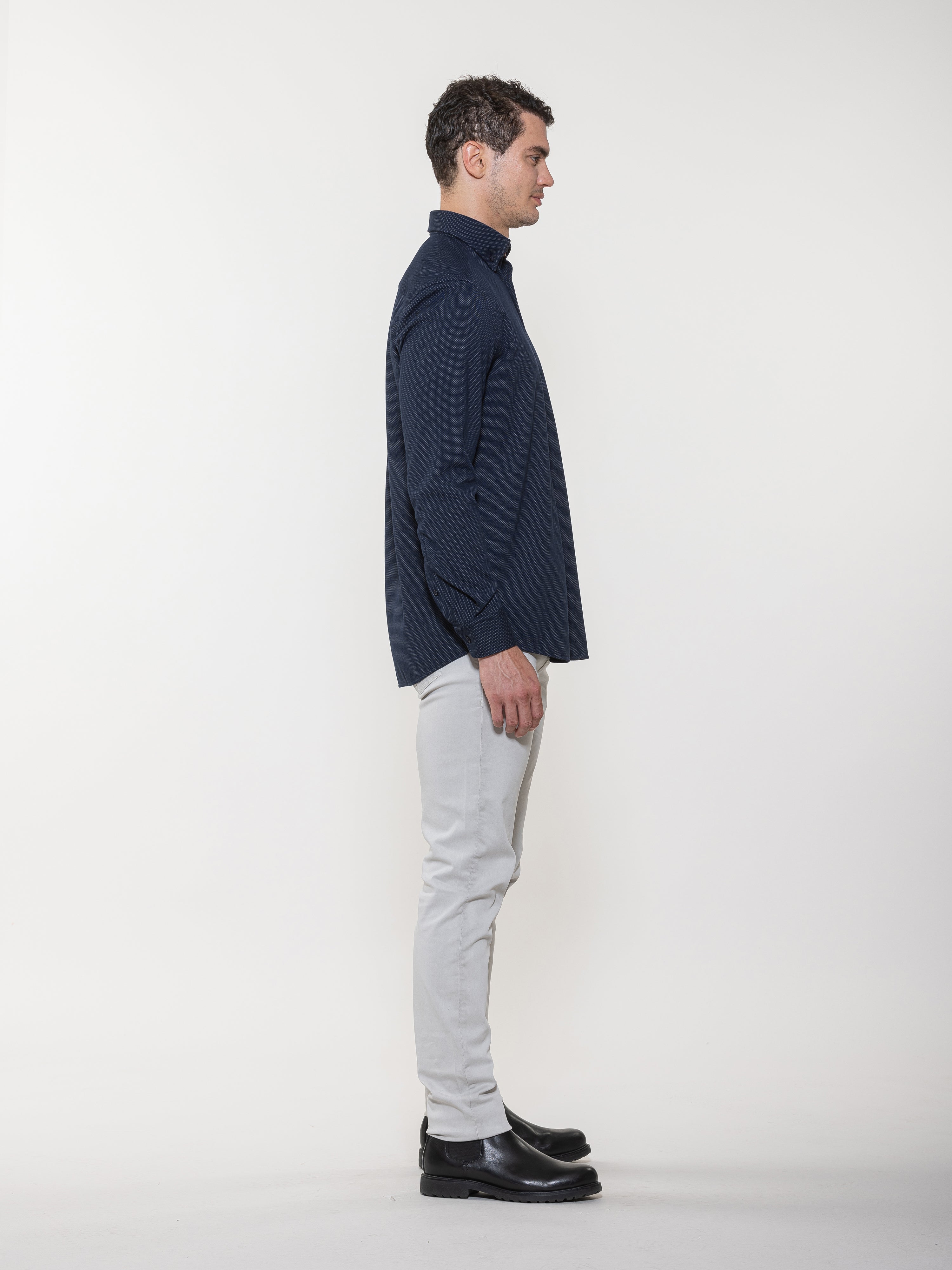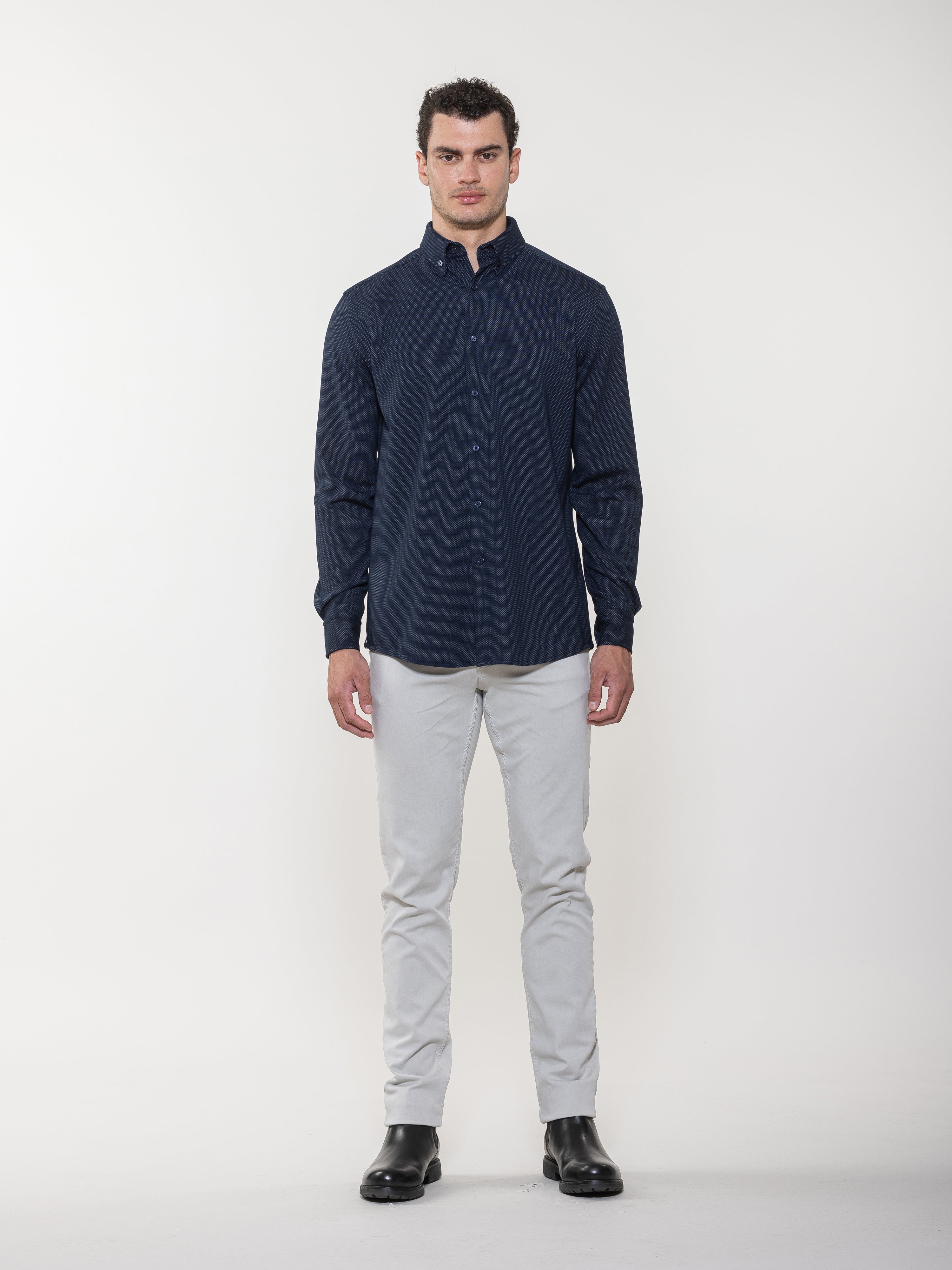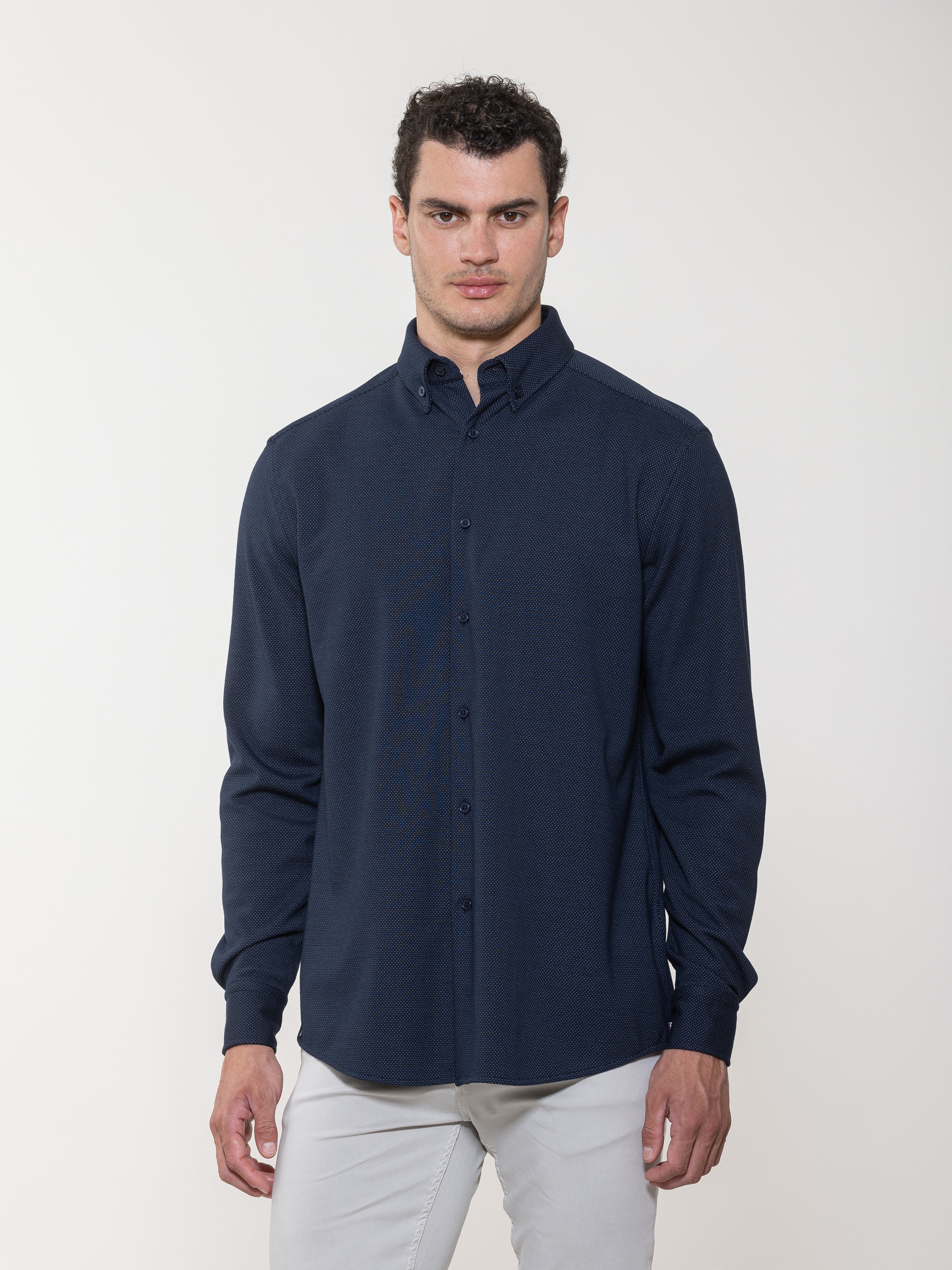 FOUR WAY STRETCH FAST DRY MOISTURE WICKING WRINKLE FREE EASY CARE DOUBLE FACED PIN DOT LONG SLEEVE KNIT PERFORMANCE SHIRT