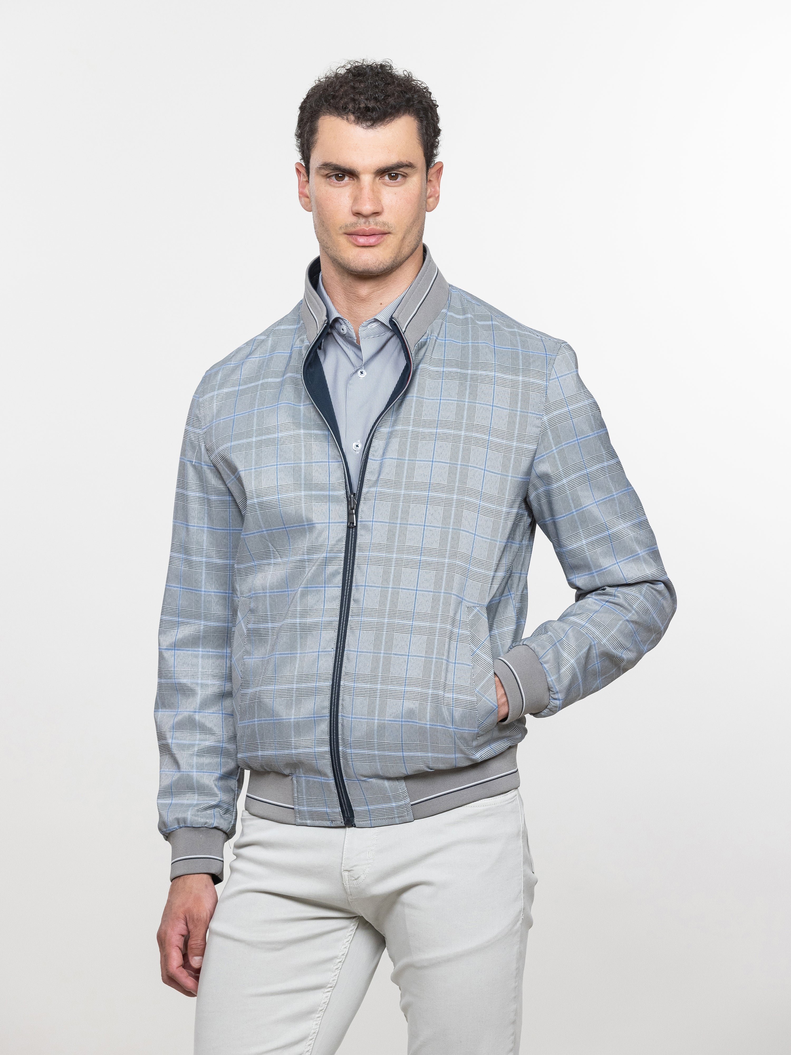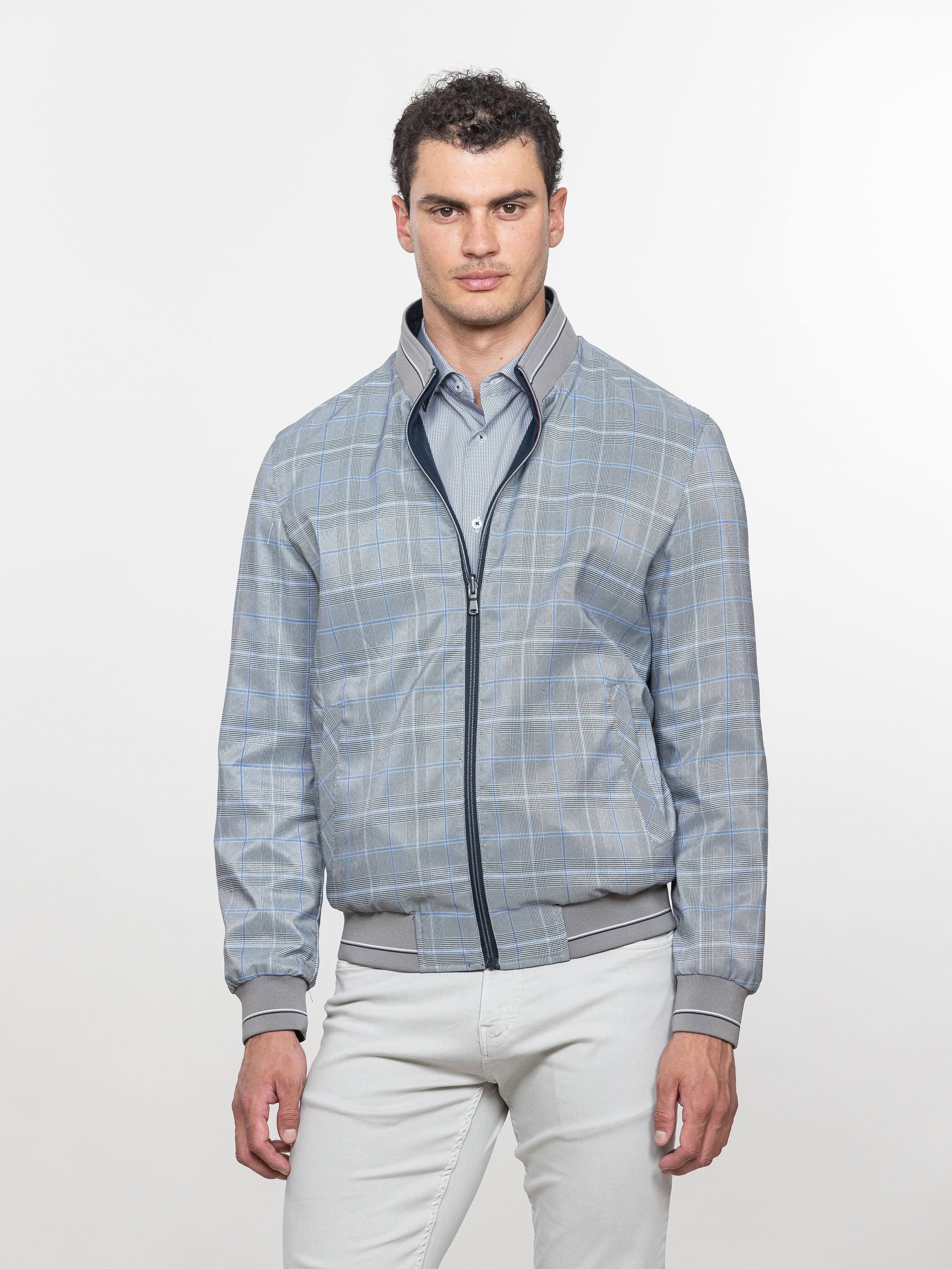 REVERSIBLE GLEN PLAID BASEBALL JACKET, WATER RESISTANT, MOISTURE-WICKING ANTI-MICROBIAL FULL ZIP DOUBLE POCKETS.