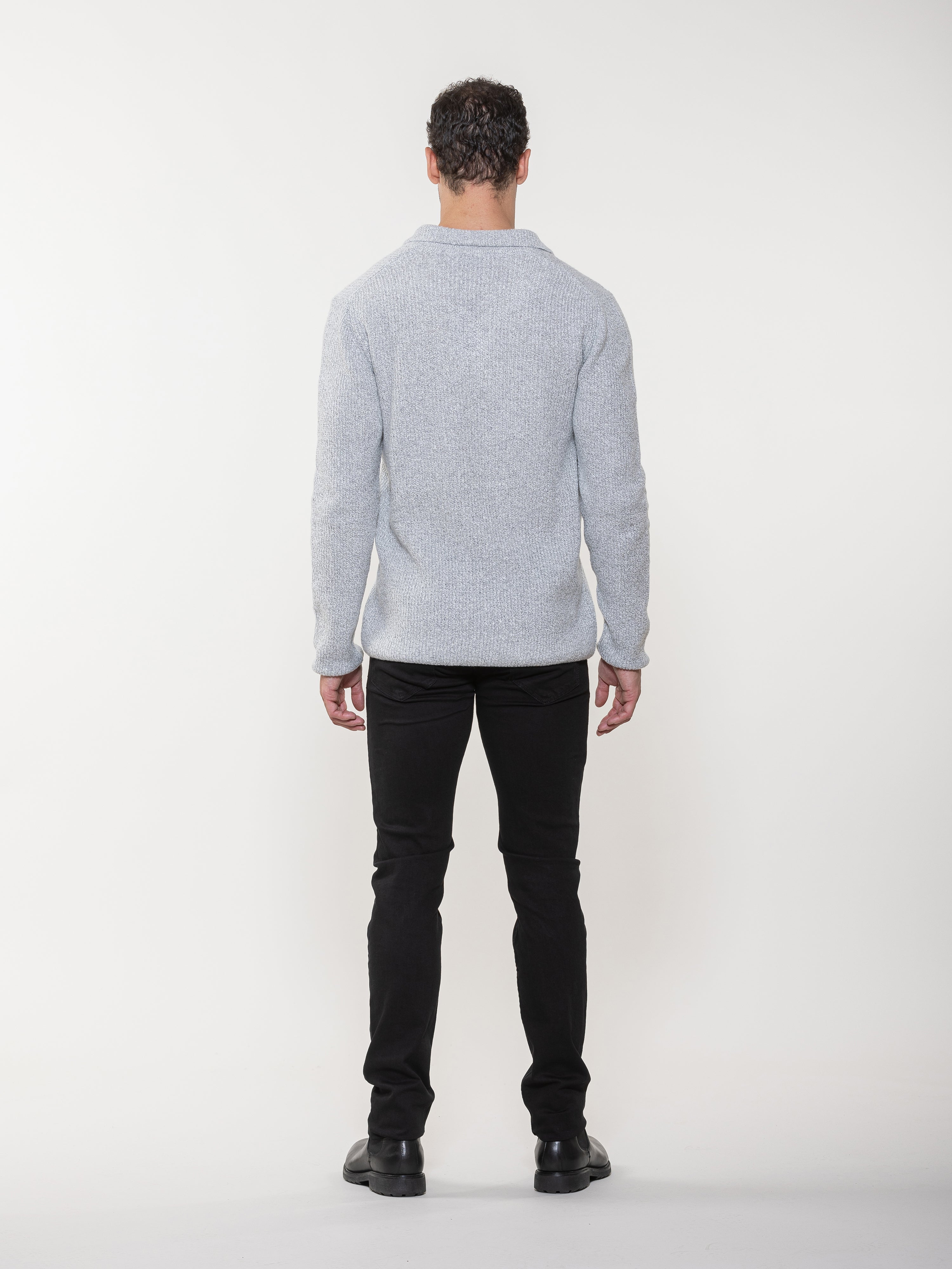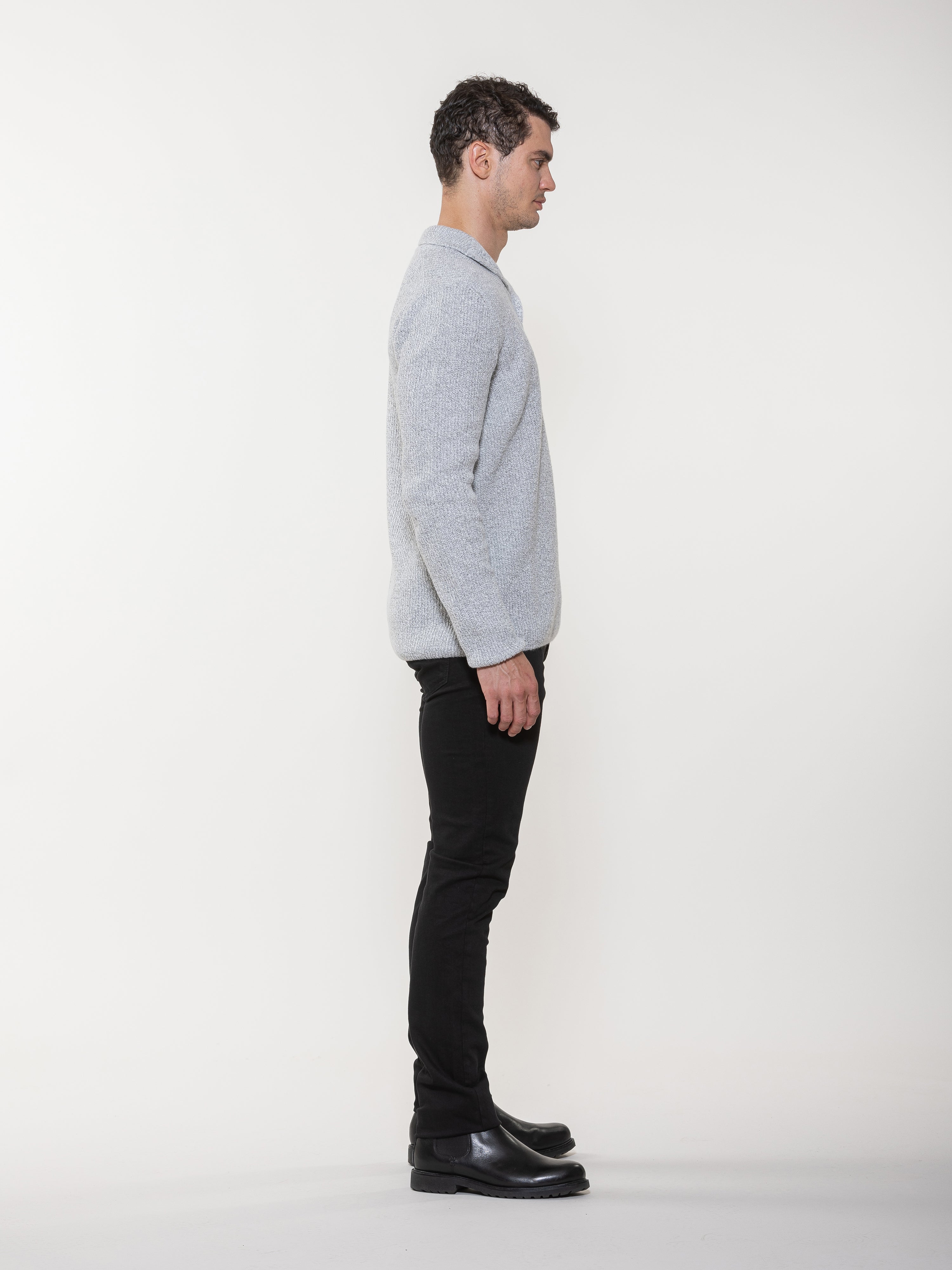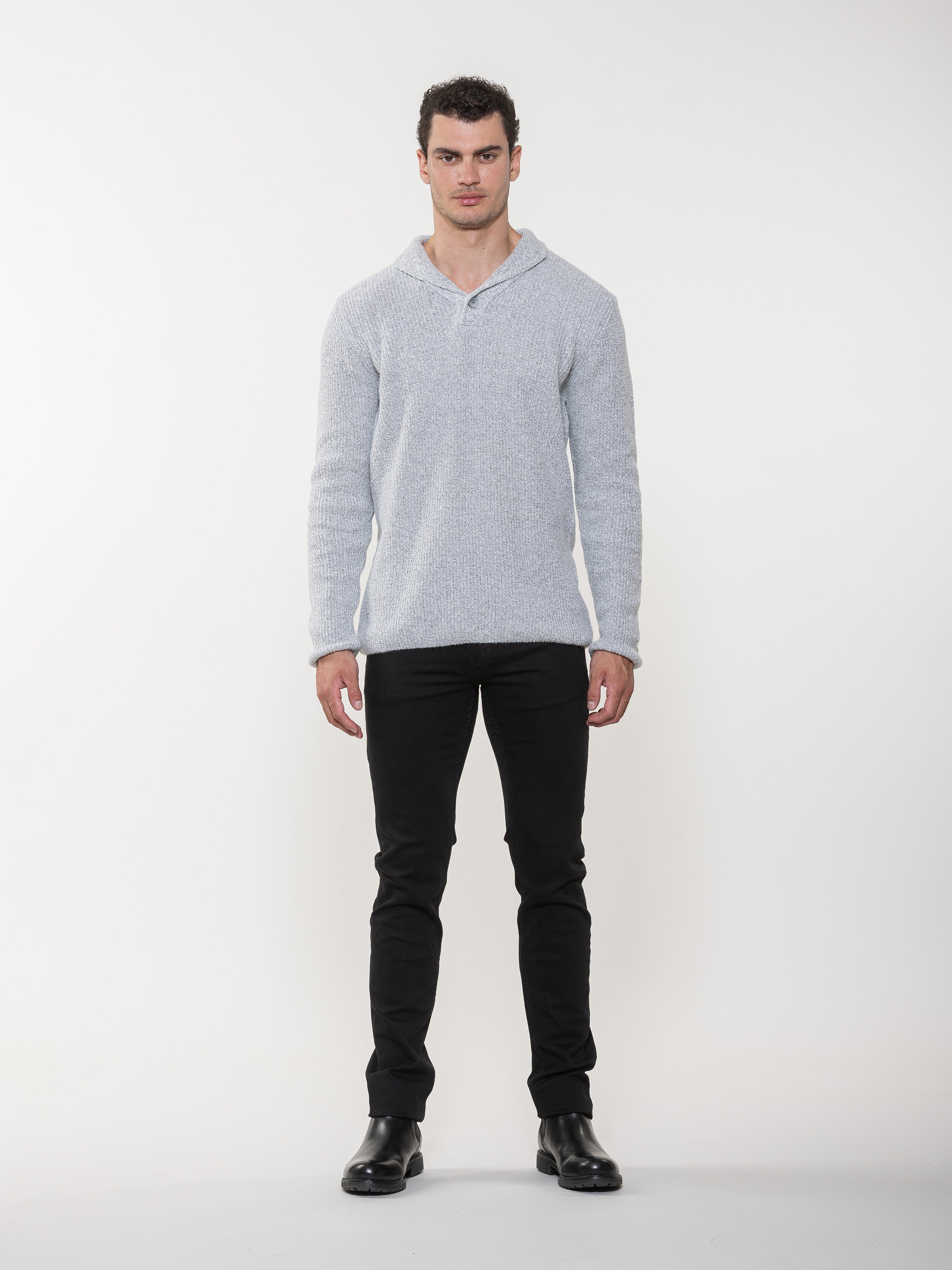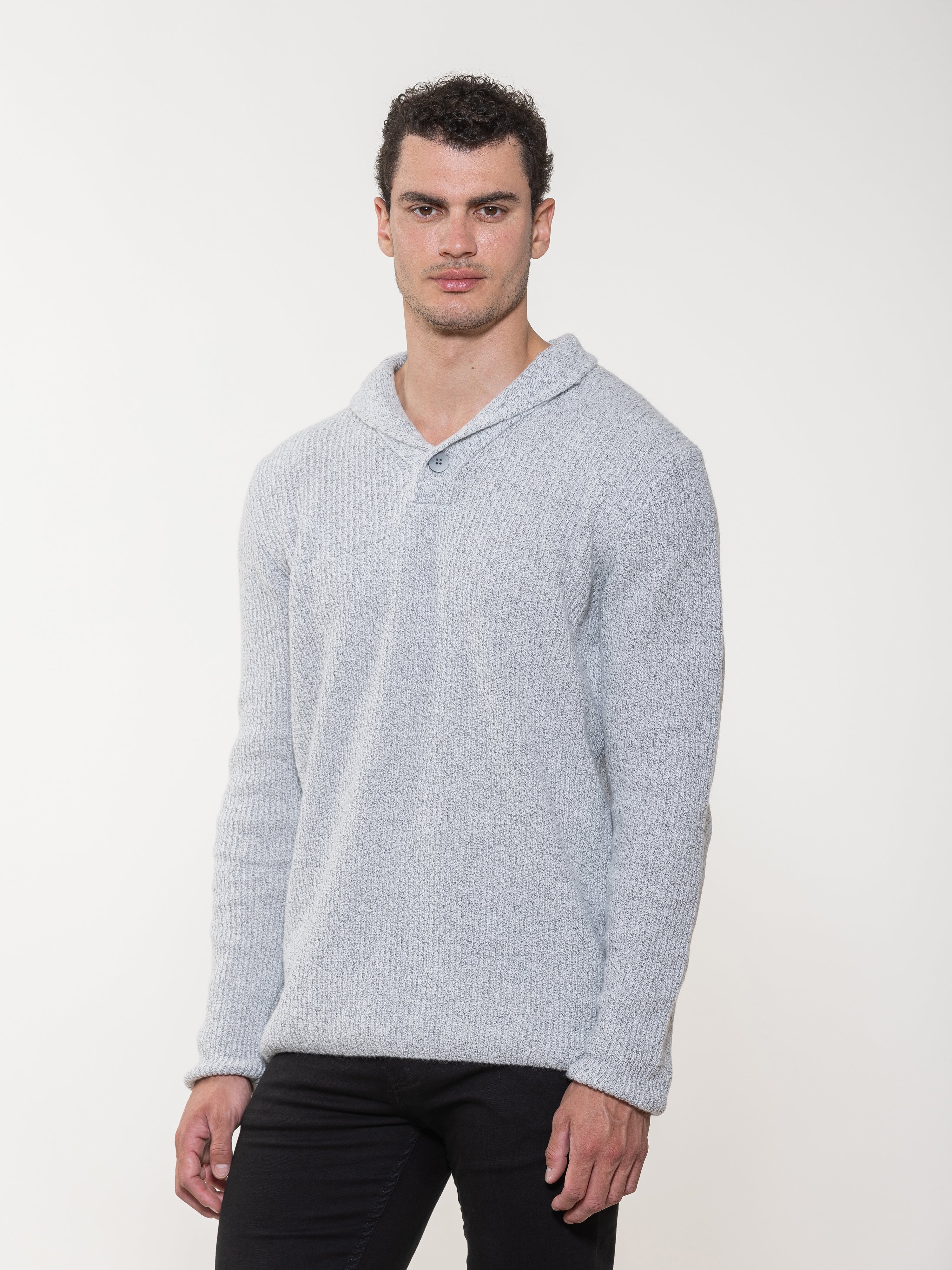 SINGLE BUTTON SHAWL COLLAR SWEATER