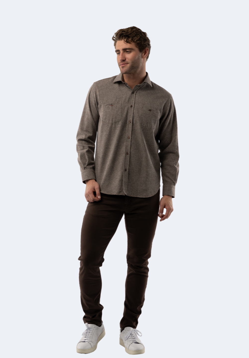 The Light Brown Stripes Shirt is a fashionable choice for any occasion. Made from recycled American Heritage fabric, this shirt is both sustainable and stylish. Its pockets and light brown stripes guarantee a classic look and durability that will last.