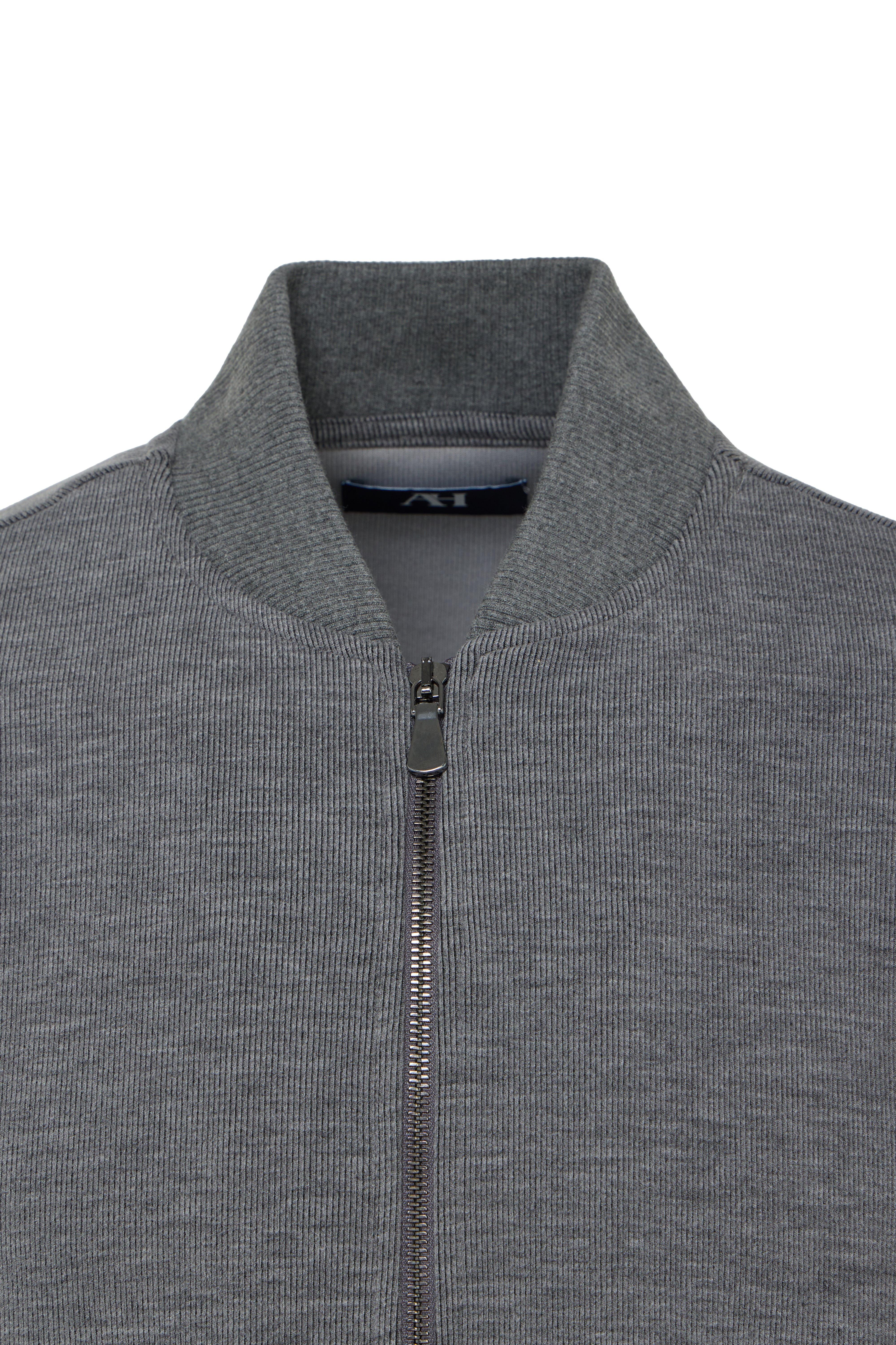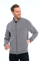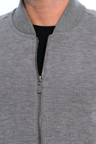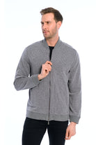A true nod to Americana heritage, this Charcoal Micro Stripe Baseball Zip Jacket blends timeless style with modern performance. Designed with a micro stripe dobby texture and a sleek double-faced finish, it features a versatile double zip front and two functional pockets for everyday utility. Crafted from a sustainable stretch blend of recycled polyester, viscose, and elastane, it offers durability, comfort, and easy movement. Perfect for cool fall days, this jacket delivers effortless layering with a clean, classic baseball silhouette that feels both rugged and refined.