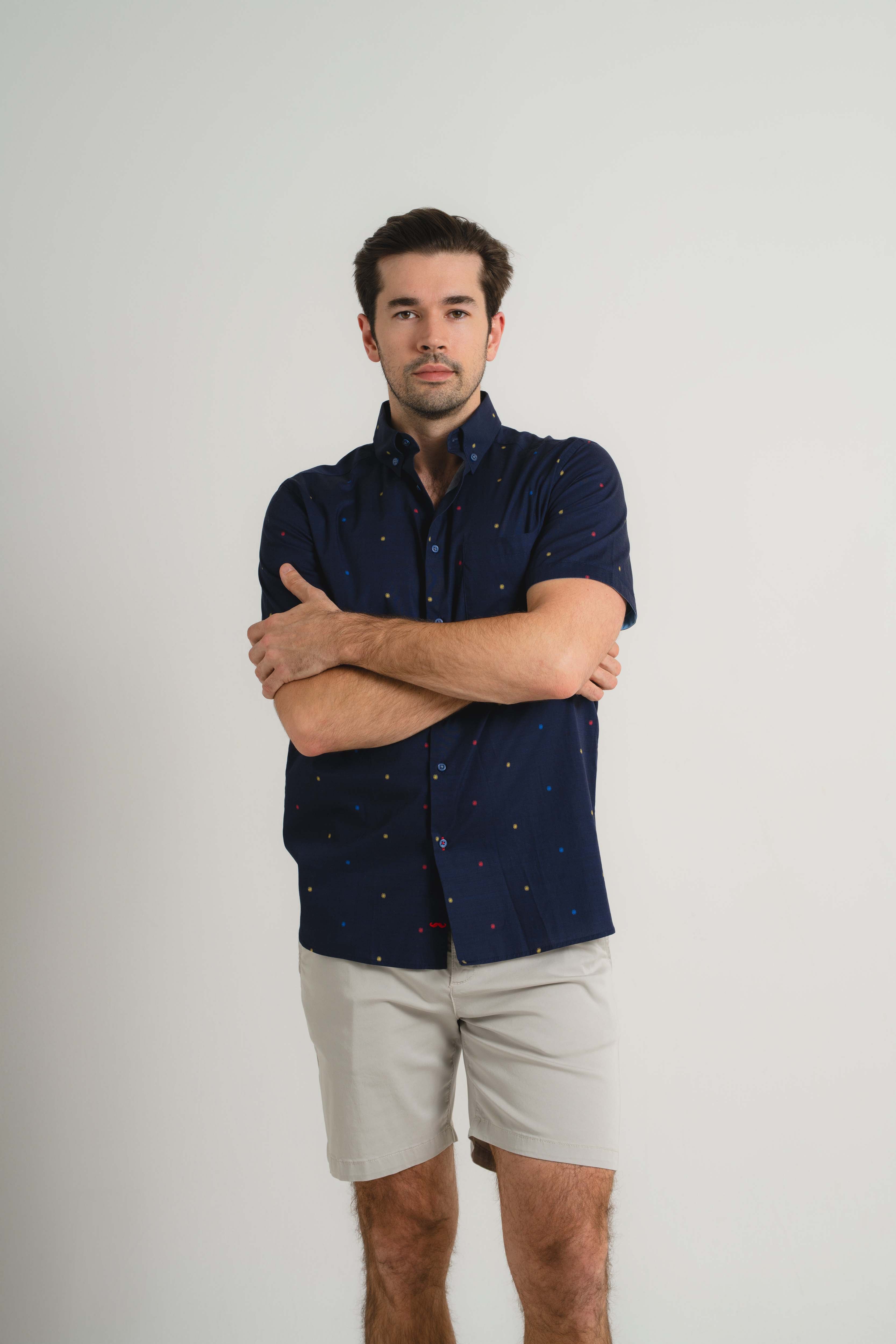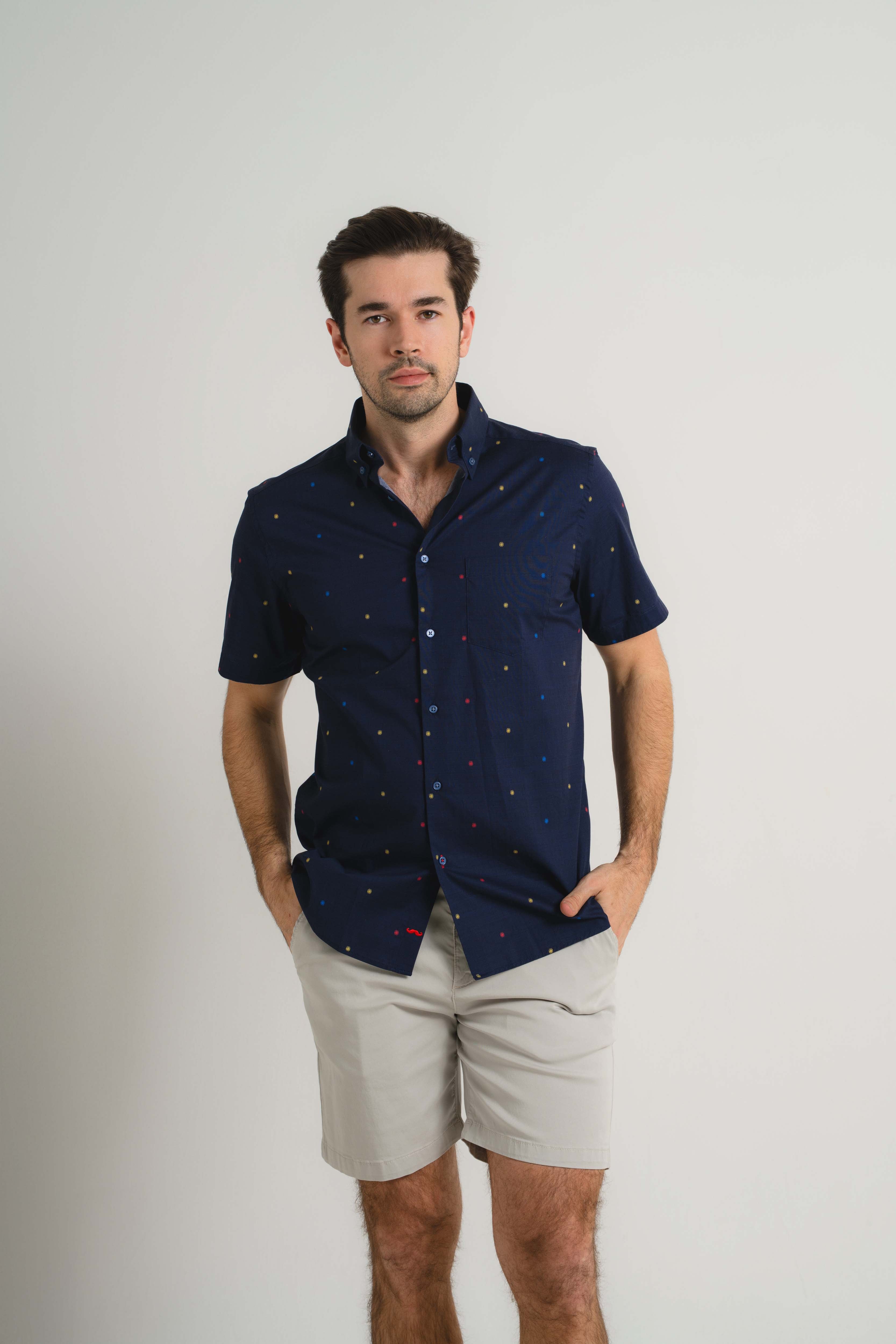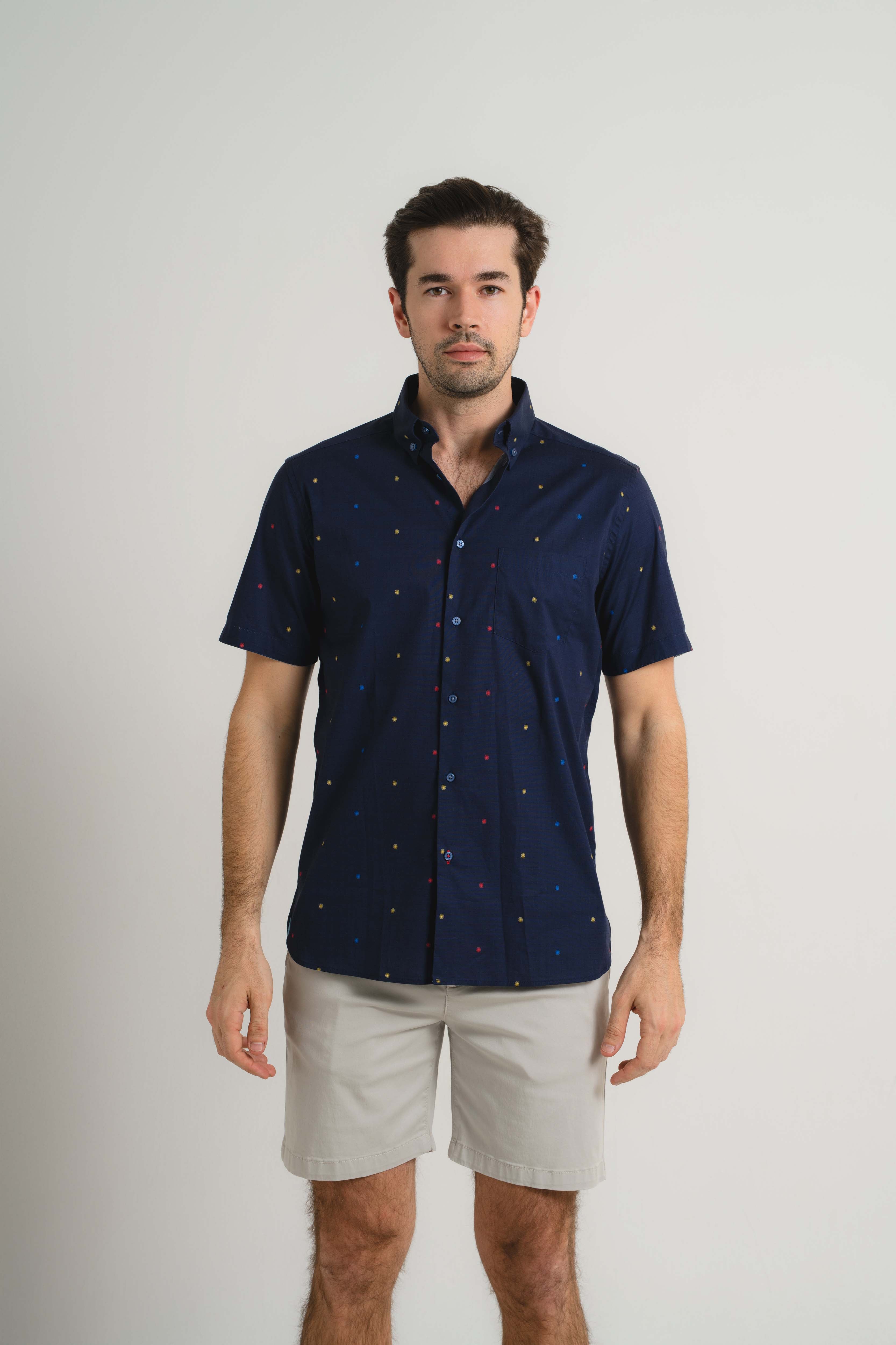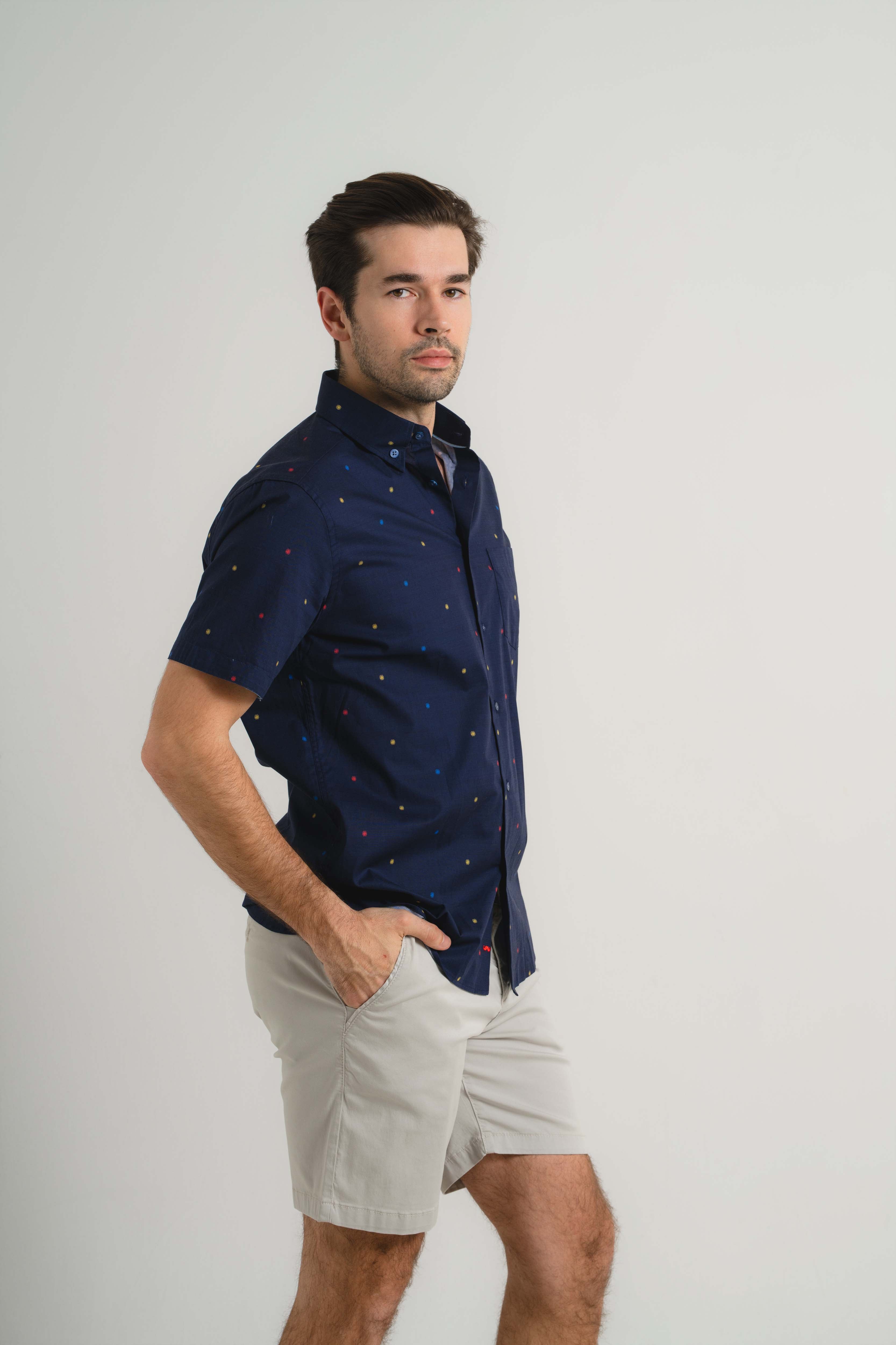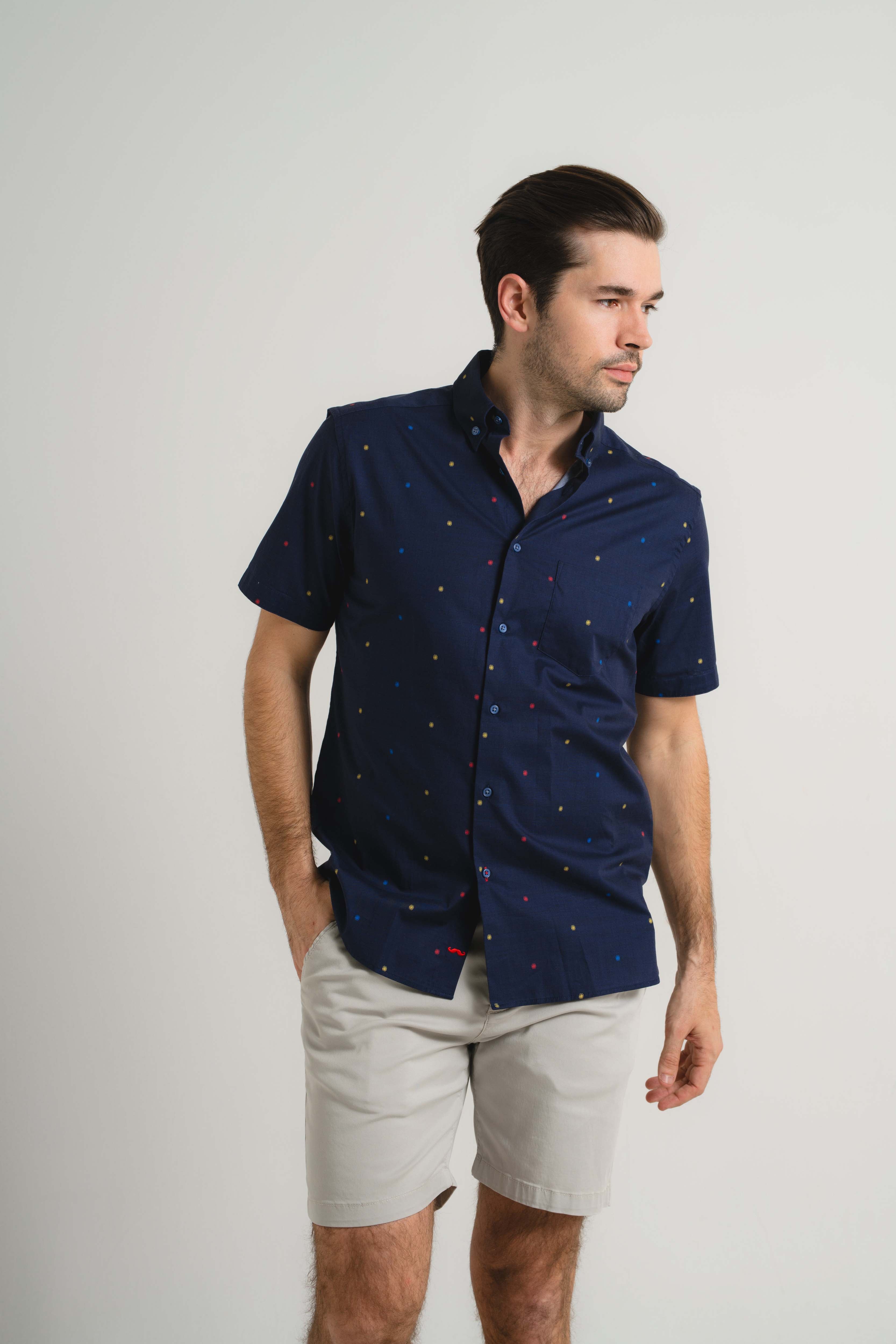 Navy Pin Dot Short Sleeve Shirt
