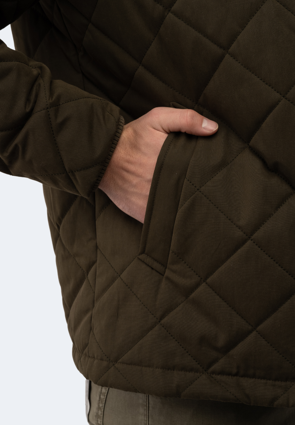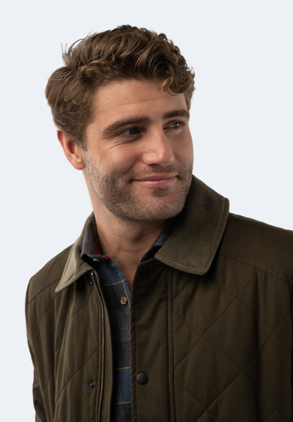The FW23 Olive Quilted Coat combines American Heritage with modern technology. Its water repellent outer layer, 4-way stretch, and 3-layer membrane provide maximum protection from the elements. Plus, two side pockets and a knitted interior provide a tailored fit and ample warmth.