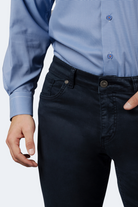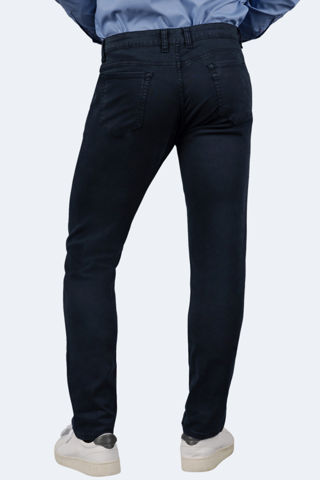 This modern-fit Navy Tencel pants provide comfort and versatility for any look. Crafted from American Heritage fabric, they are lightweight and breathable for everyday wear. Perfect for creating a timeless, polished look.
