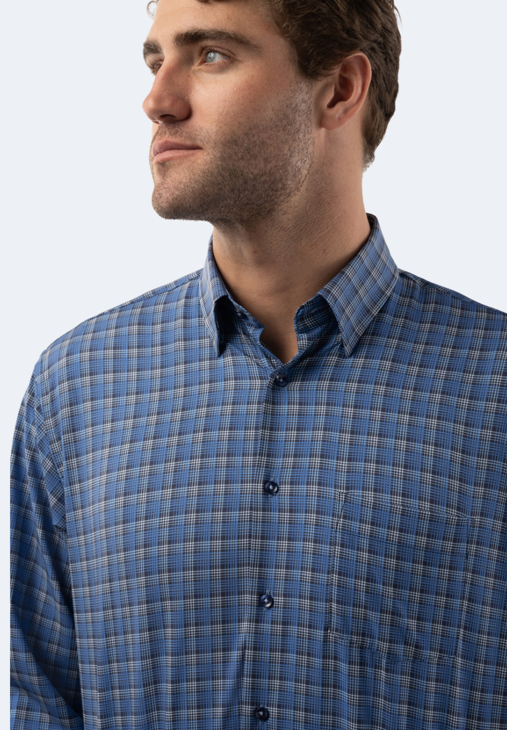 Experience classic American Heritage style with the Plaid Shirt. It is designed with a combination of blue, black, and white plaid to make a bold statement. Features include a chest pocket, performance stretch and advanced anti-odor and antimicrobial technologies to ensure long-lasting freshness and unbeatable comfort. This shirt also offers moisture-wicking technology to keep you dry throughout the day.
