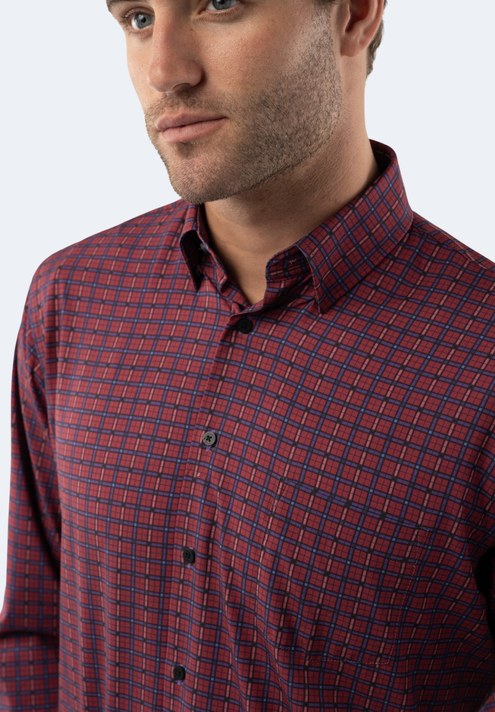 The Maroon Plaid Shirt is the perfect combination of American Heritage and modern comfort. This shirt is made with performance stretch, anti-odor, and antimicrobial technology to keep you dry and odor-free. Plus, its moisture wicking fabric keeps you cool and comfortable all day long.