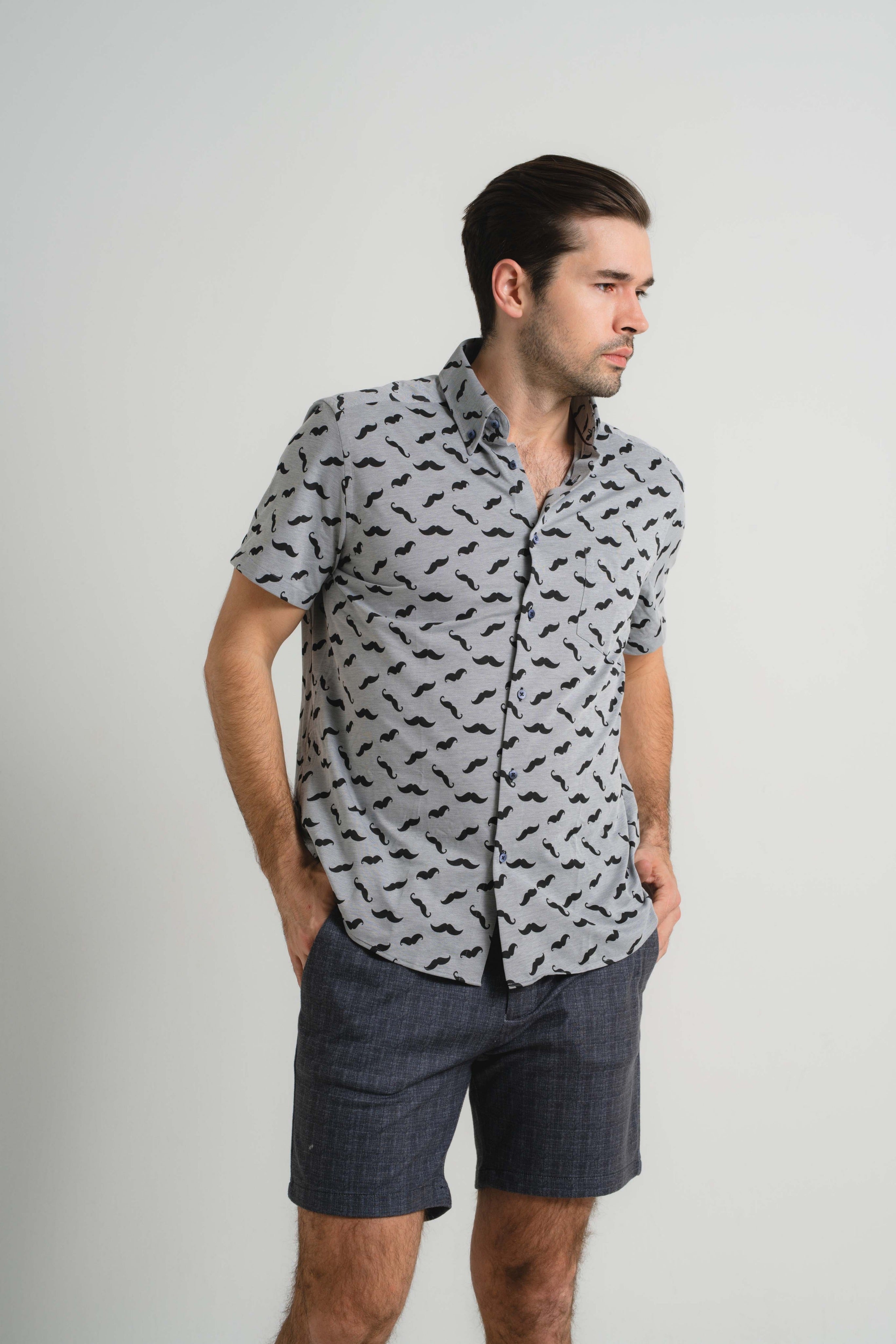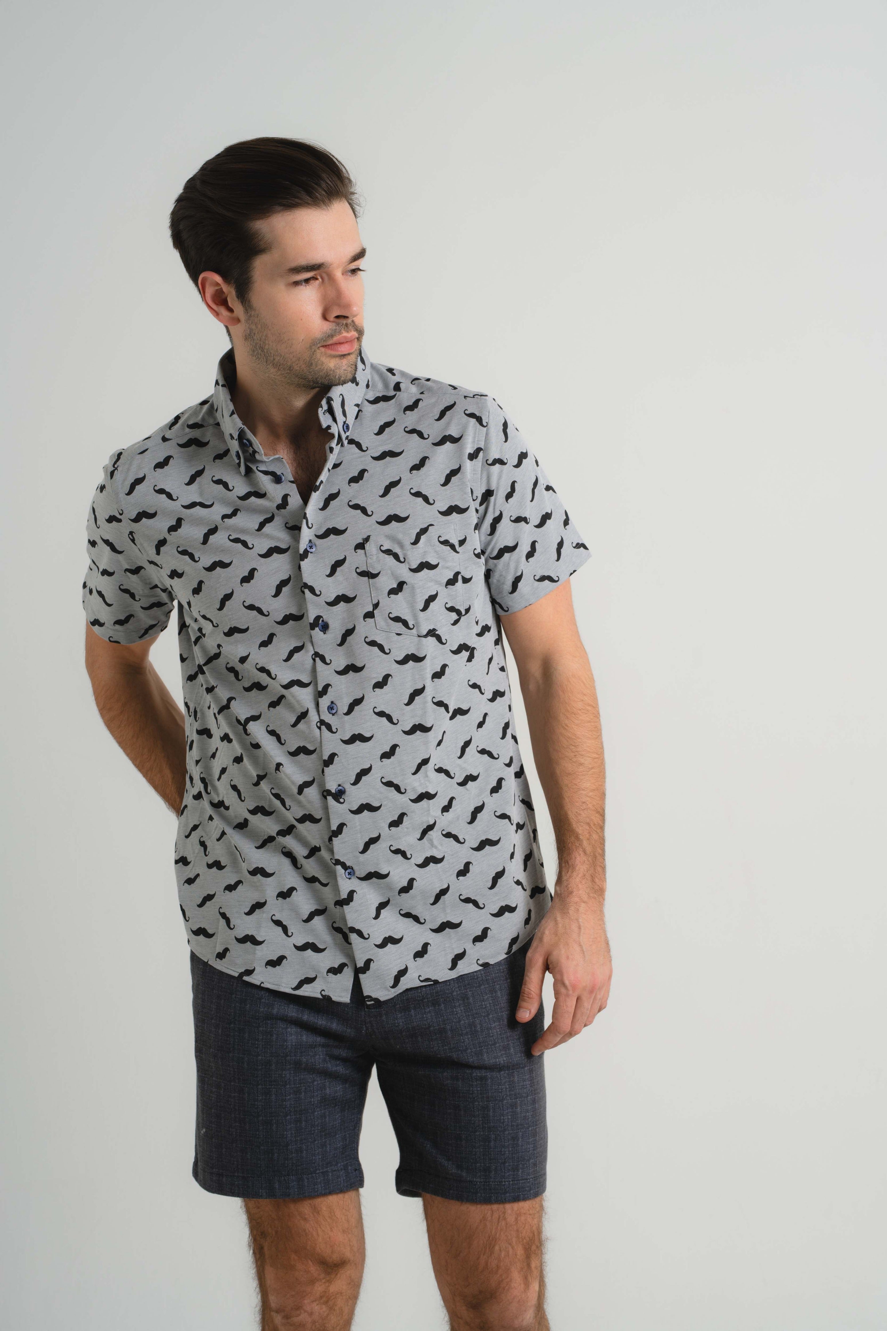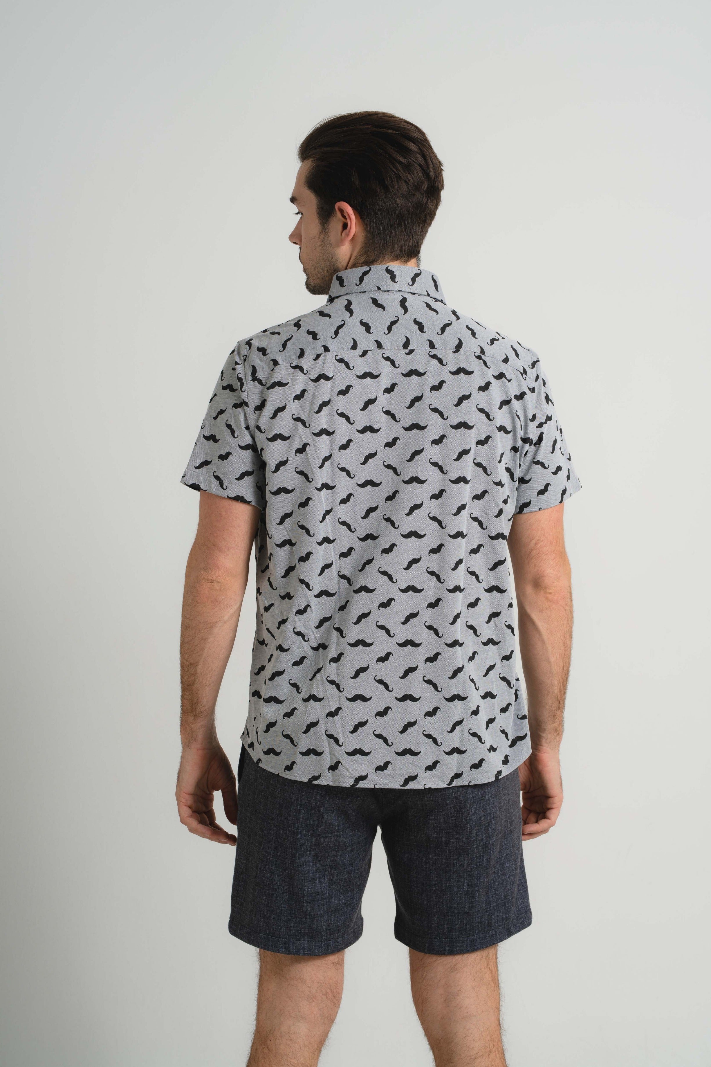 MELANGE GREY KNIT STRETCH WITH BLACK MOUSTACHE ALL OVER