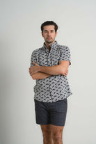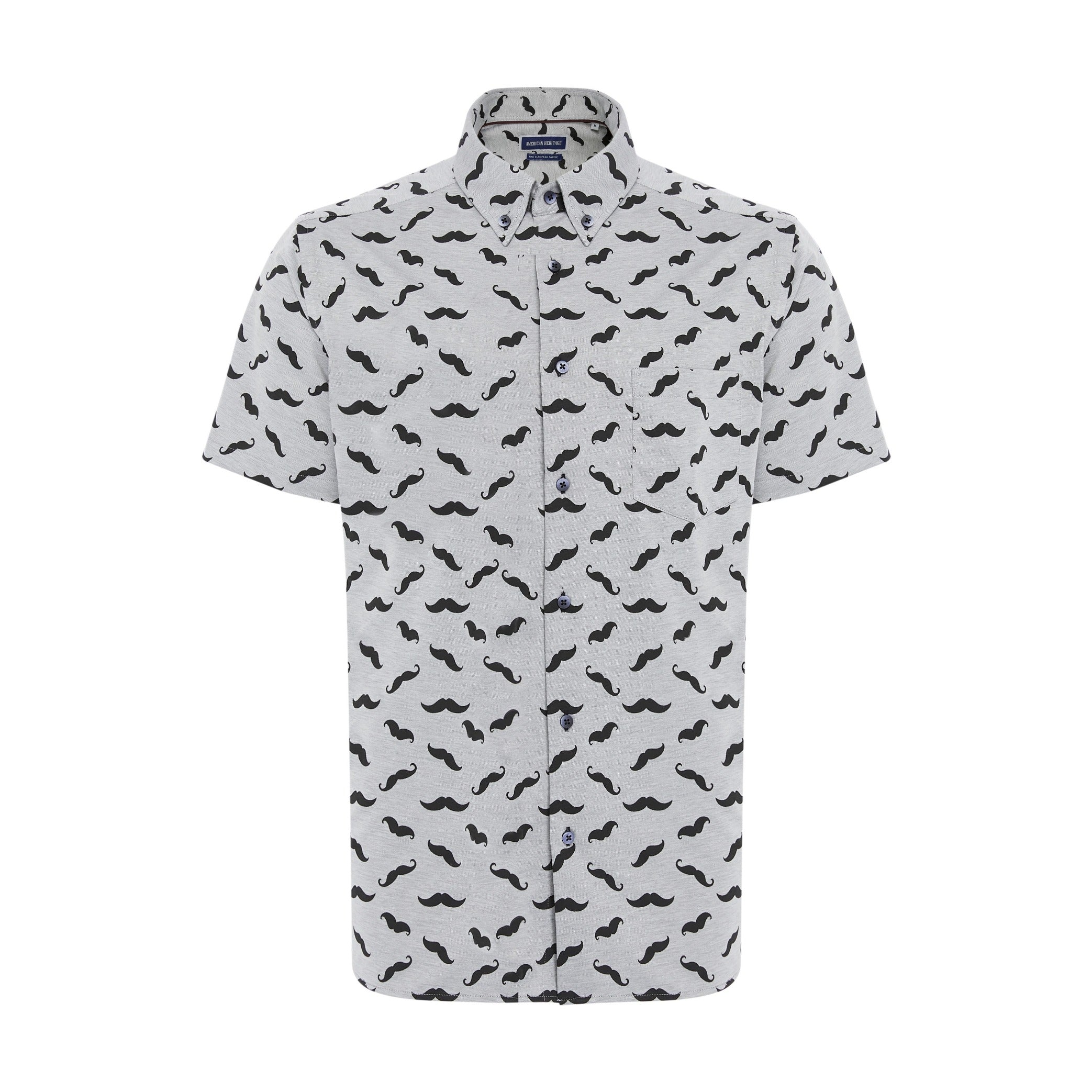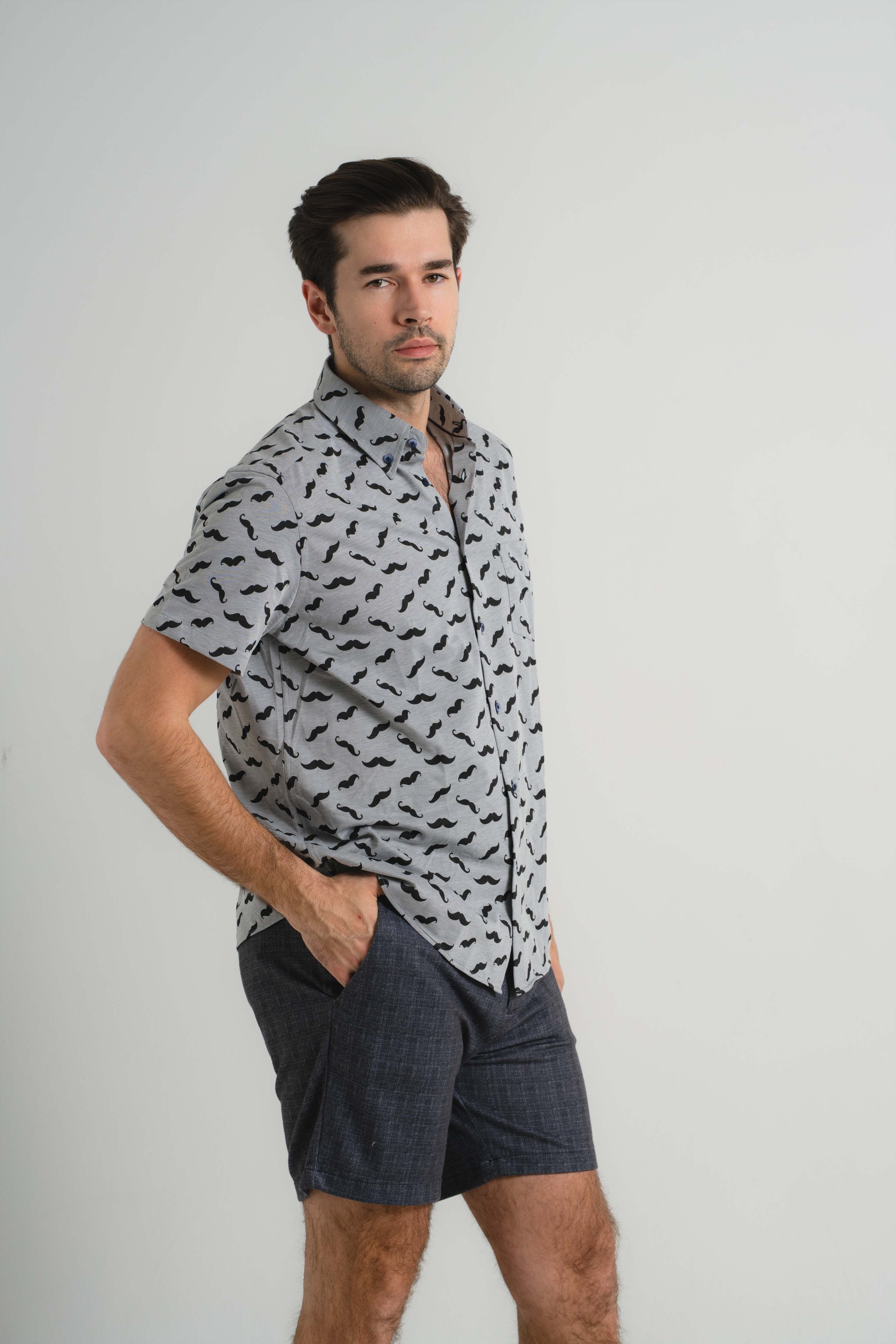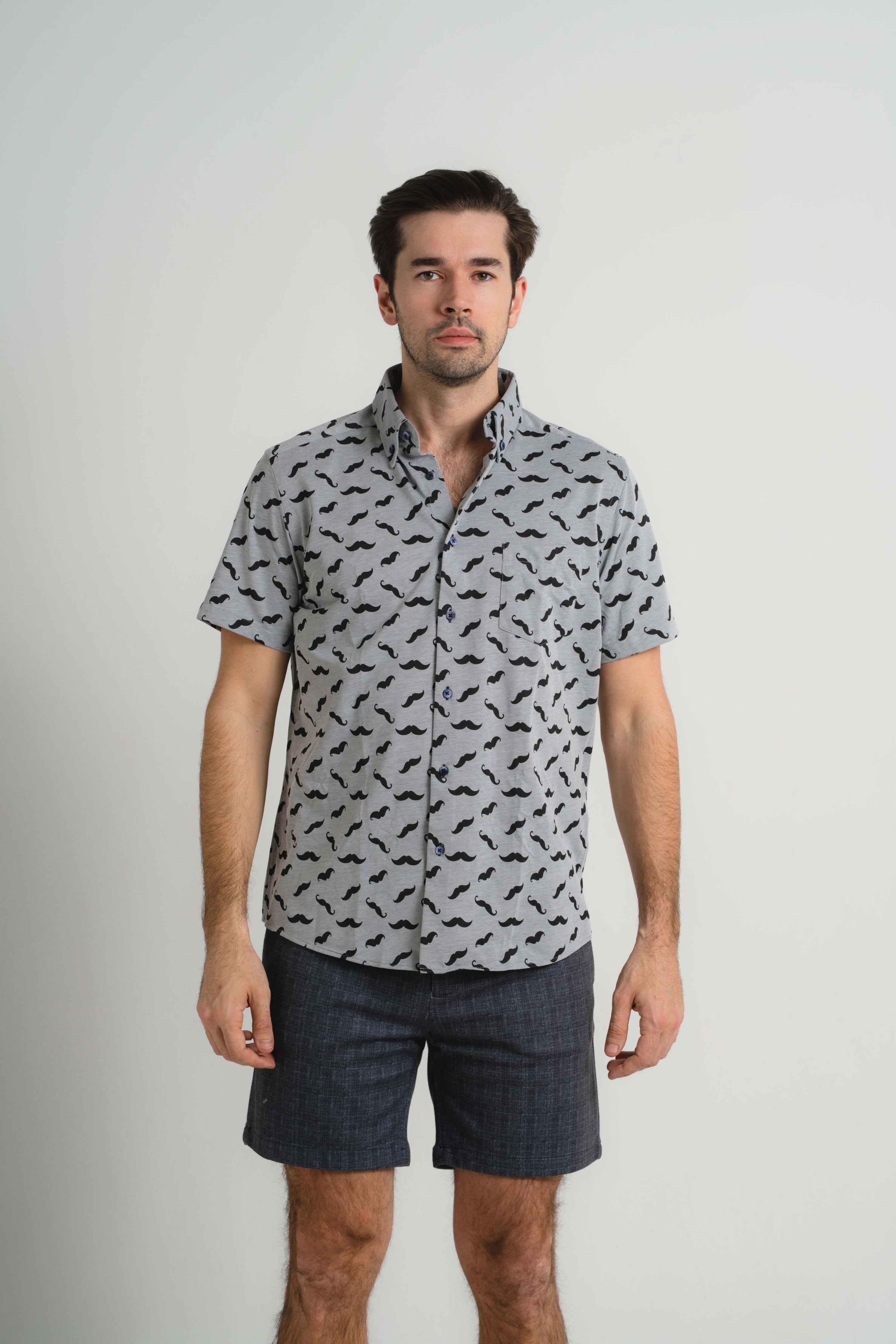 MELANGE GREY KNIT STRETCH WITH BLACK MOUSTACHE ALL OVER