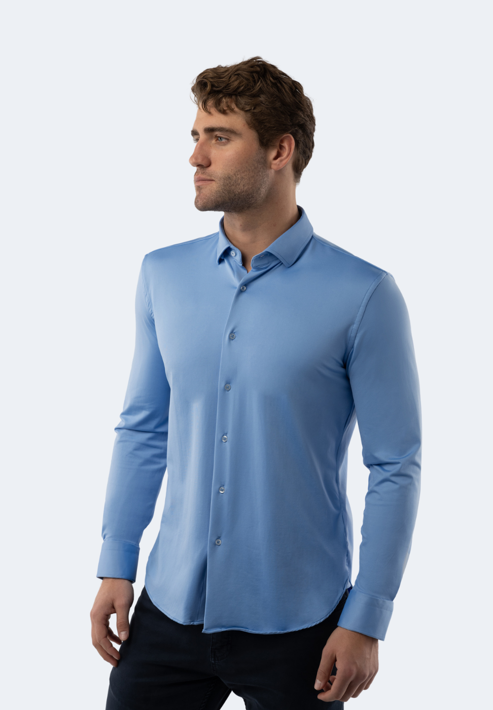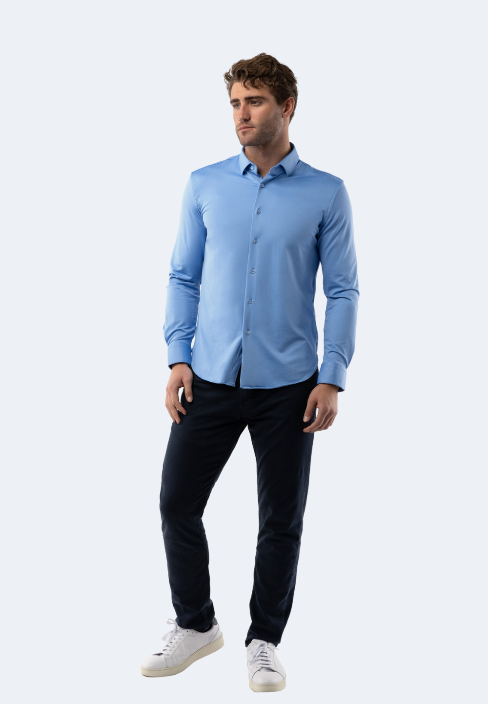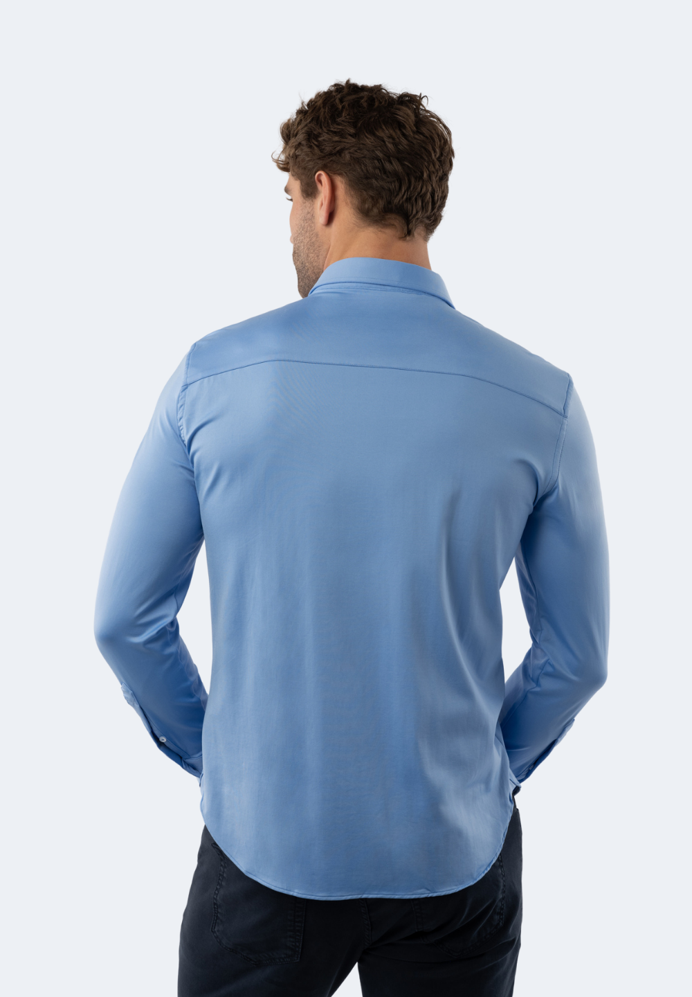 Stay cozy and look cool in the Baby Blue Solid Shirt. This American Heritage piece is crafted with eco-friendly, recycled fabric, making it a great choice for sustainable fashion.