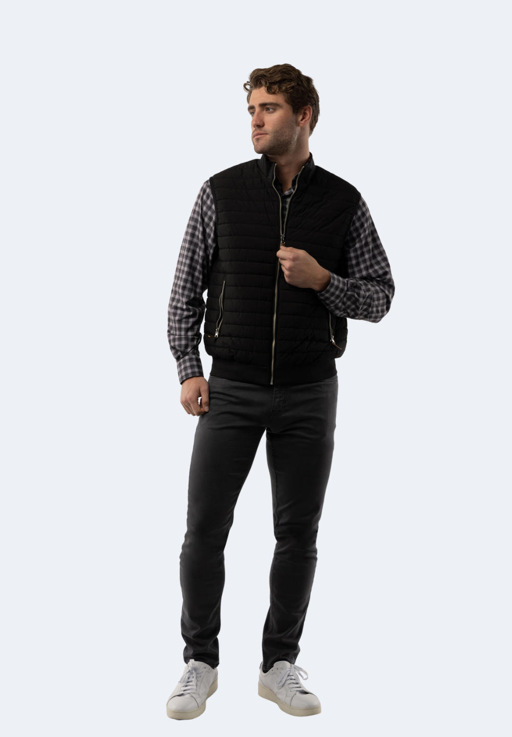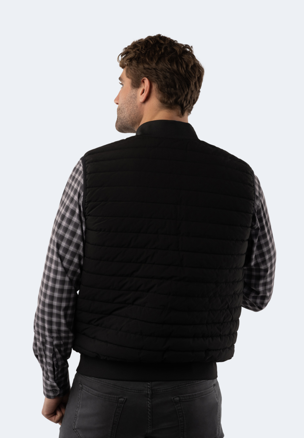 Inspired by the iconic American Heritage of the Black Quilted Vest. This vest offers a full zip, 4-way stretch, 3-Layer construction, quilted knit, water repellent fabric and two zip pockets. Create a functional, stylish look with this versatile piece.
