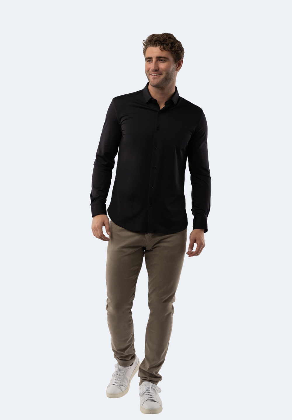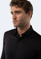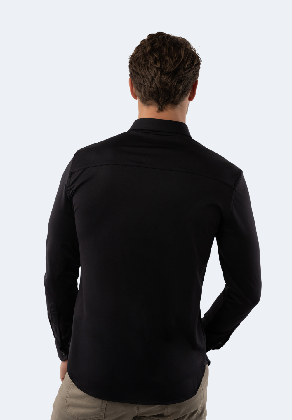 This Black Solid Shirt is a stylish and sustainable choice. It's made of American Heritage recycled fabric, making it eco-friendly and perfect for the fashion-forward individual. Get this stylish, ethical shirt today!