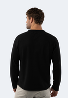 The Black Waffle Knit 3-Button Henley Shirt is a classic American Heritage style. Made of waffle knit cotton fabric, this 3-button Henley shirt is sure to keep you comfortable all day.