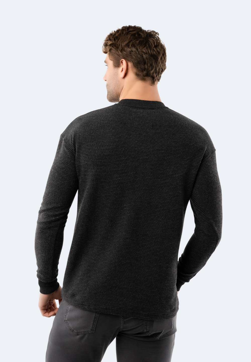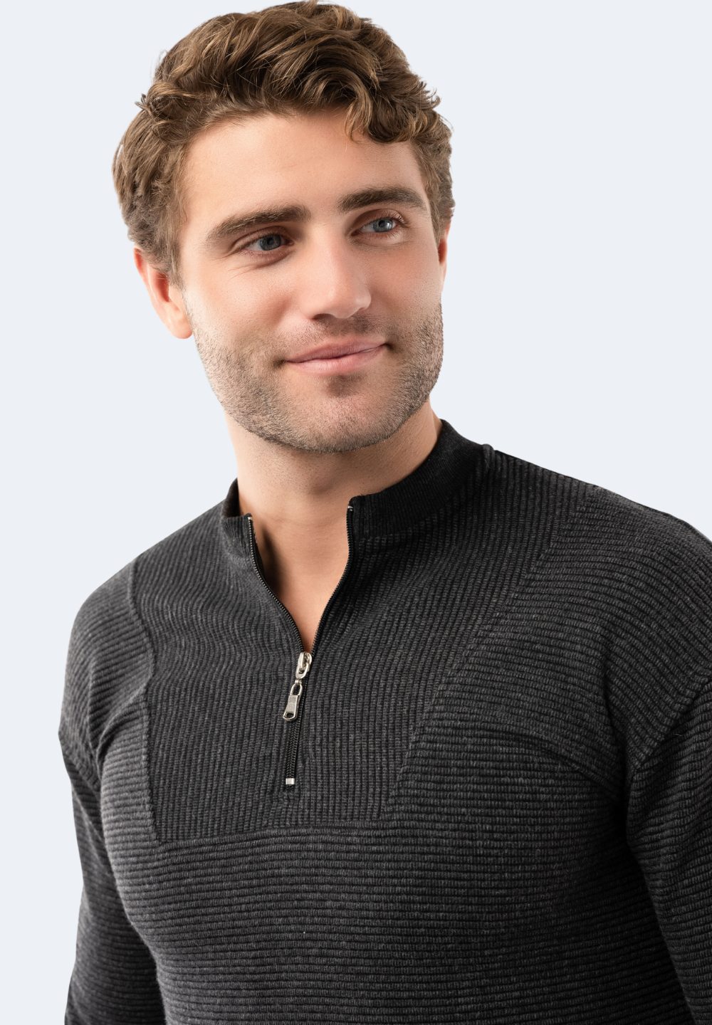 This Black Waffle Stripe Quarter Zip is made from American Heritage fabric and features a waistband collar and a stylish 3/4 zip. Its classic waffle stripe pattern is both timeless and on-trend. Make a fashion statement with this versatile and comfortable piece.