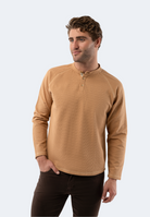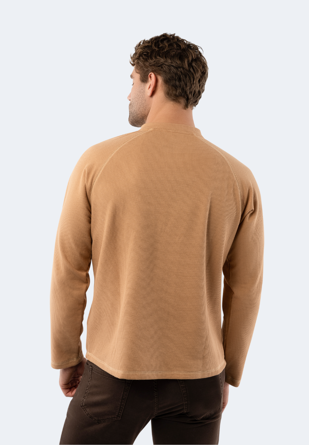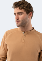 The British Tan Navy Waffle Knit 3-Button Henley Shirt is a classic American Heritage style. Made of waffle knit cotton fabric, this 3-button Henley shirt is sure to keep you comfortable all day.