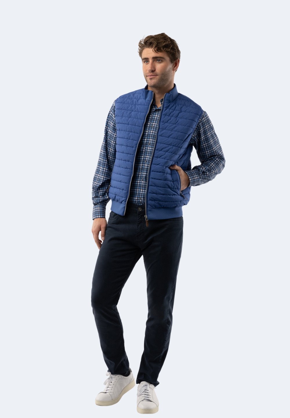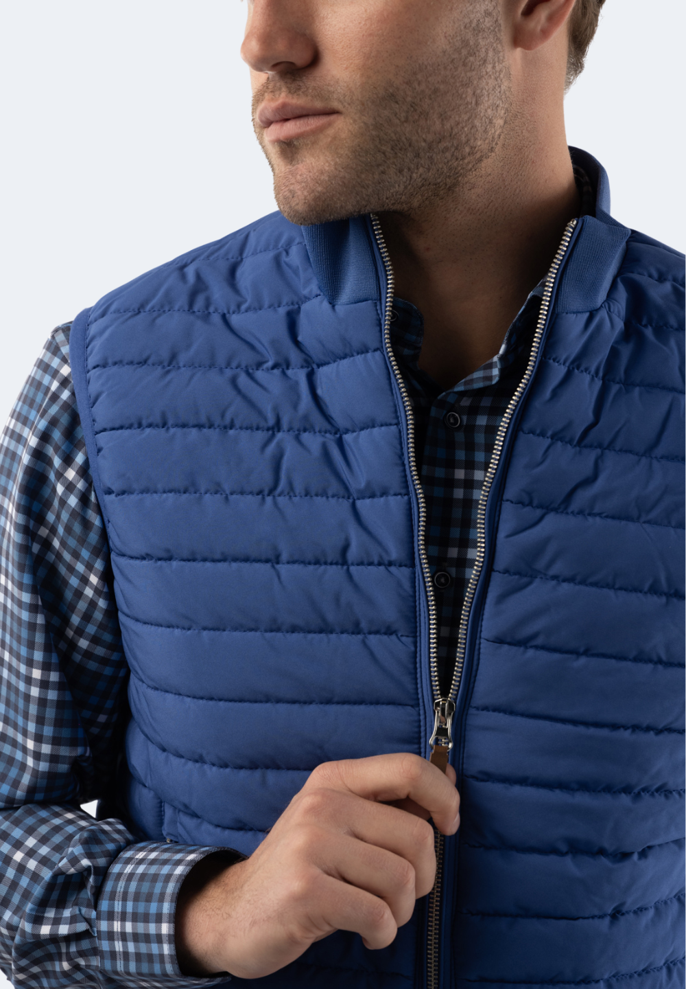 Inspired by the iconic American Heritage of the Blue Quilted Vest. This vest offers a full zip, 4-way stretch, 3-Layer construction, quilted knit, water repellent fabric and two zip pockets. Create a functional, stylish look with this versatile piece.