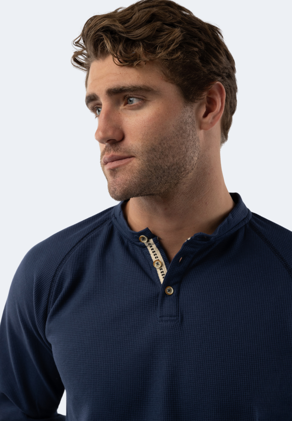 Cobalt Blue Waffle Knit 3-Button Henley