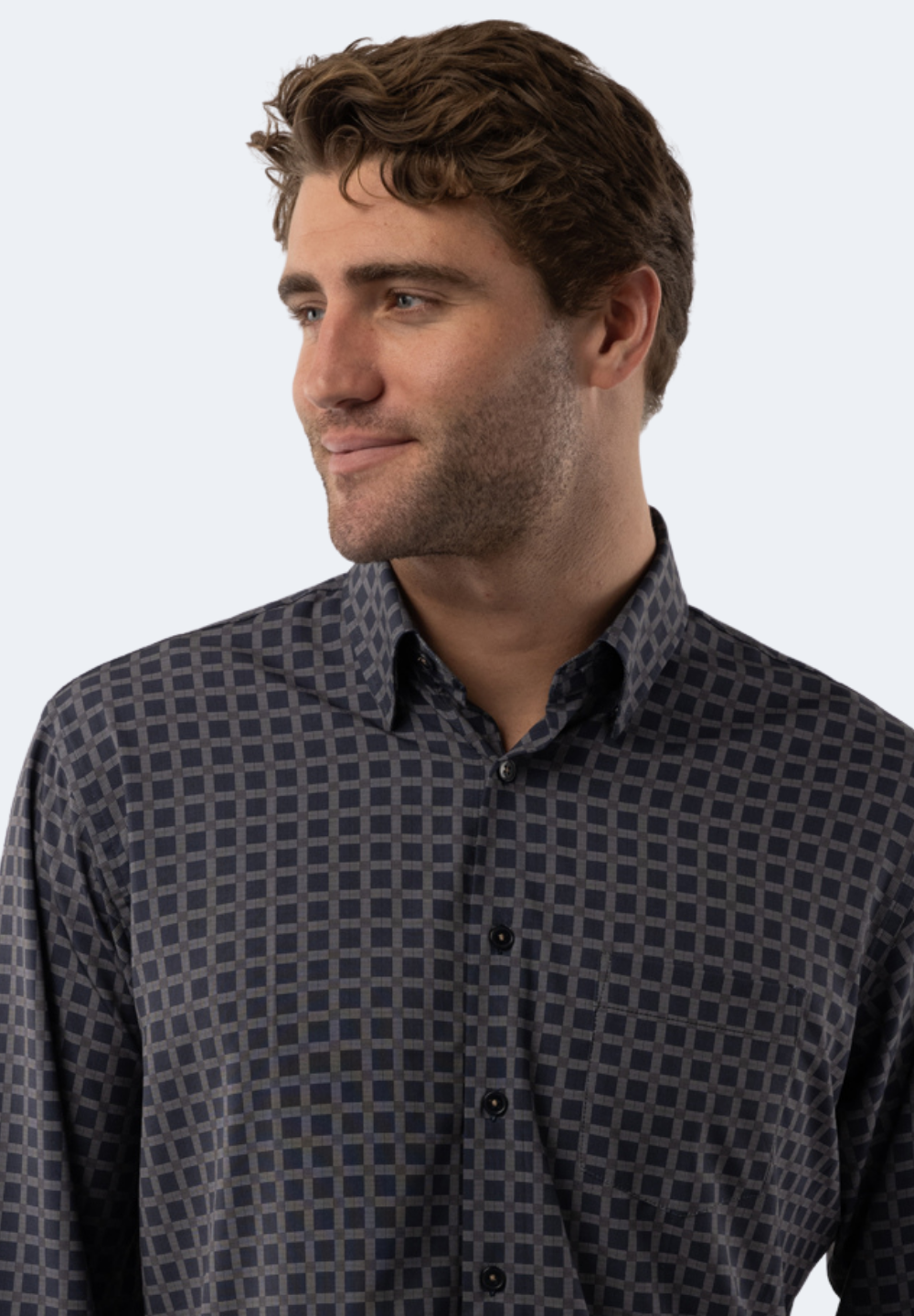 Experience the effortless comfort of the grey plaid shirt by American Heritage. Crafted from recycled fabric for an eco-friendly look, this shirt is designed to hold its shape and color over time. Enjoy the unique style and quality of American Heritage with FW23.