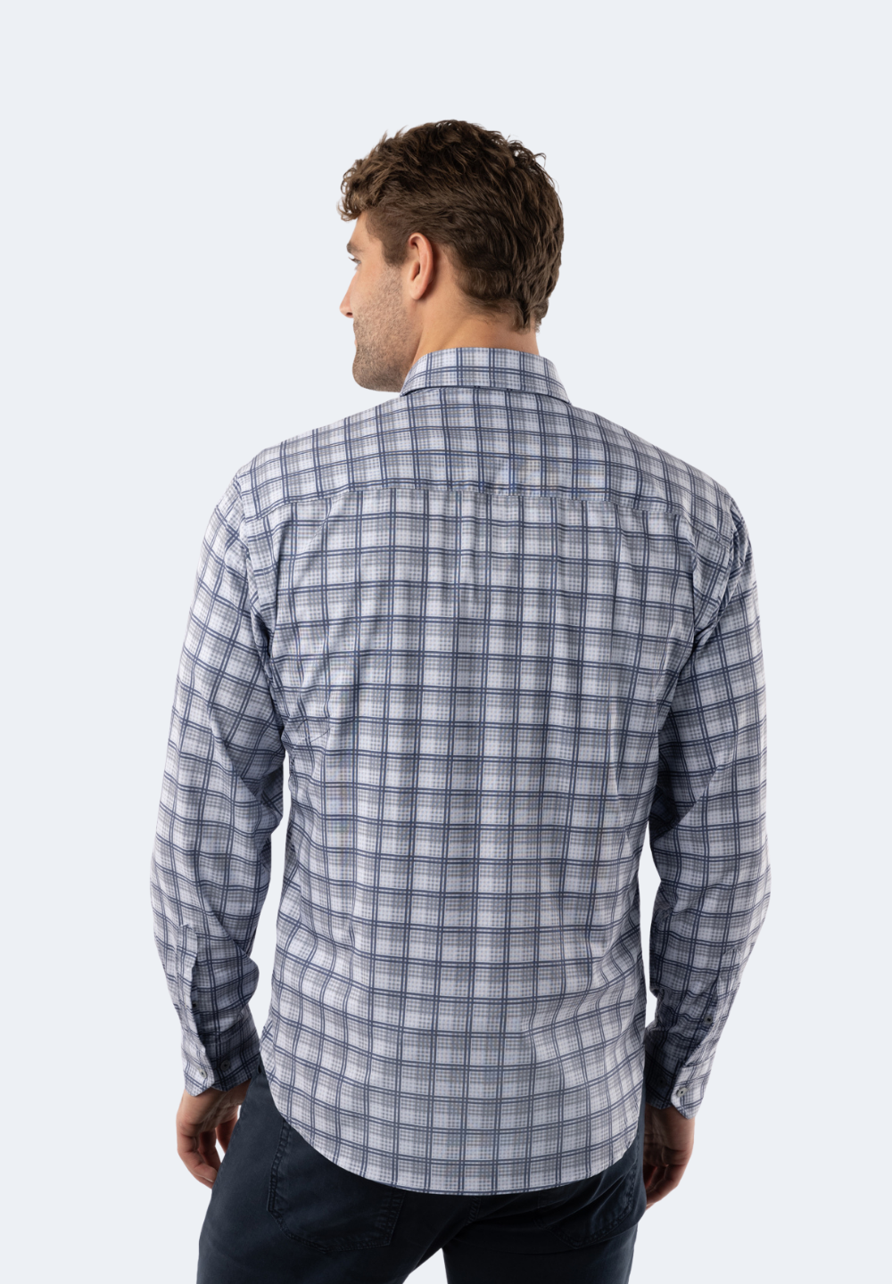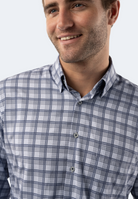 The Light Grey Plaid Shirt is crafted from American Heritage, recycled fabric, providing a comfortable fit and timeless style. This classic design is perfect for everyday wear or special occasions.