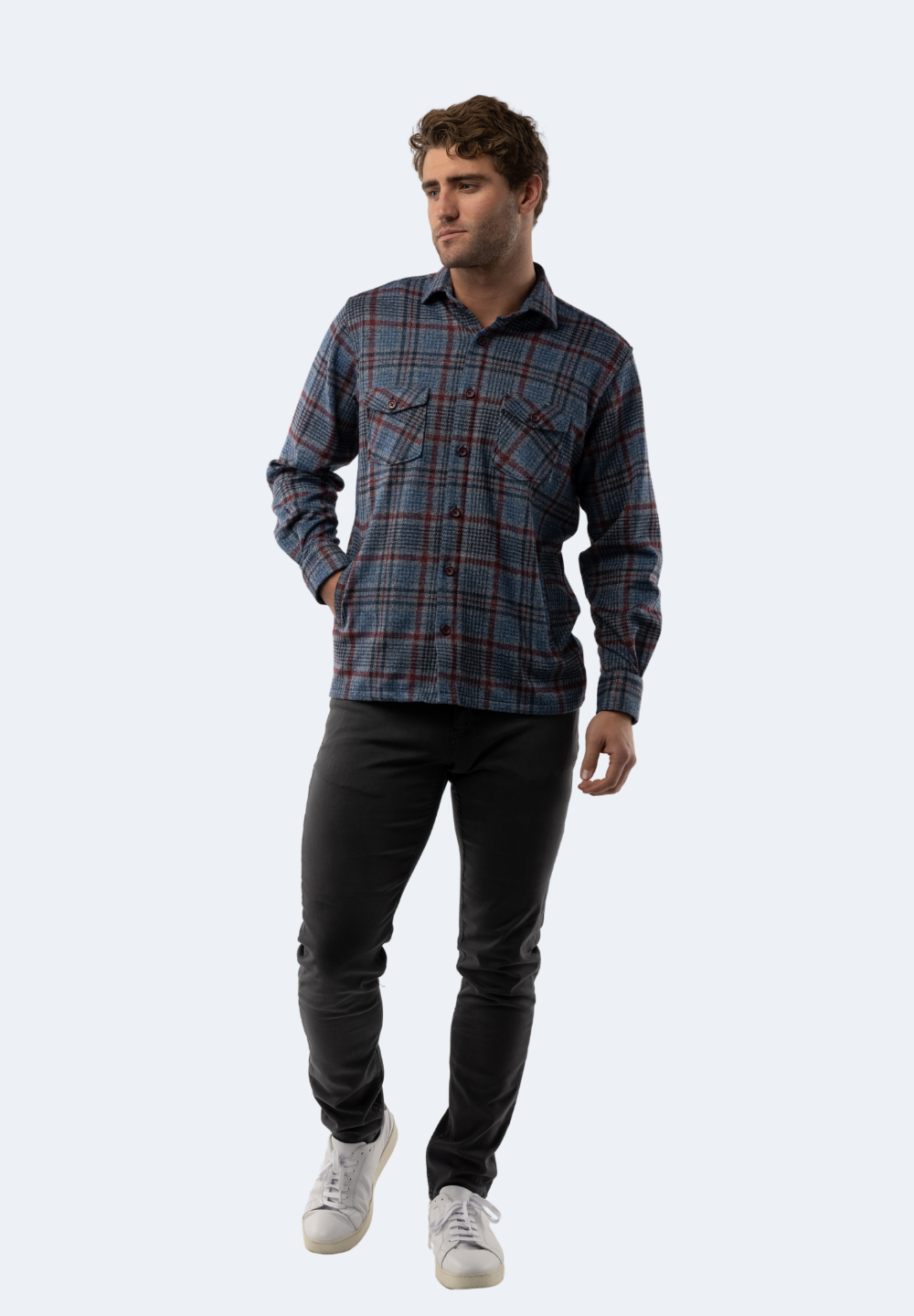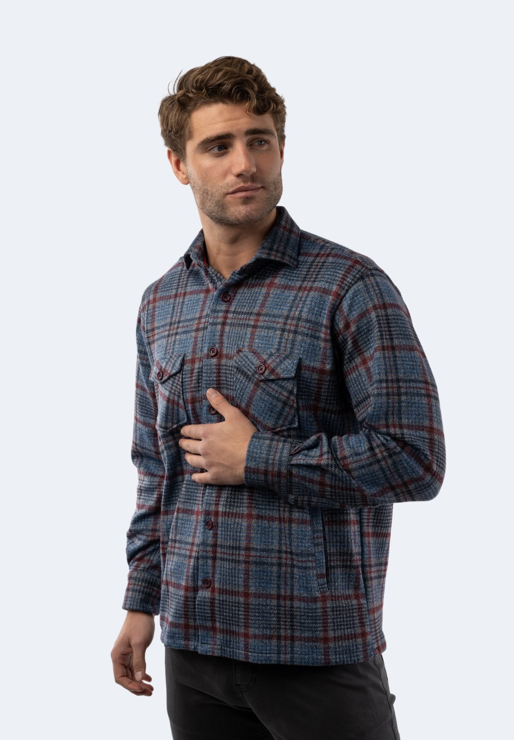 The Multicolor Plaid Knit Shirt is the perfect combination of American heritage and modern style. This versatile piece can be worn as a shacket, button down shirt or a layered piece with chest pockets for convenience. Be bold and stylish in this comfortable and durable shirt.