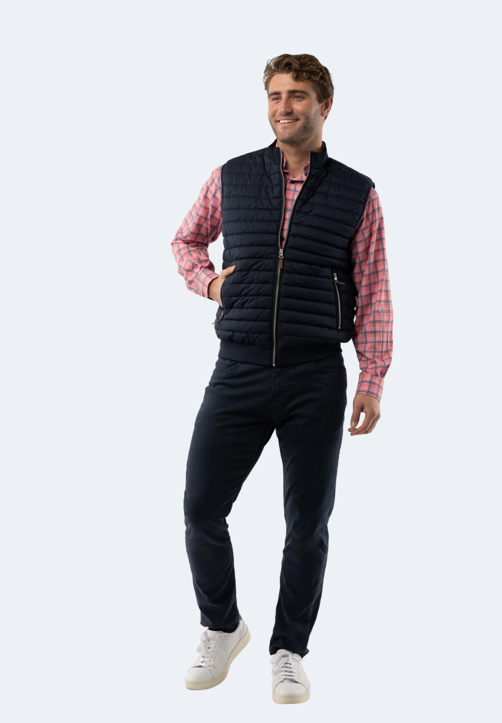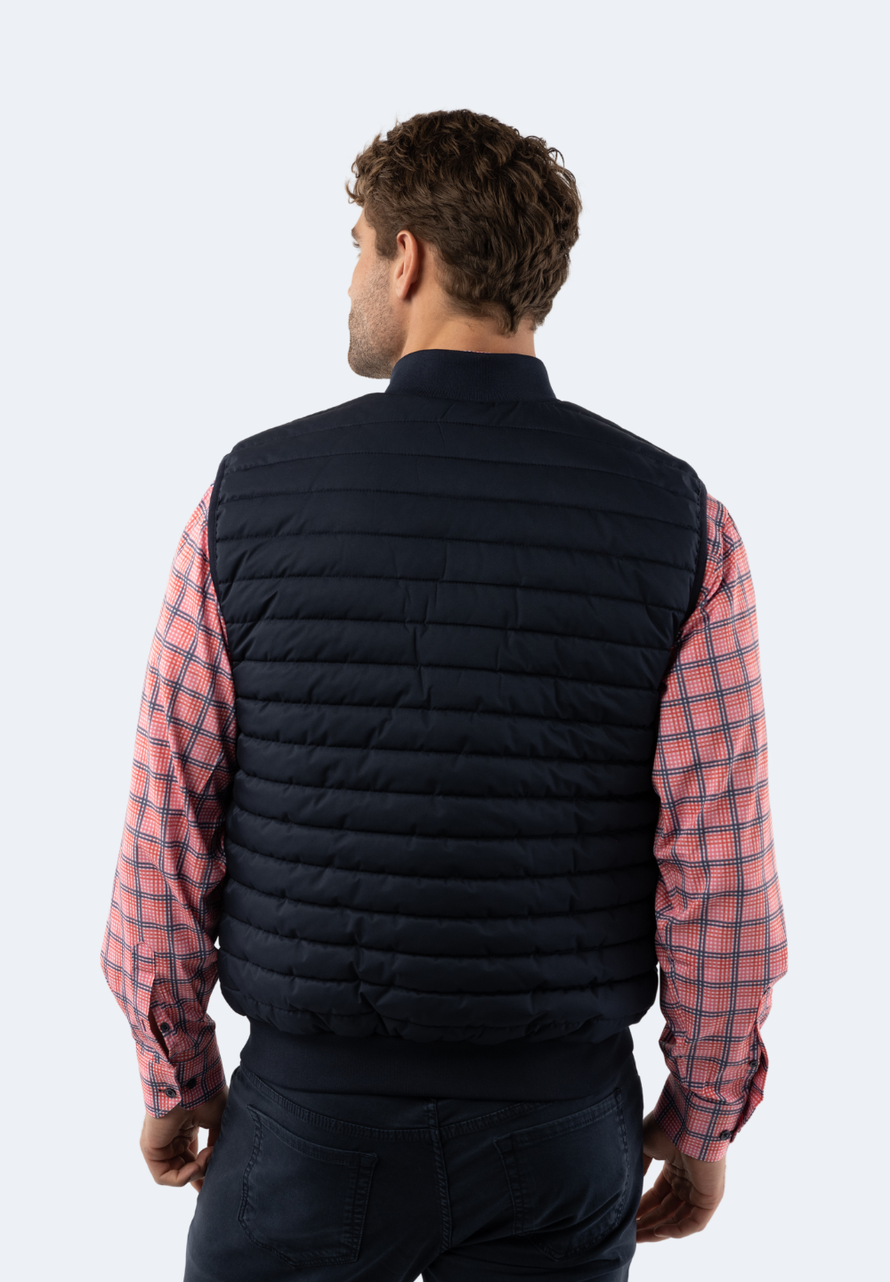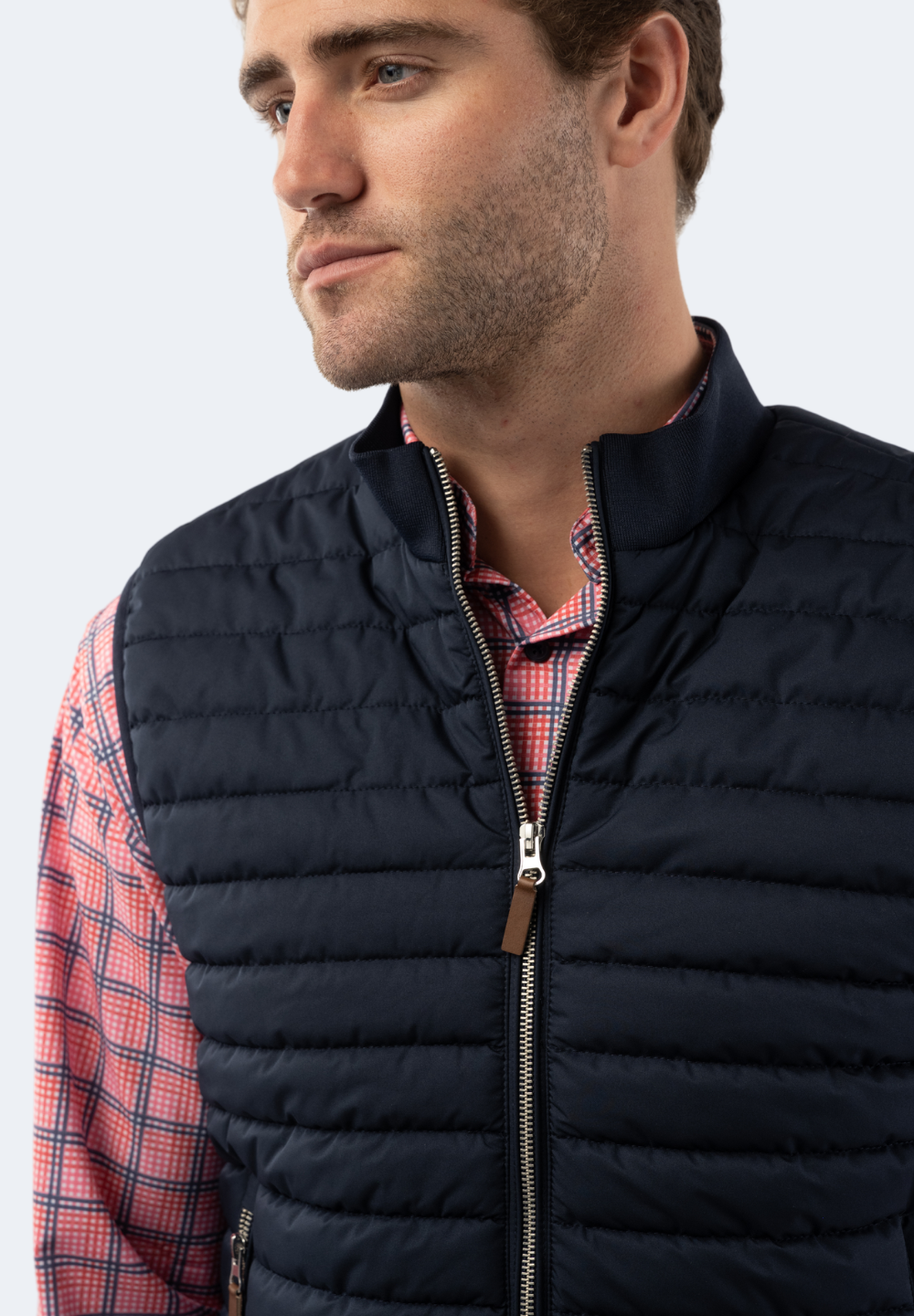 Inspired by the iconic American Heritage of the Navy Quilted Vest. This vest offers a full zip, 4-way stretch, 3-Layer construction, quilted knit, water repellent fabric and two zip pockets. Create a functional, stylish look with this versatile piece.