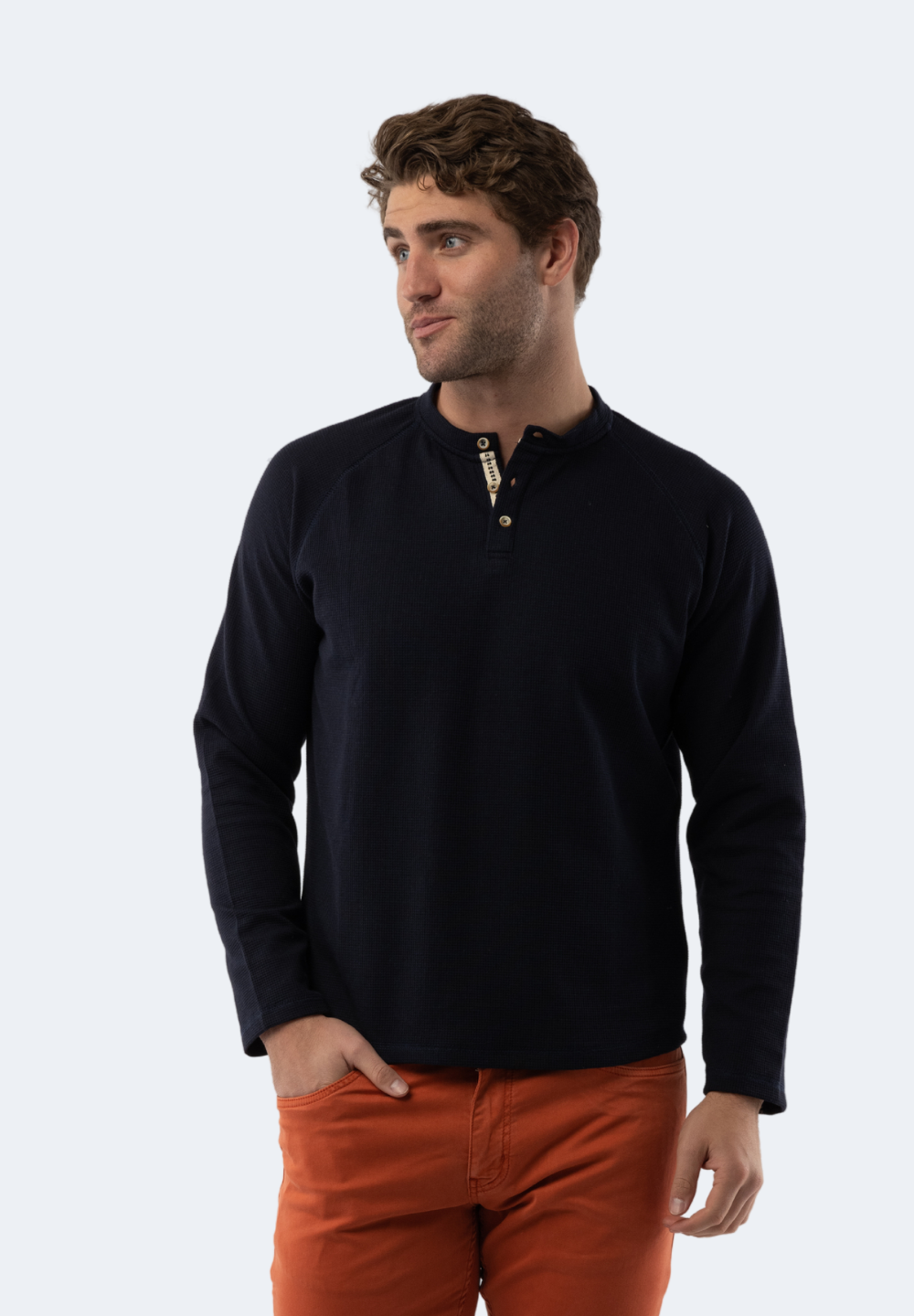 Navy Waffle Knit 3-Button Henley