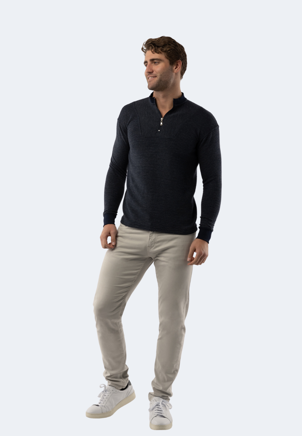 Navy Waffle Stripe Quarter Zip