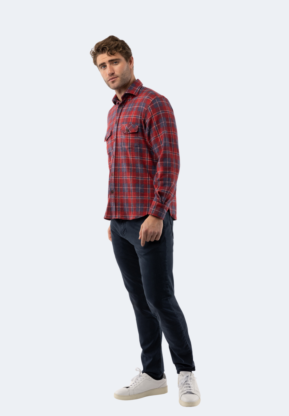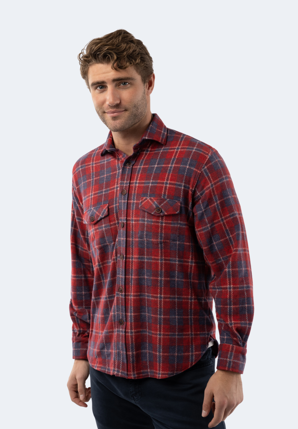 The Red Plaid Knit Shirt is sure to become a wardrobe staple. Crafted with American Heritage fabric and two chest pockets, this versatile button-down can easily be worn as a shacket, layered piece, or classic shirt. Stay on trend and comfortable in style.