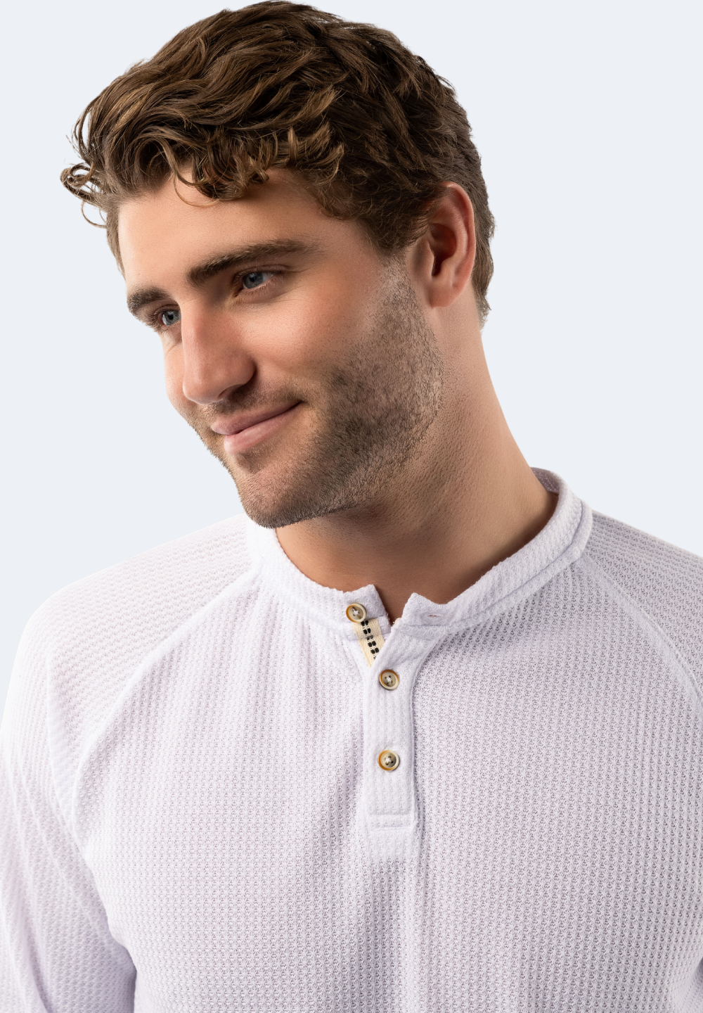 White Waffle Knit 3-Button Henley