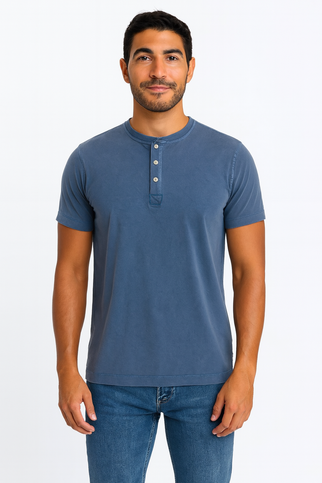 Introducing the Navy T-Shirt, crafted from a lightweight cotton blend with short sleeves and a stylish 3-button Henley design. This breathable shirt will keep you cool and comfortable no matter where your day takes you.