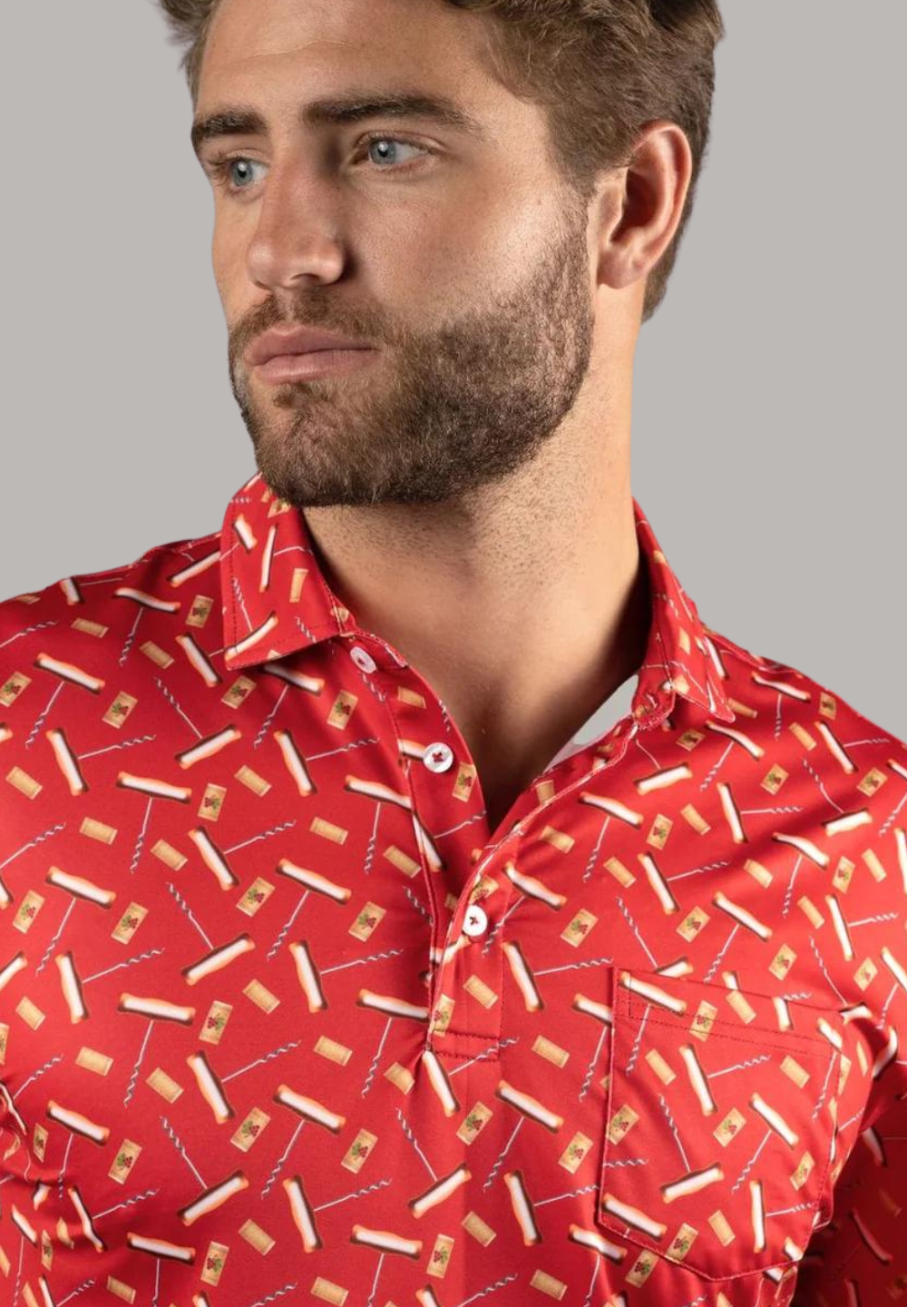 Short sleeve shirt in red with corks, corkscrews and one pocket.