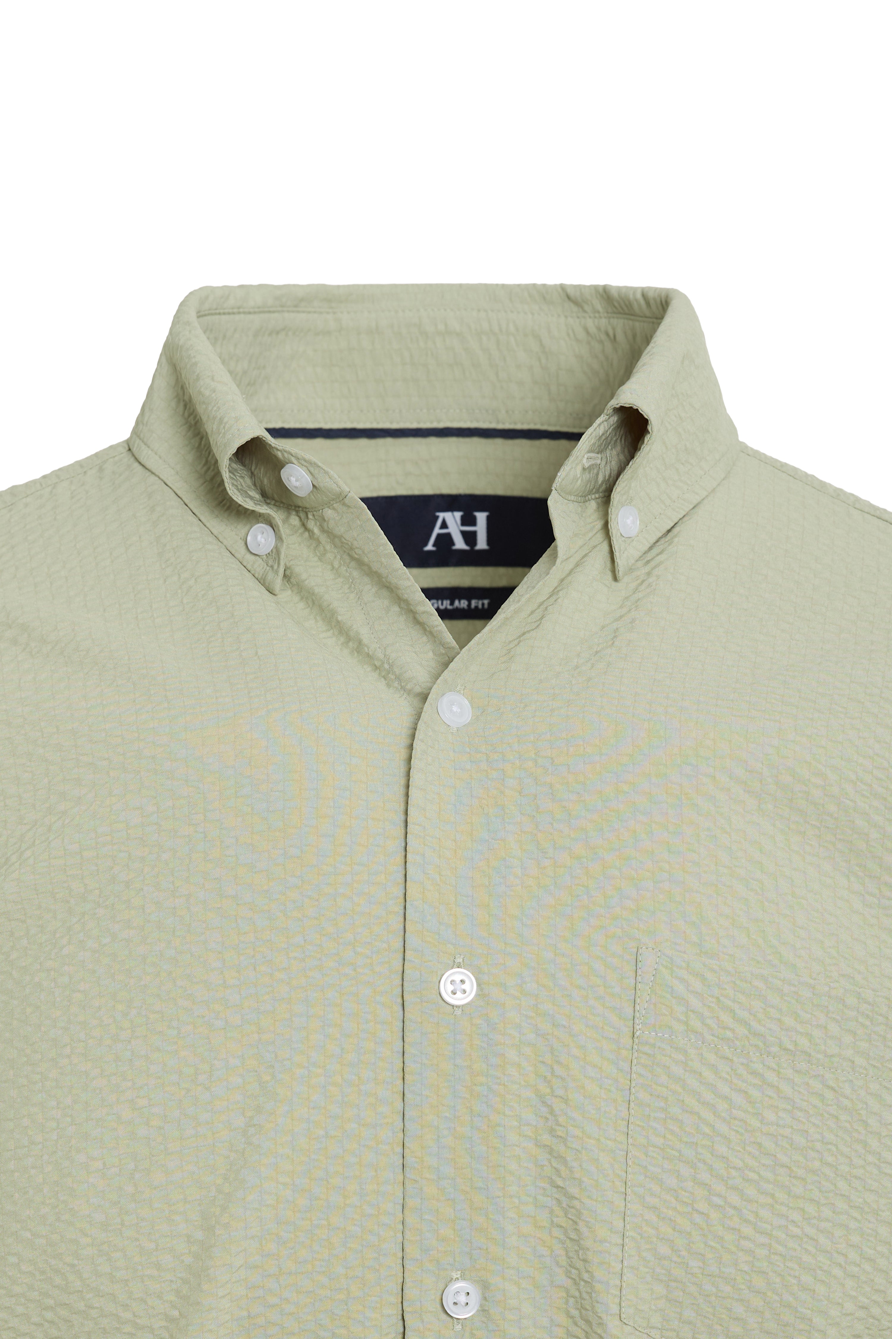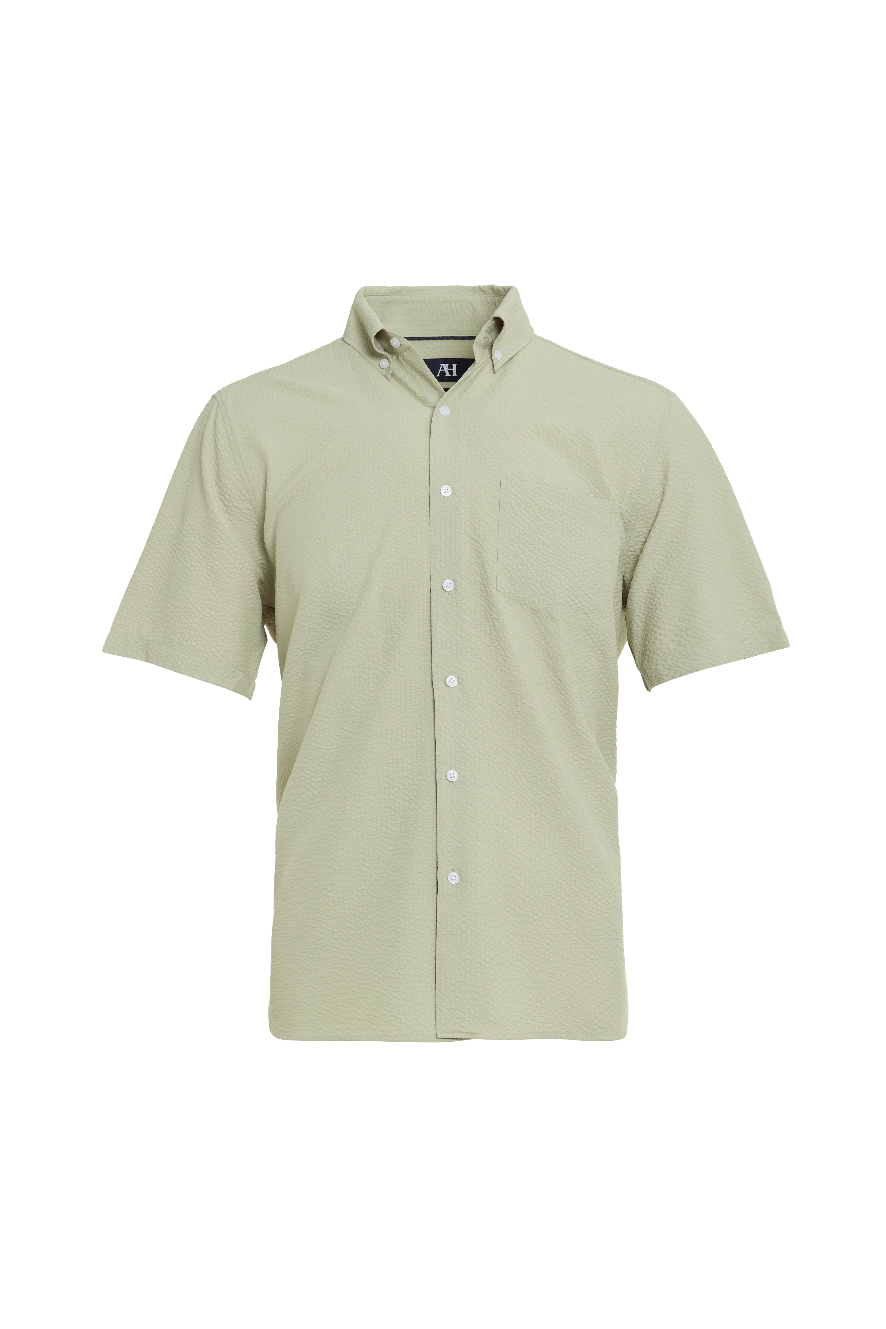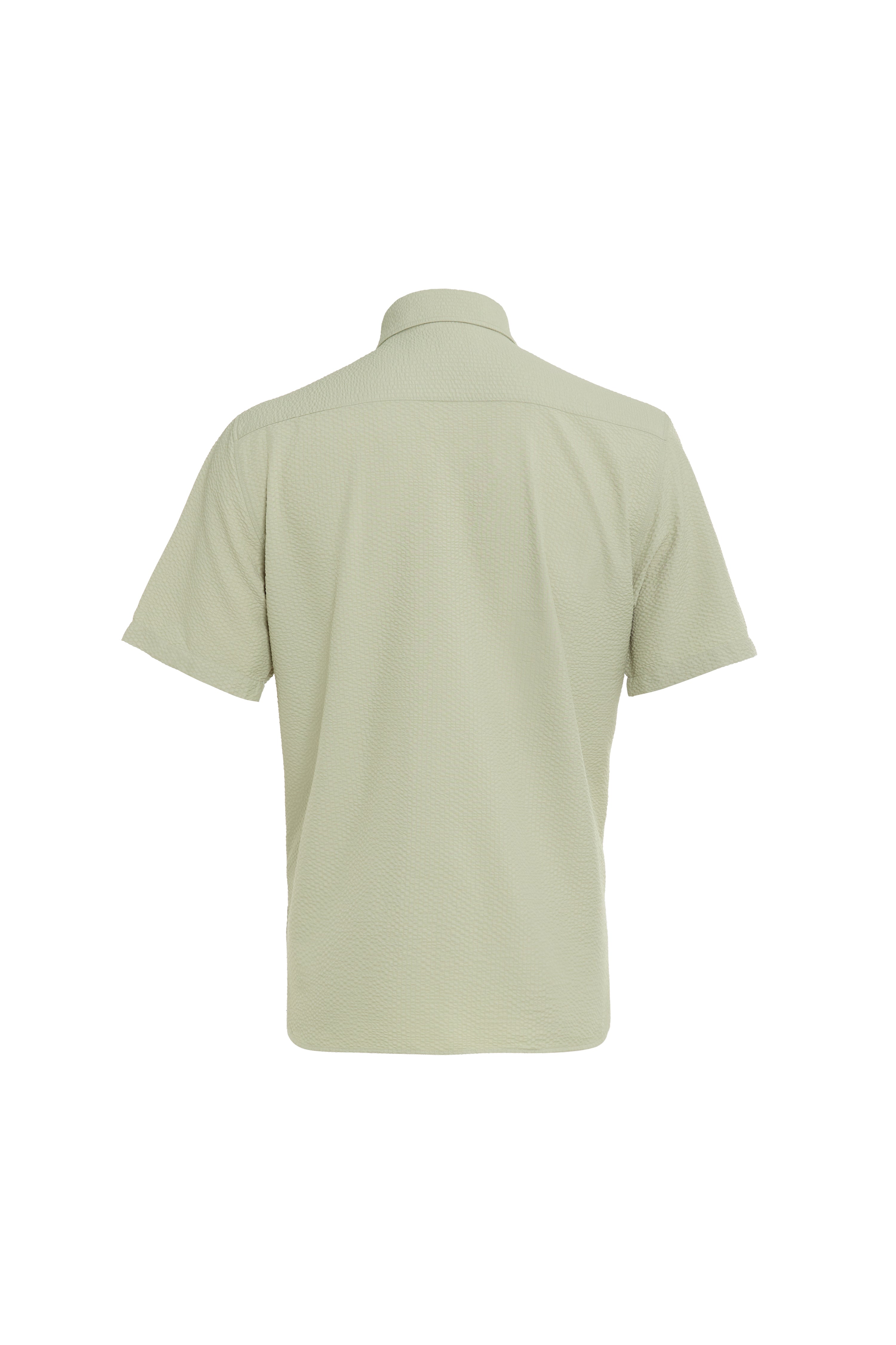 Popcorn seer sucker short sleeve with piping innner collar and side slit with bi stretch technology, soft touch, easy care.