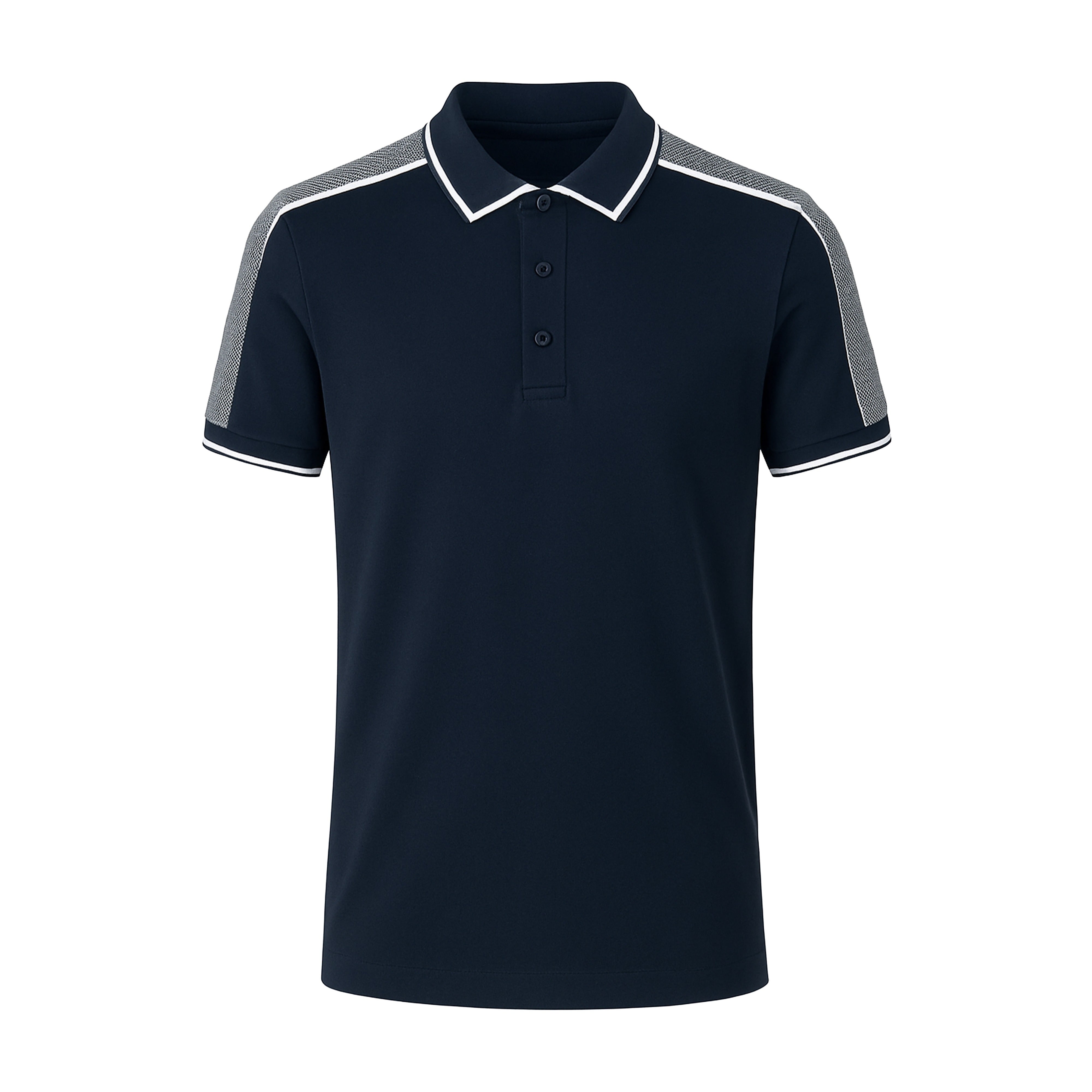 Looking for something different? Take a look at our three button polo with pique stitching on the collar. This solid blocking accentuates and broadens the look of your shoulders and can be paired with a variety of shorts and pants due to the color scheme. Whether yachting or on the golf course, this piece will grow on you.