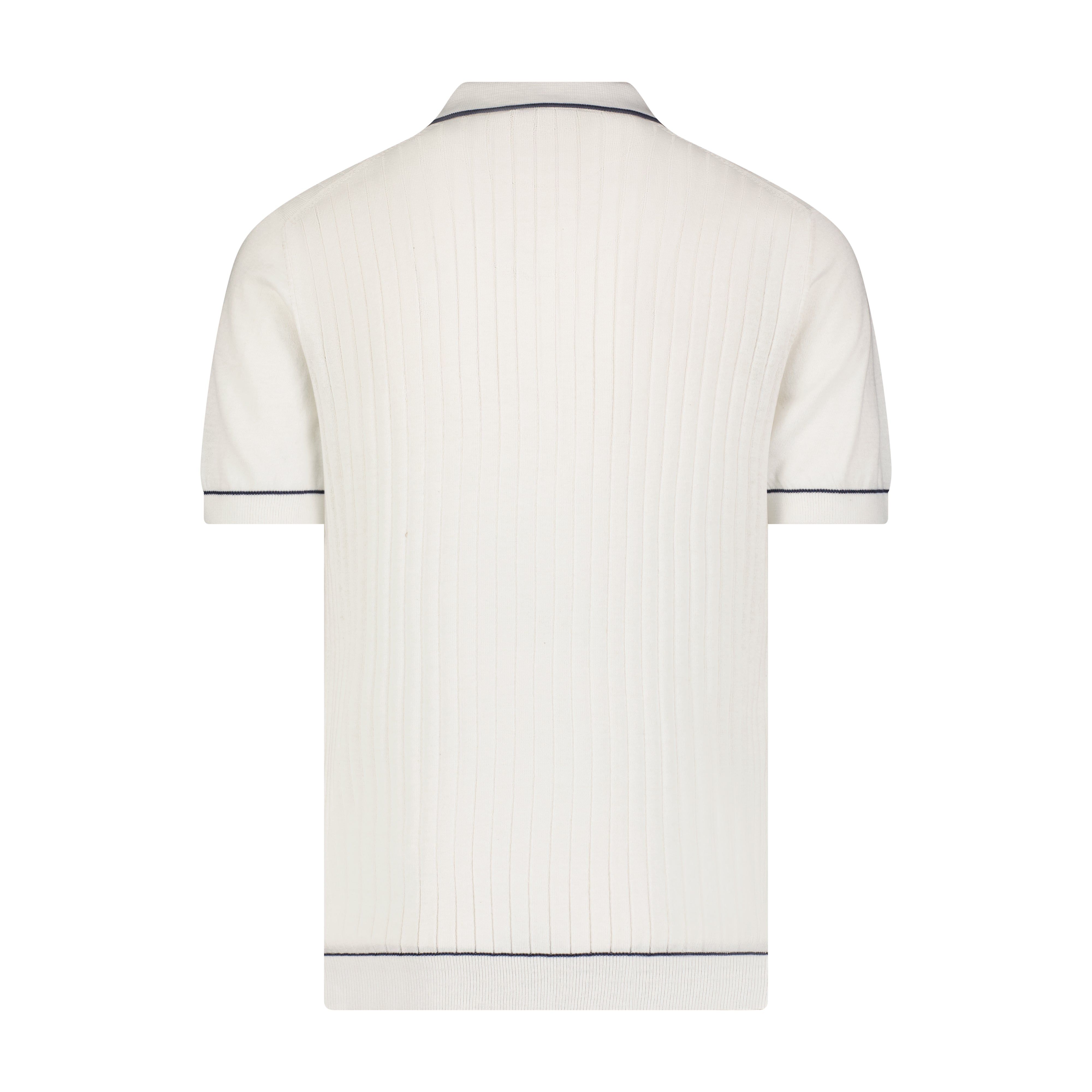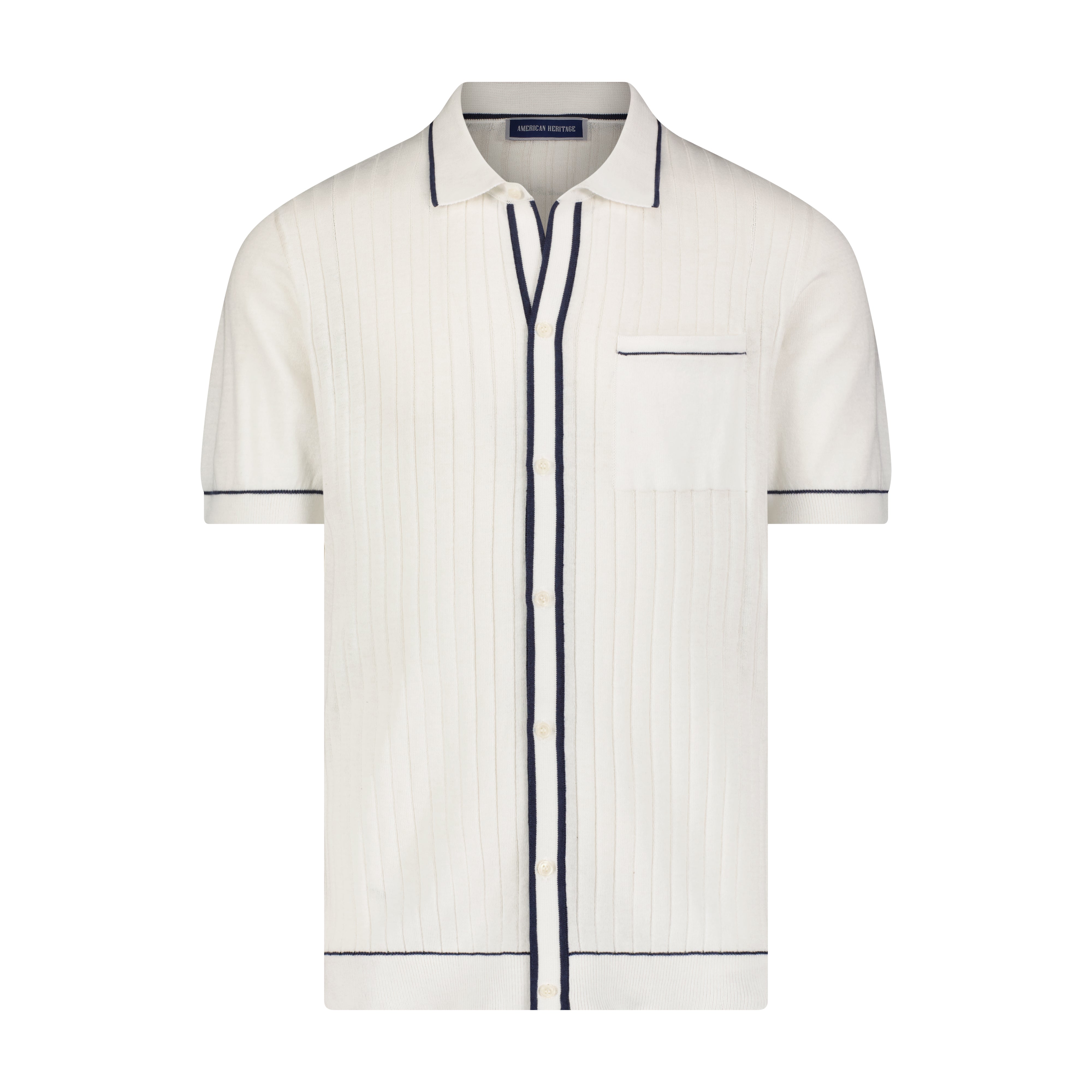 Prefer a button down polo? This full button shirt in White with a Navy trim, pocket and collar detailing, is a must-have for those looking for that classic Italian look. All that is missing is the Bocci ball set to complete the look. Take advantage of the double zipper accessory for breathability and comfort when sitting for long periods of time. Pair it with a Navy or Khaki short for all day comfort.