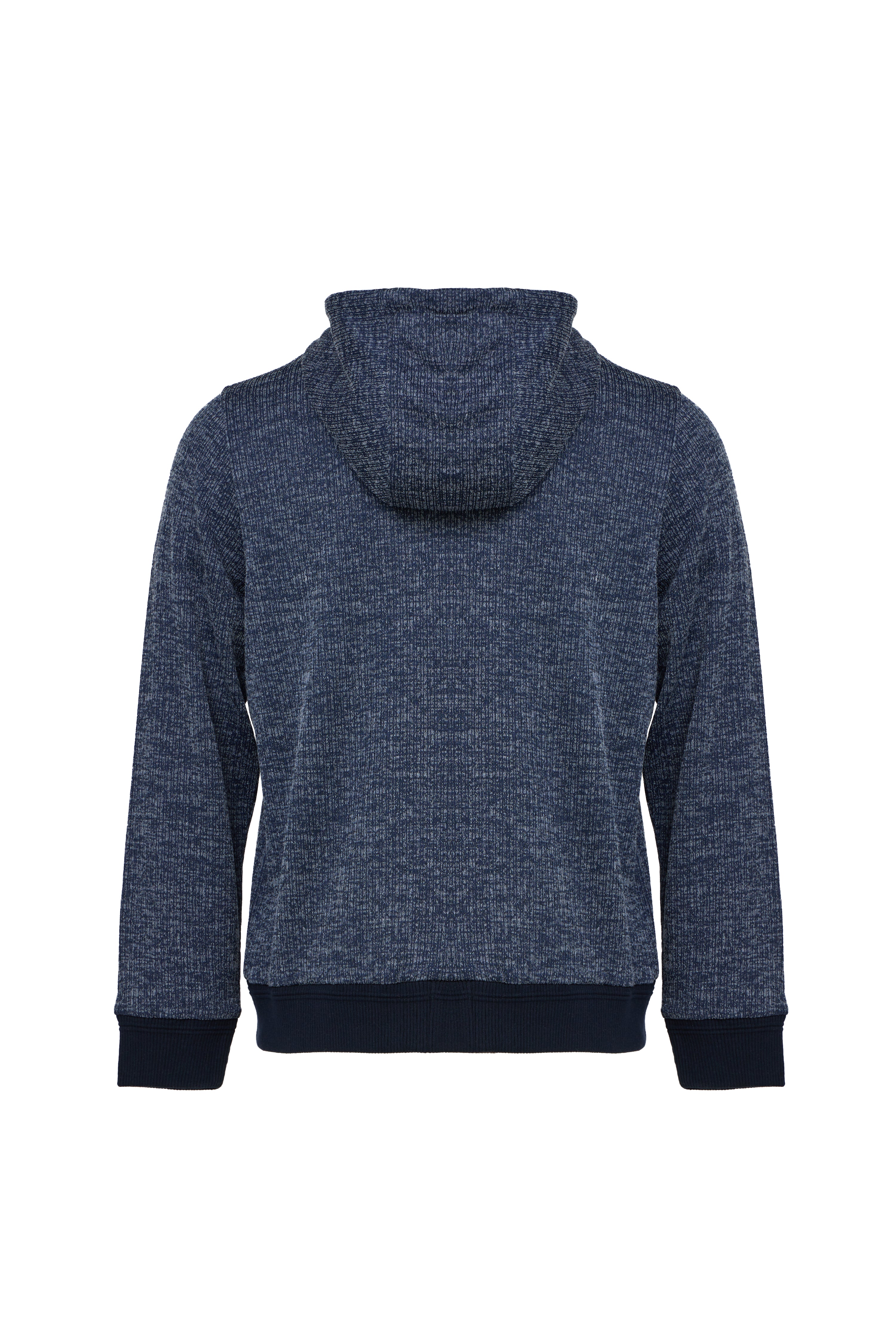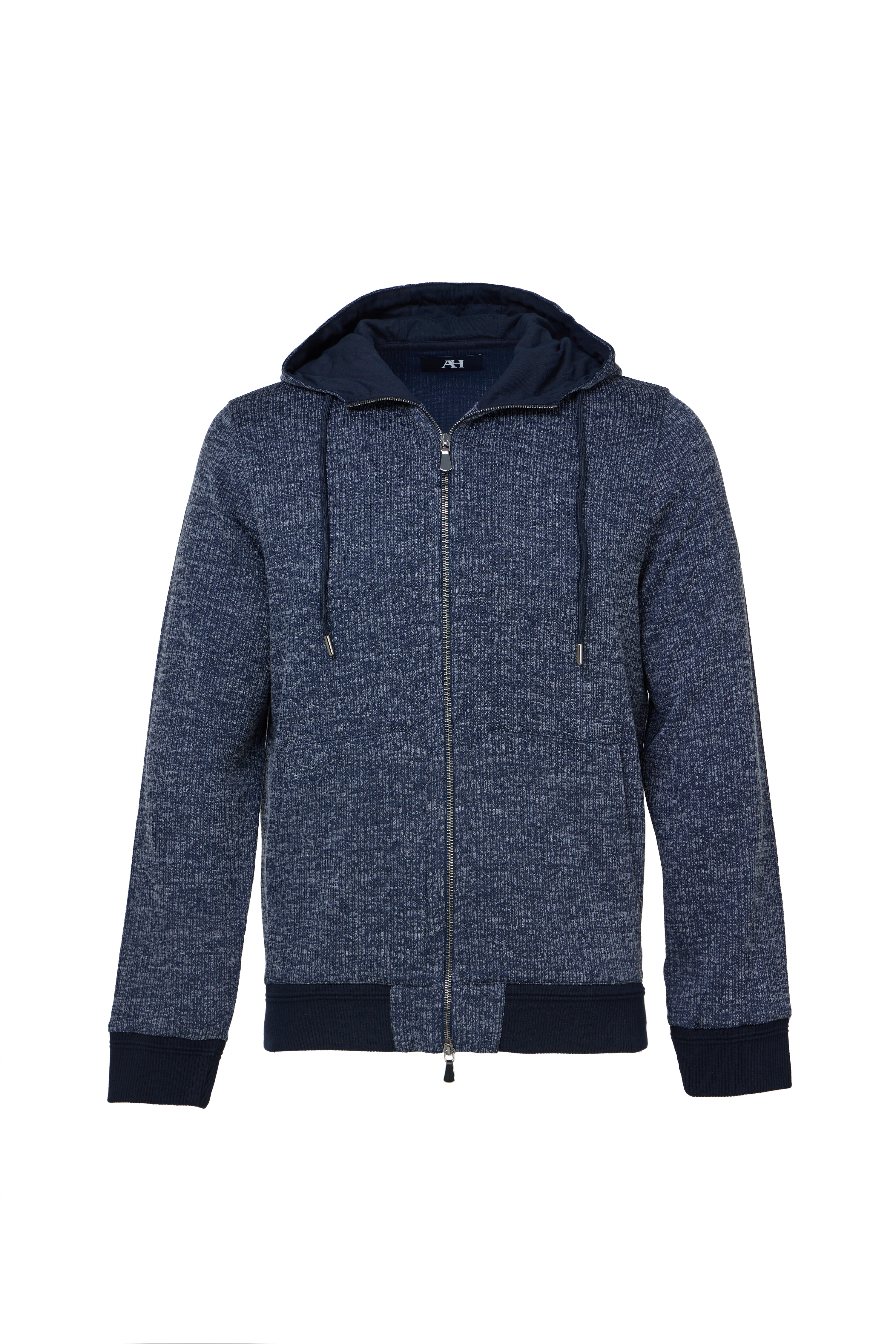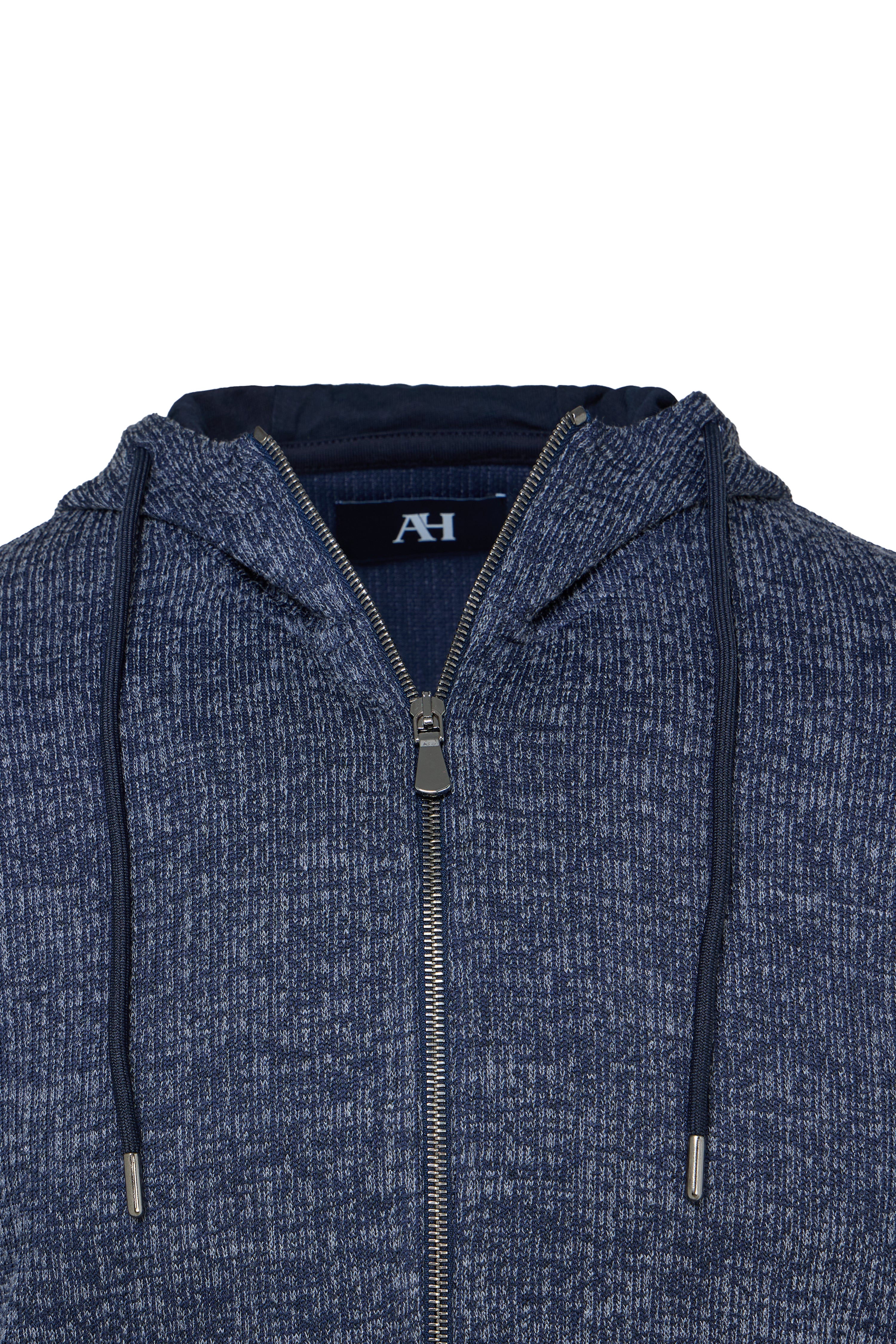 Inspired by classic Americana ease, this Navy Double-Zip Hoodie blends laid-back style with modern performance. Designed in a double-faced jacquard stripe with a sleek double-zip front, it's built for versatility and comfort. Crafted from a sustainable stretch blend of nylon, recycled rayon, recycled polyester, and spandex, it offers warmth, flexibility, and everyday durability. With side pockets for utility and a cozy hood for cooler days, this hoodie is the perfect balance of heritage-inspired design and forward-thinking function for fall.